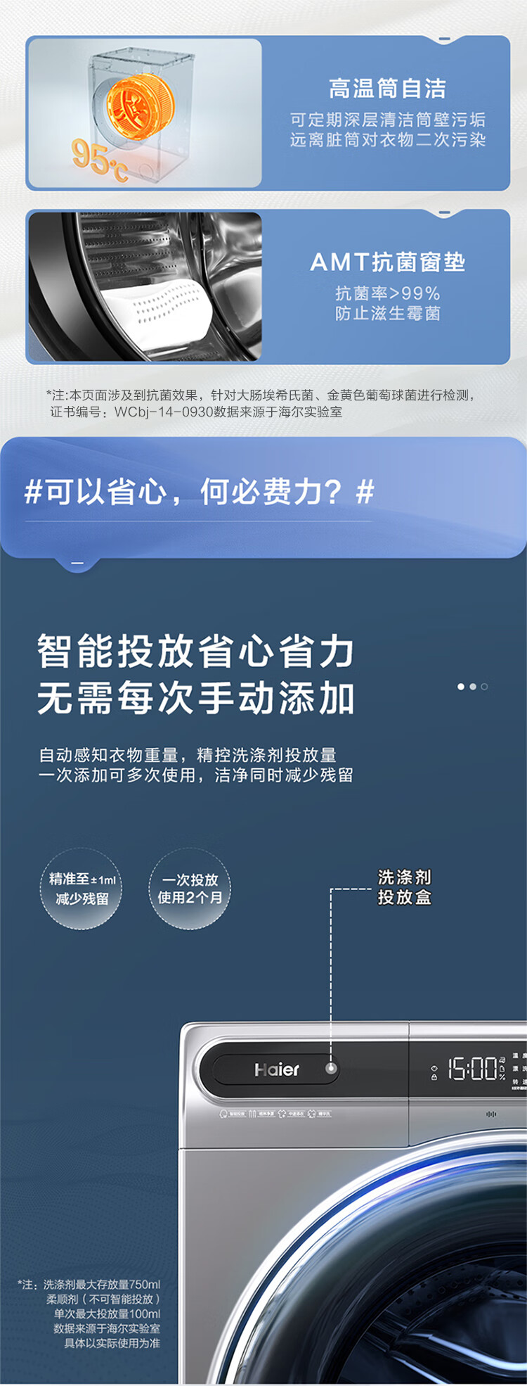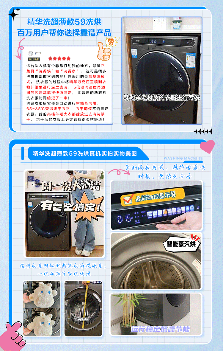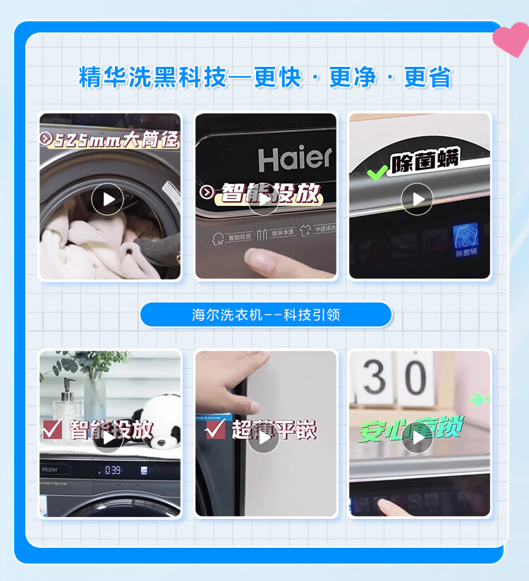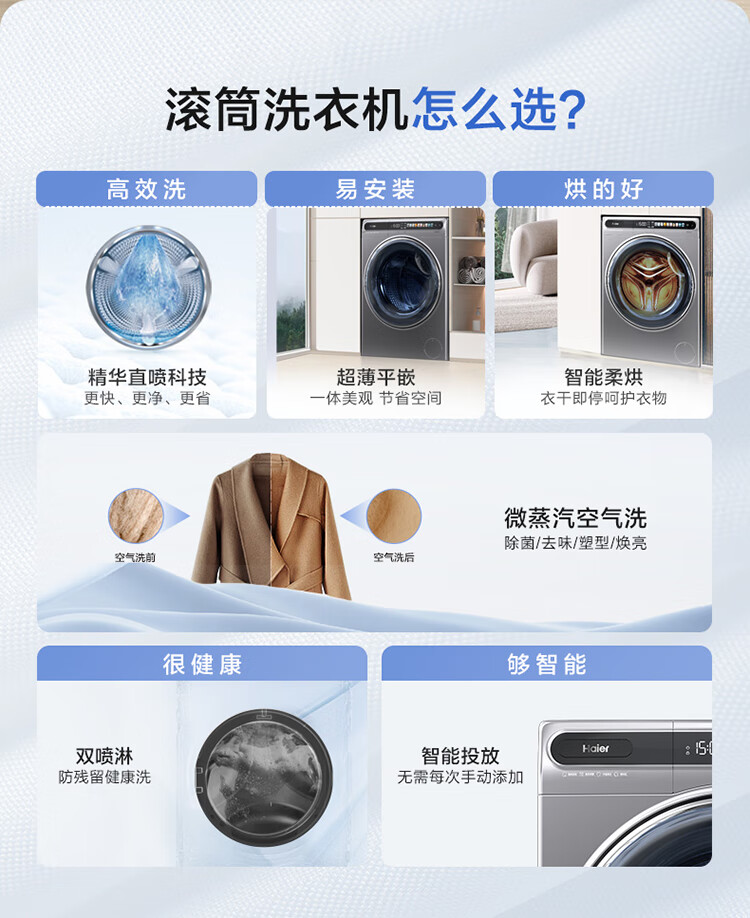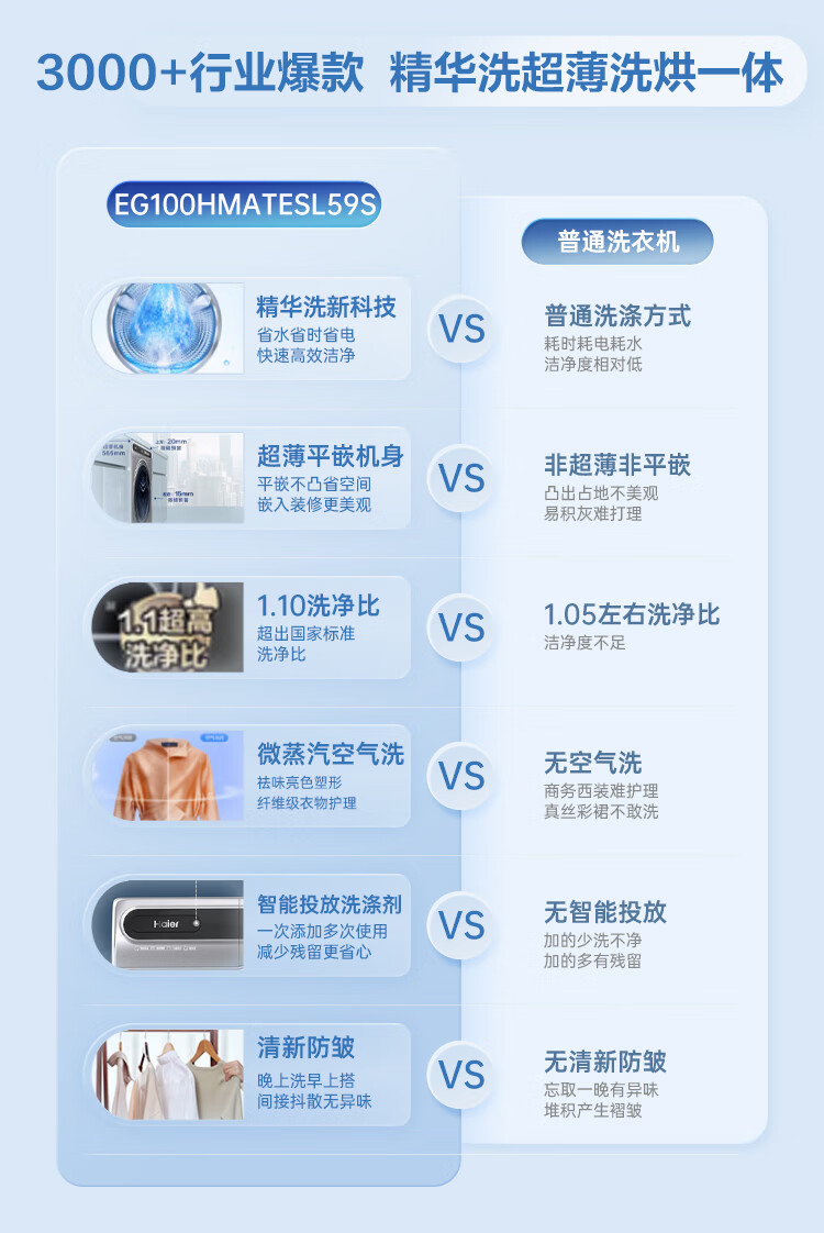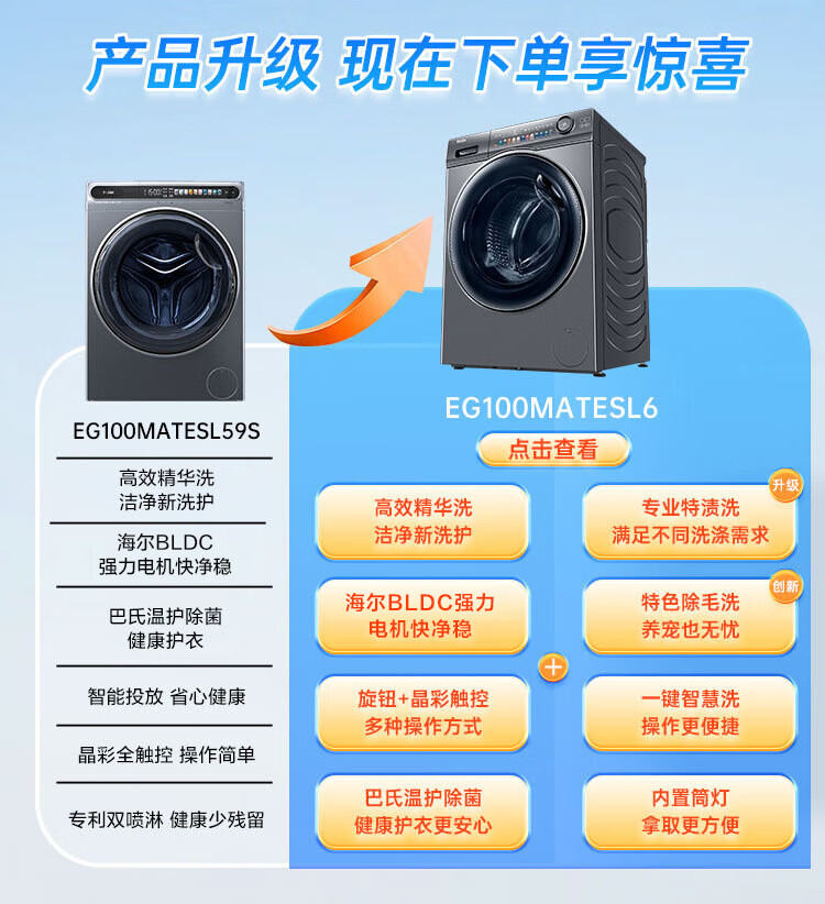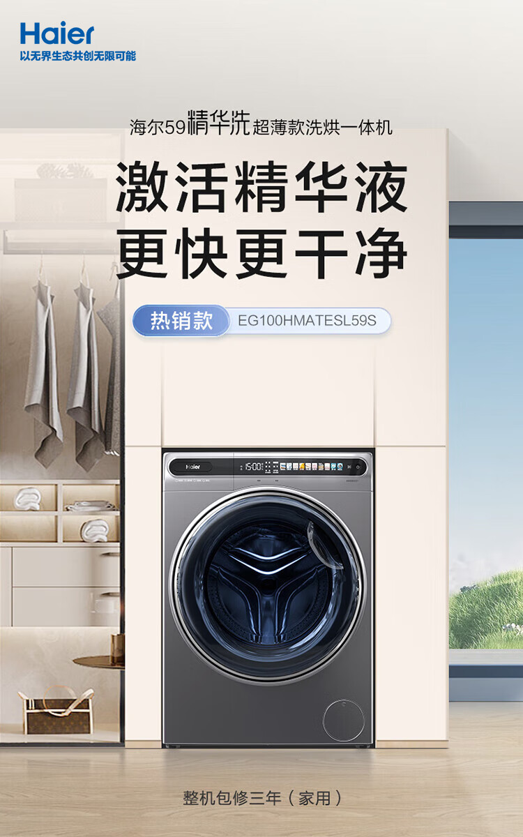 金榜推荐-海尔滚筒洗衣机全自动 10公斤大容量 超薄家用 【精华洗EG100HMATESL59S洗烘一体机】【精华洗EG100MATESL59S单洗】