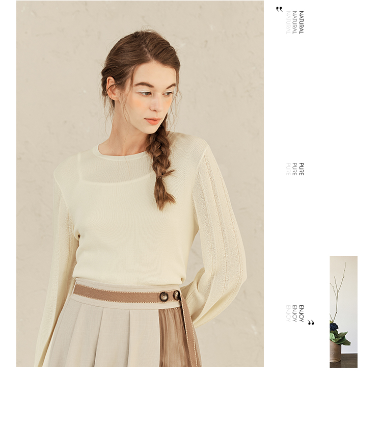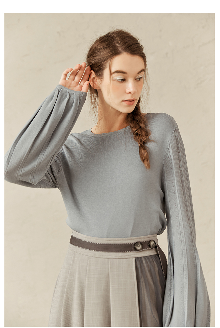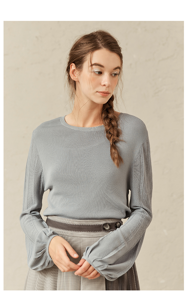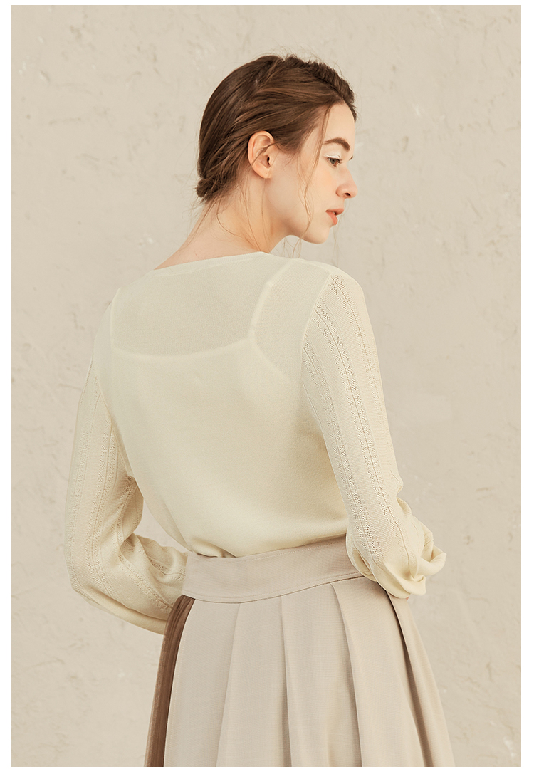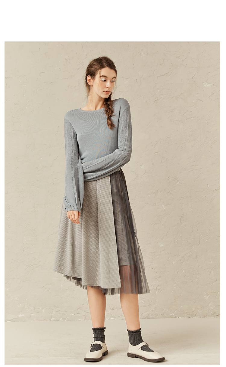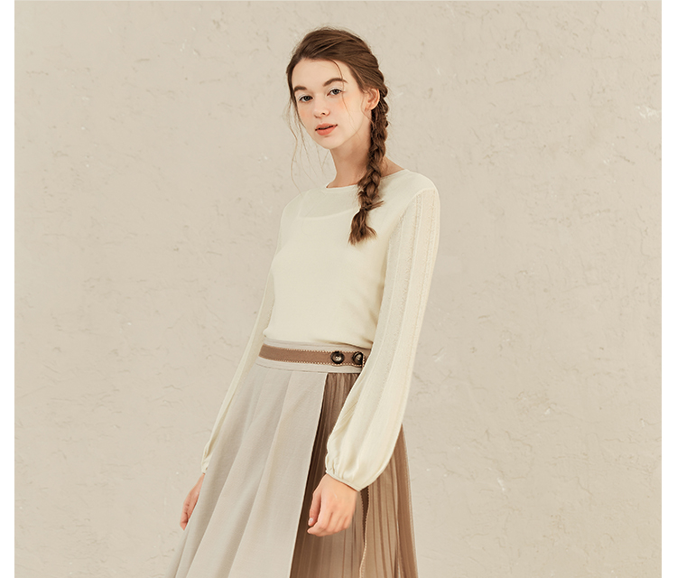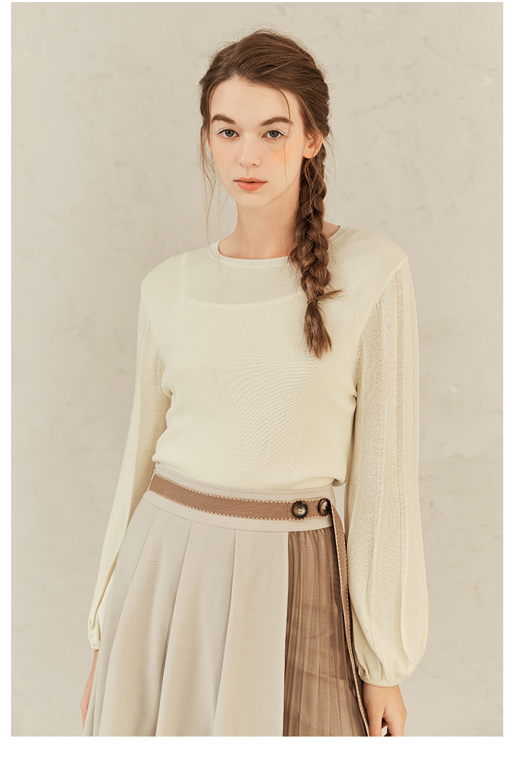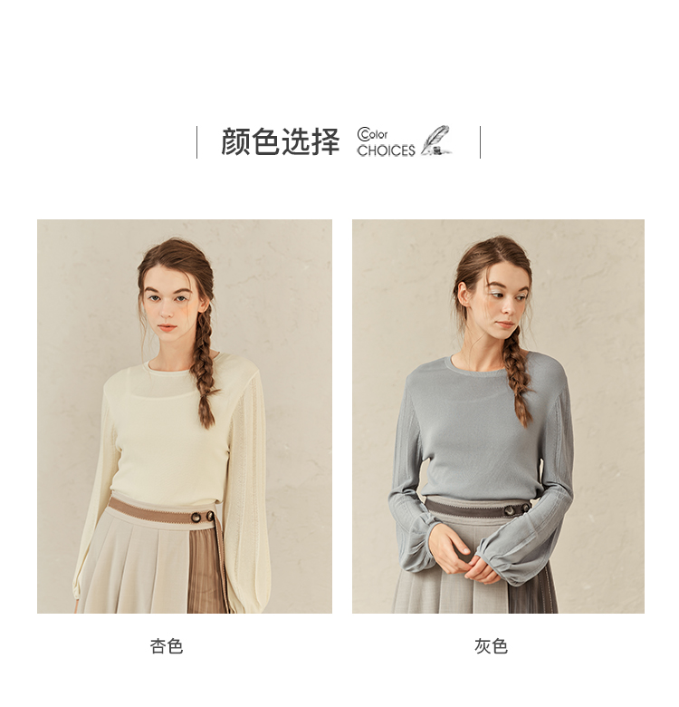 Famecoco范可儿修身打底衫女士早春甜美温柔针织衫F221DB001