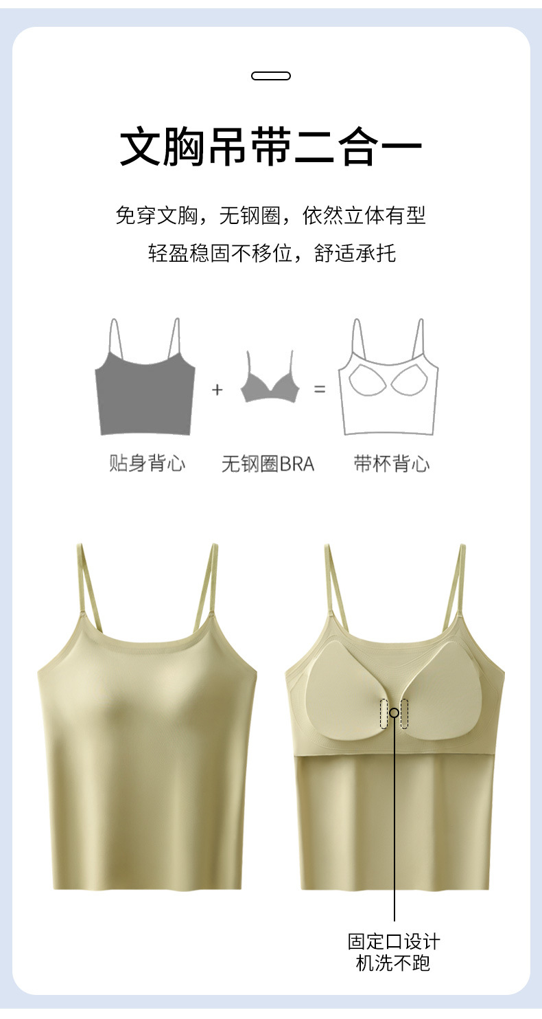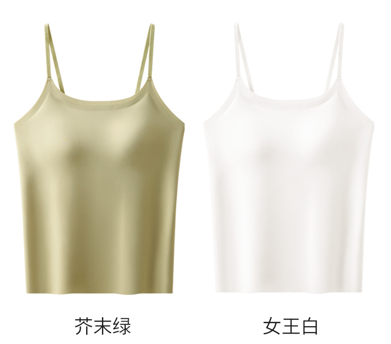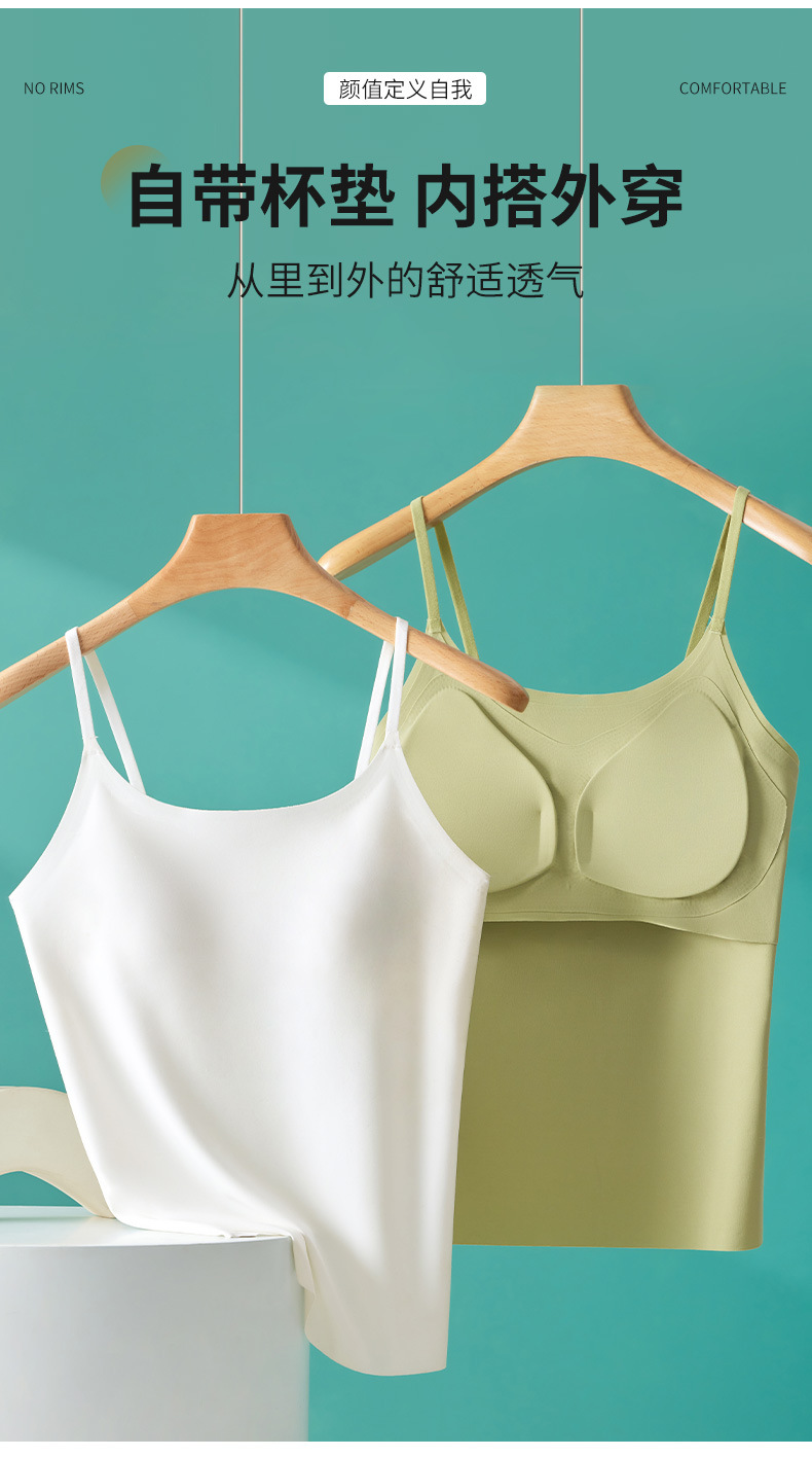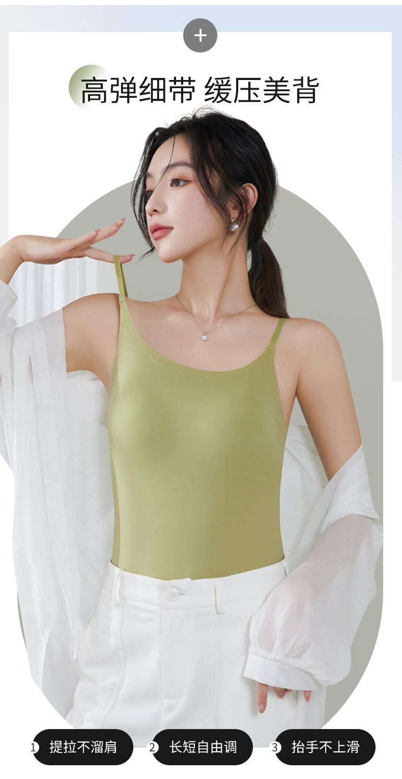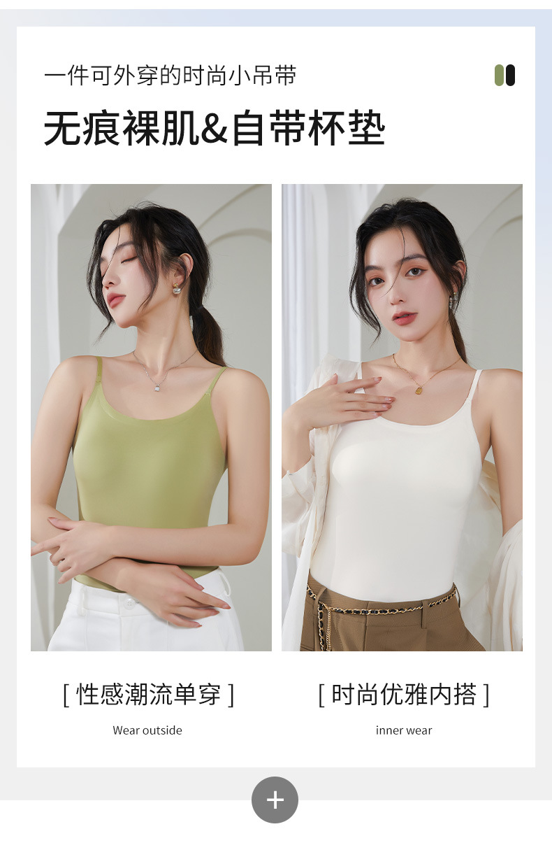 【自带杯垫!裸感舒适】夏季冰丝美背吊带背心女士一体式无痕外穿内搭打底背心可调节抹胸。xa