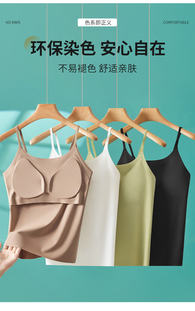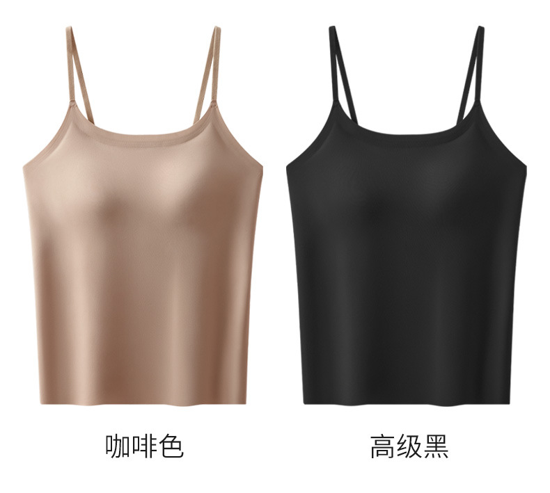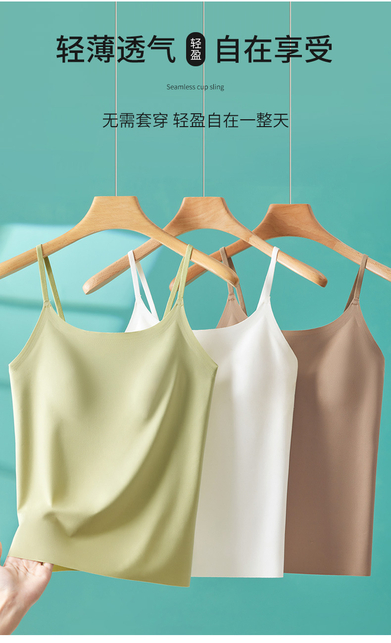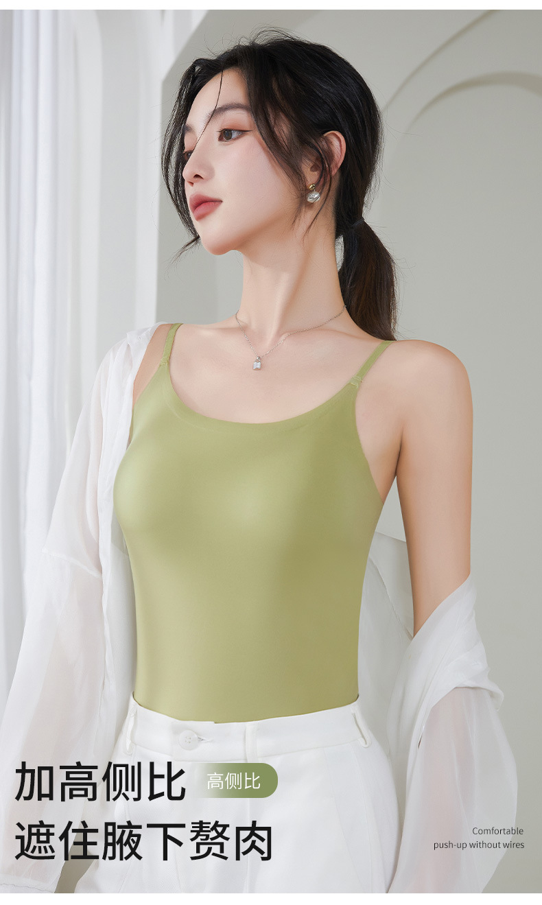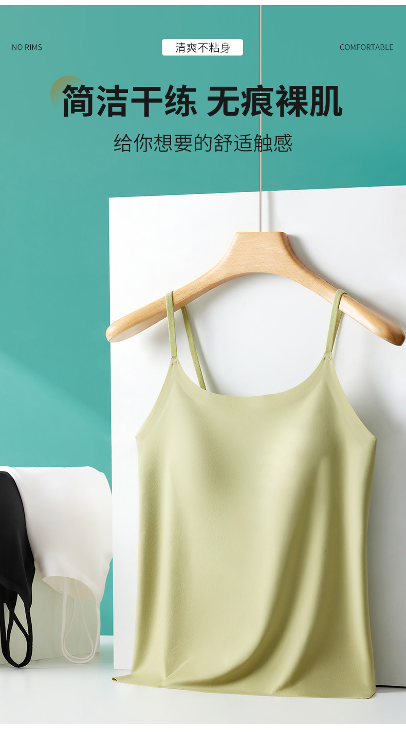 【自带杯垫!裸感舒适】夏季冰丝美背吊带背心女士一体式无痕外穿内搭打底背心可调节抹胸。xa