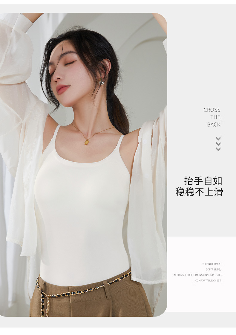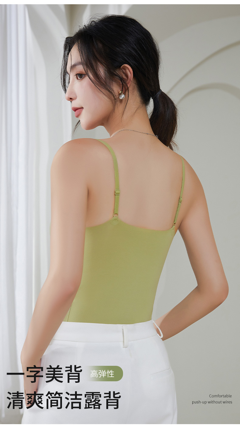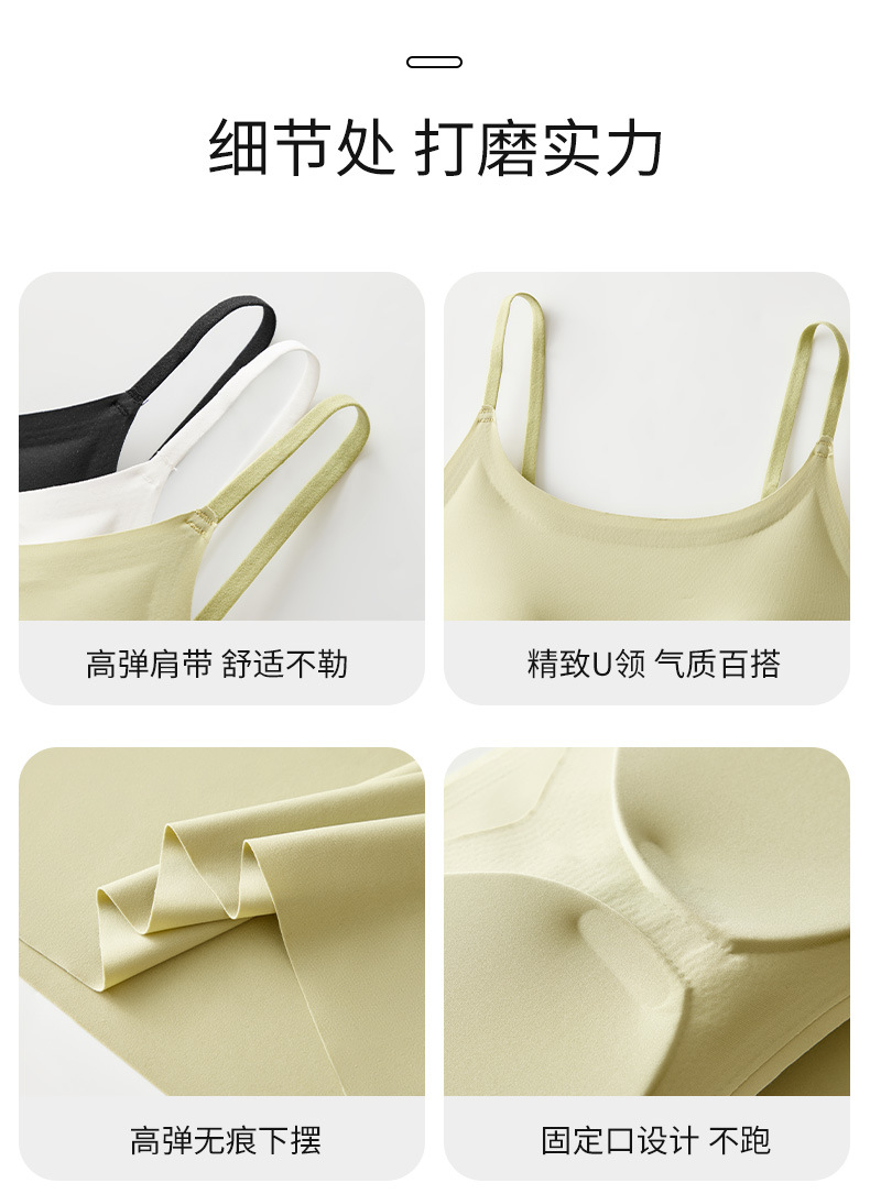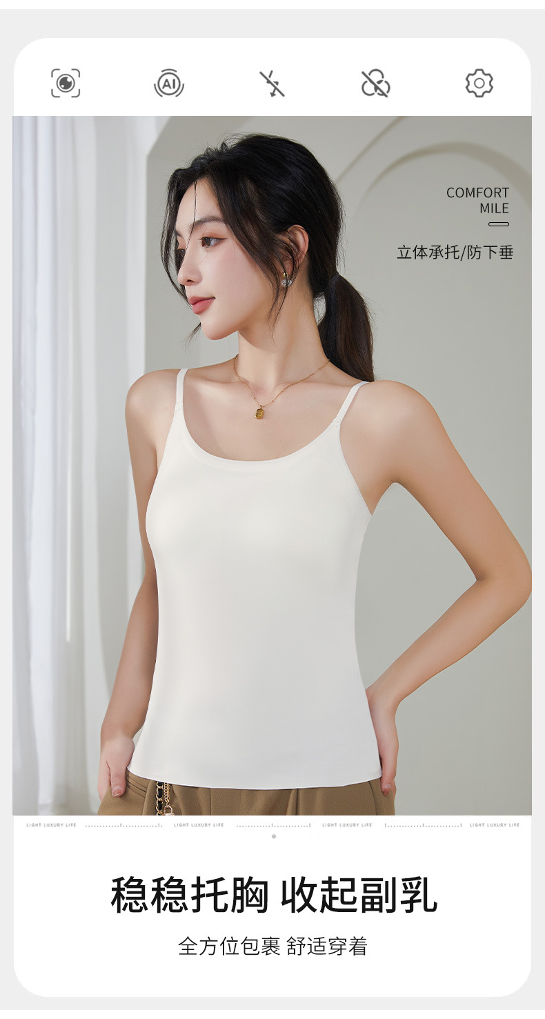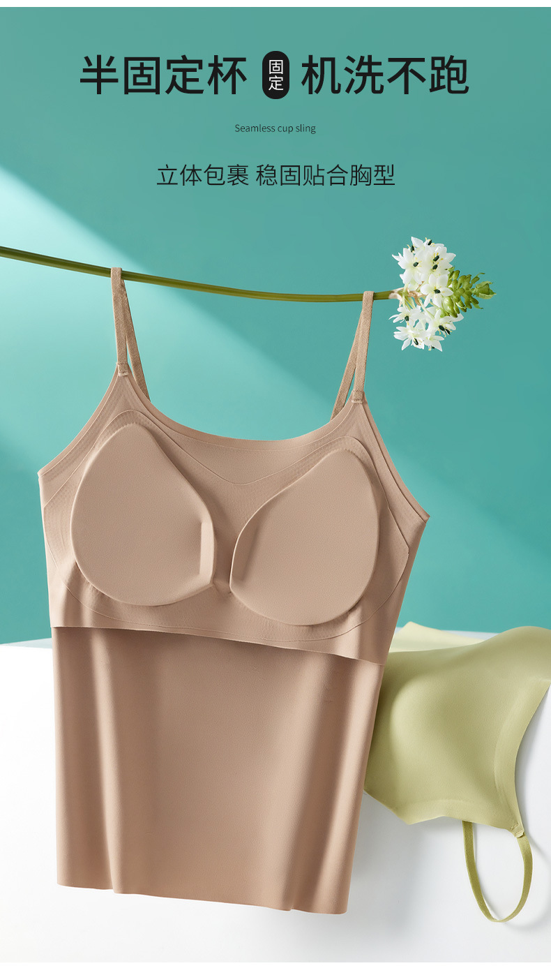 【自带杯垫!裸感舒适】夏季冰丝美背吊带背心女士一体式无痕外穿内搭打底背心可调节抹胸。xa