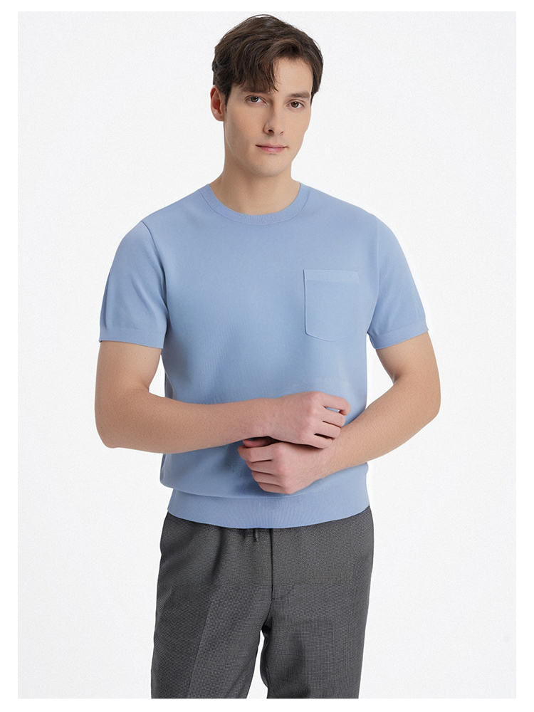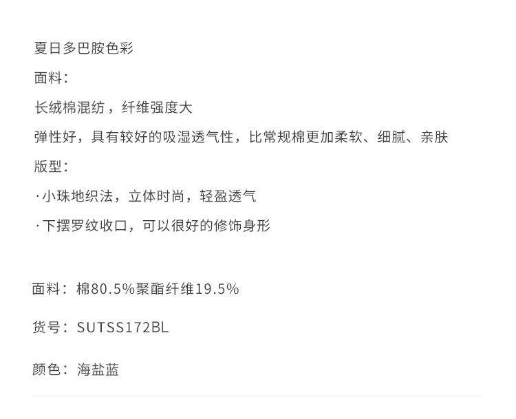 callisto海盐蓝多巴胺长绒棉混纺小珠地T恤