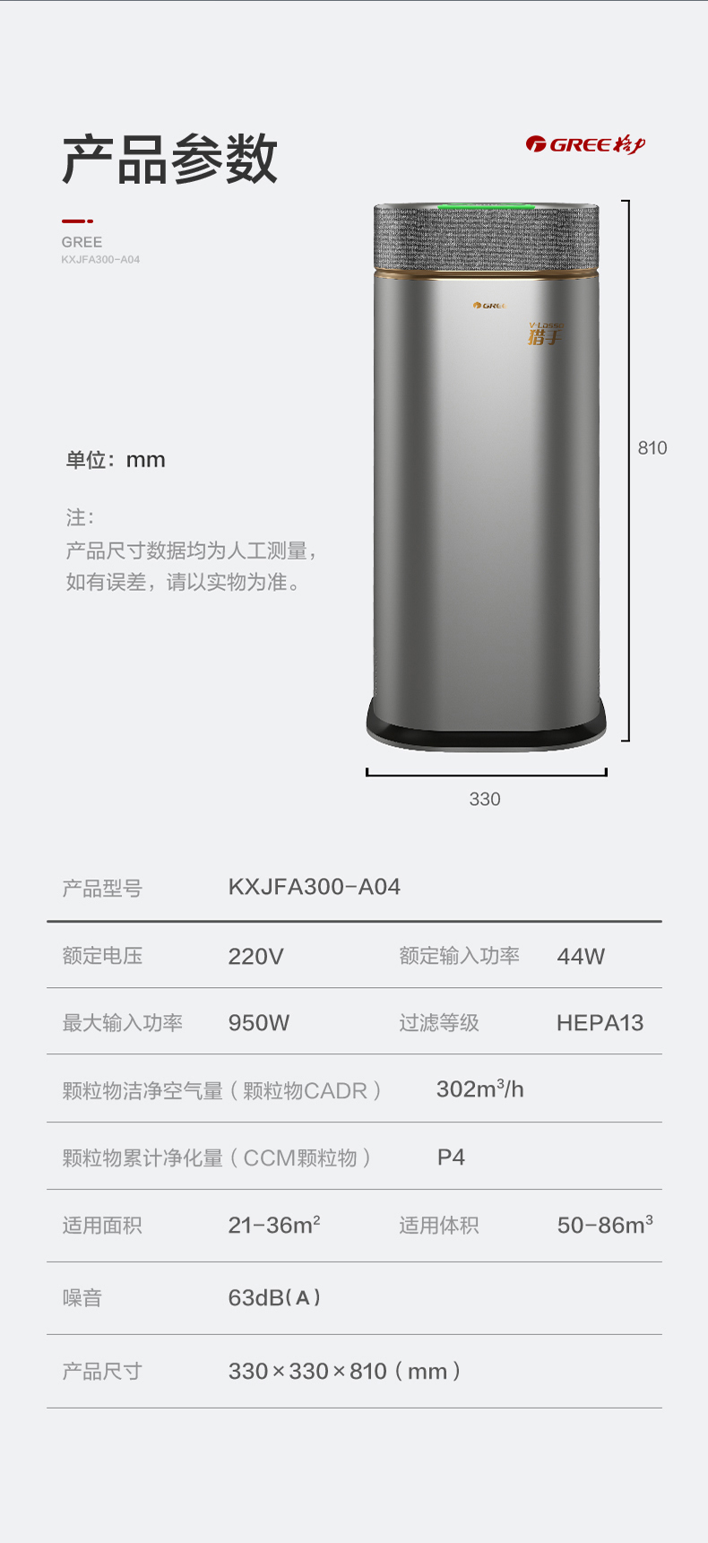 【预售】格力·猎手系列空气净化器 KXJFA300-A04 (太空灰色)
