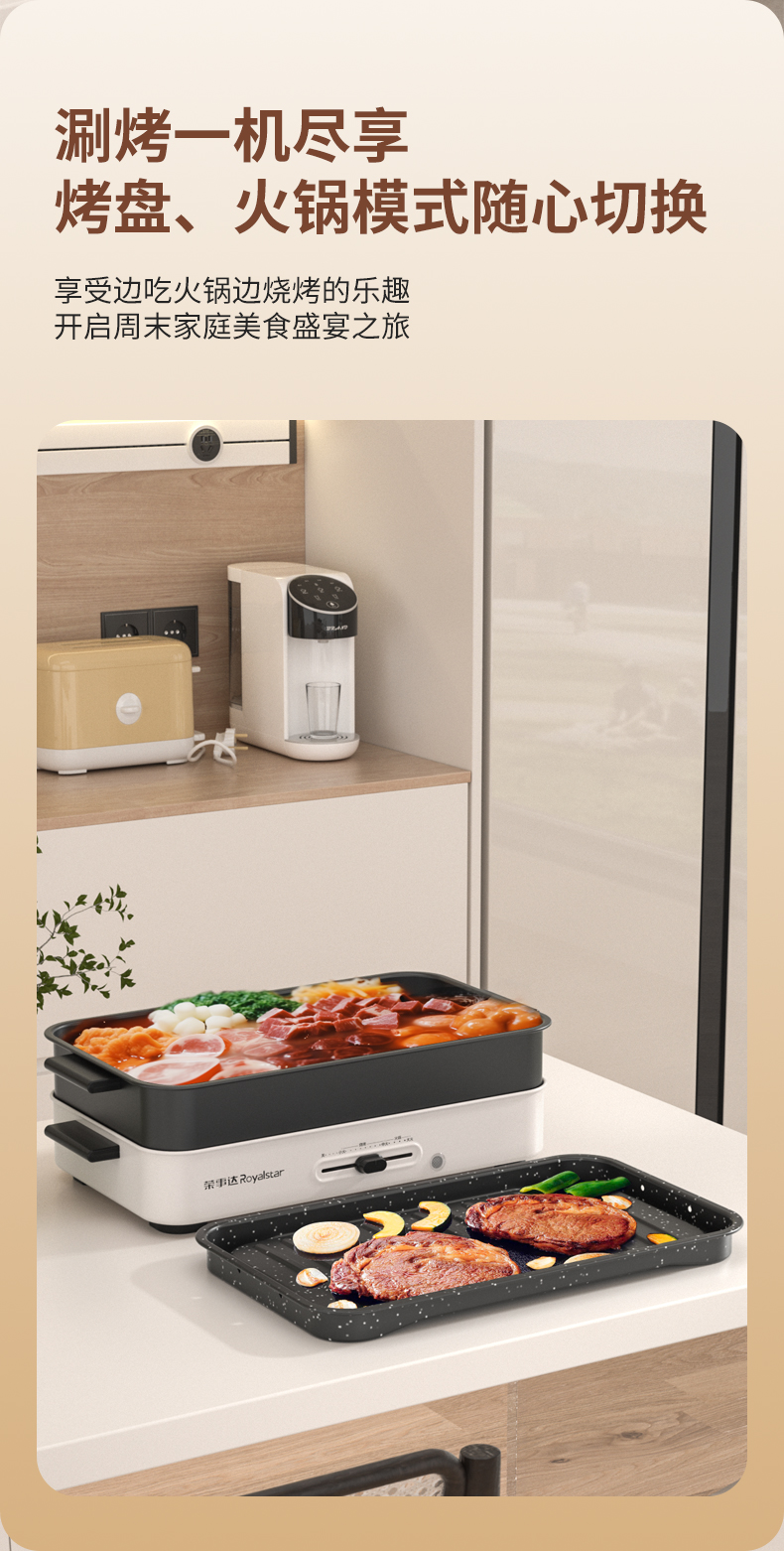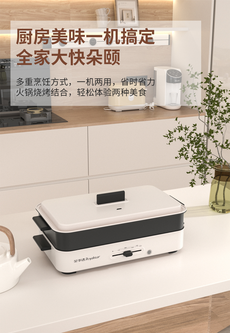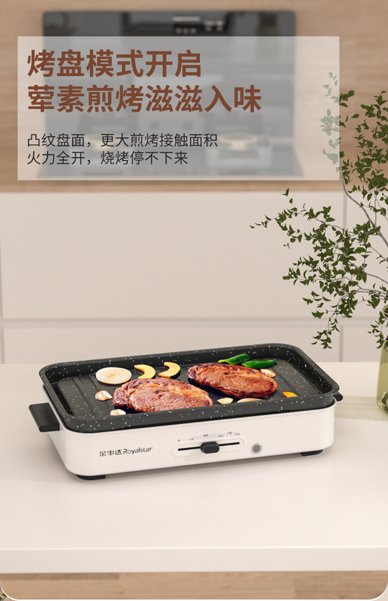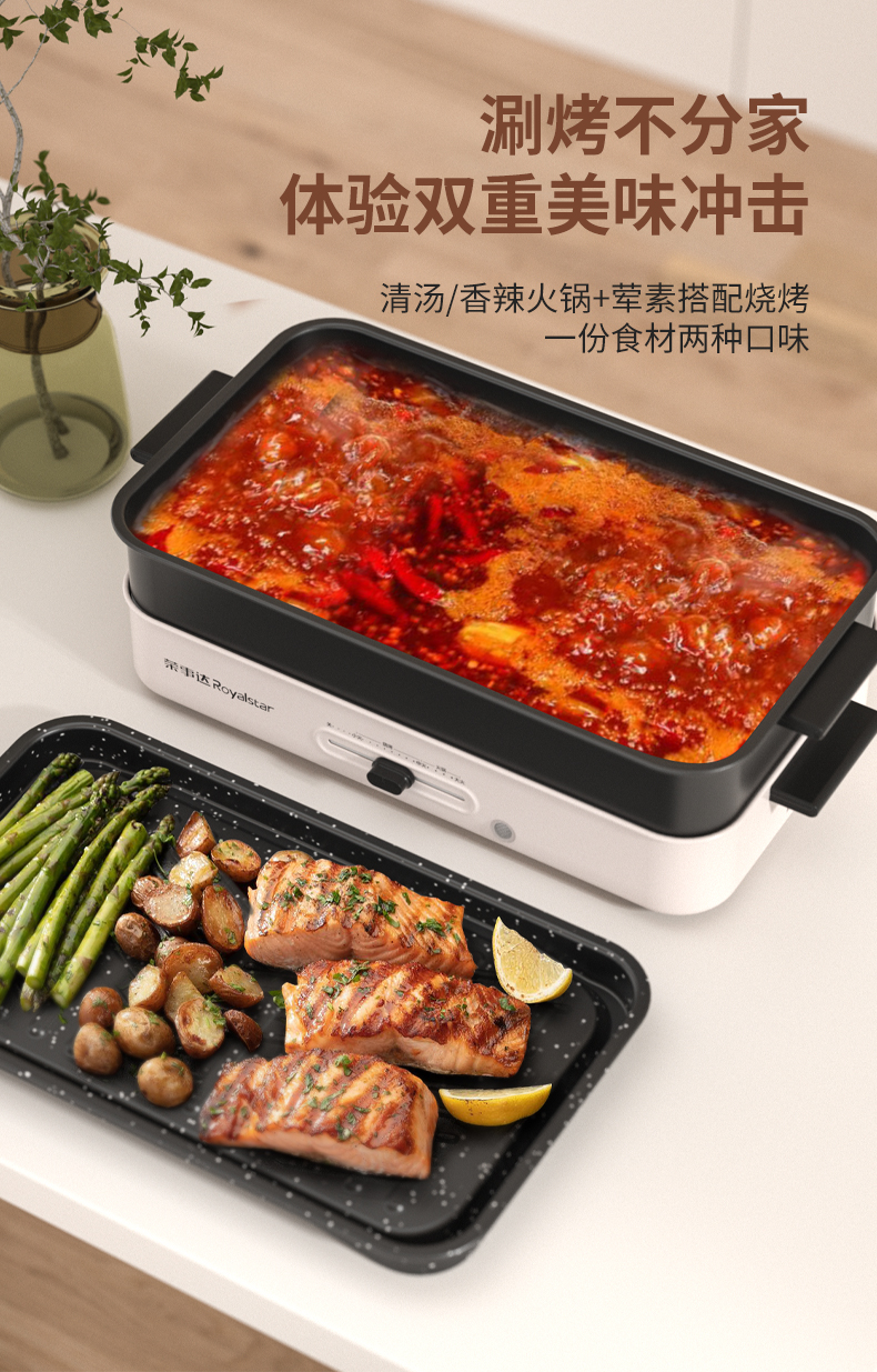 荣事达分体电热锅火锅一机多用煎烤不粘涂层防烫把手