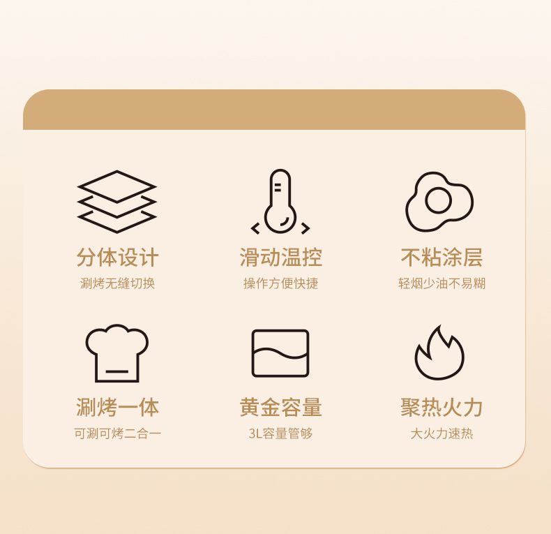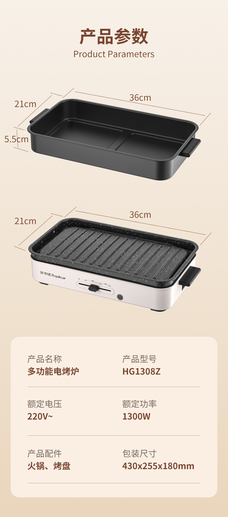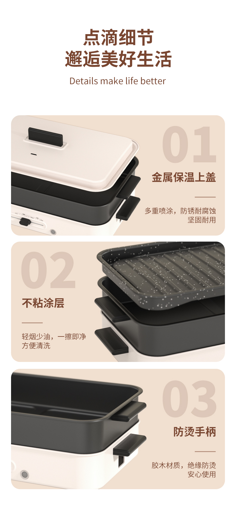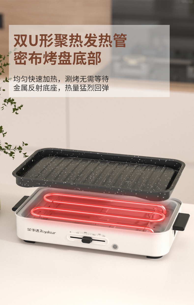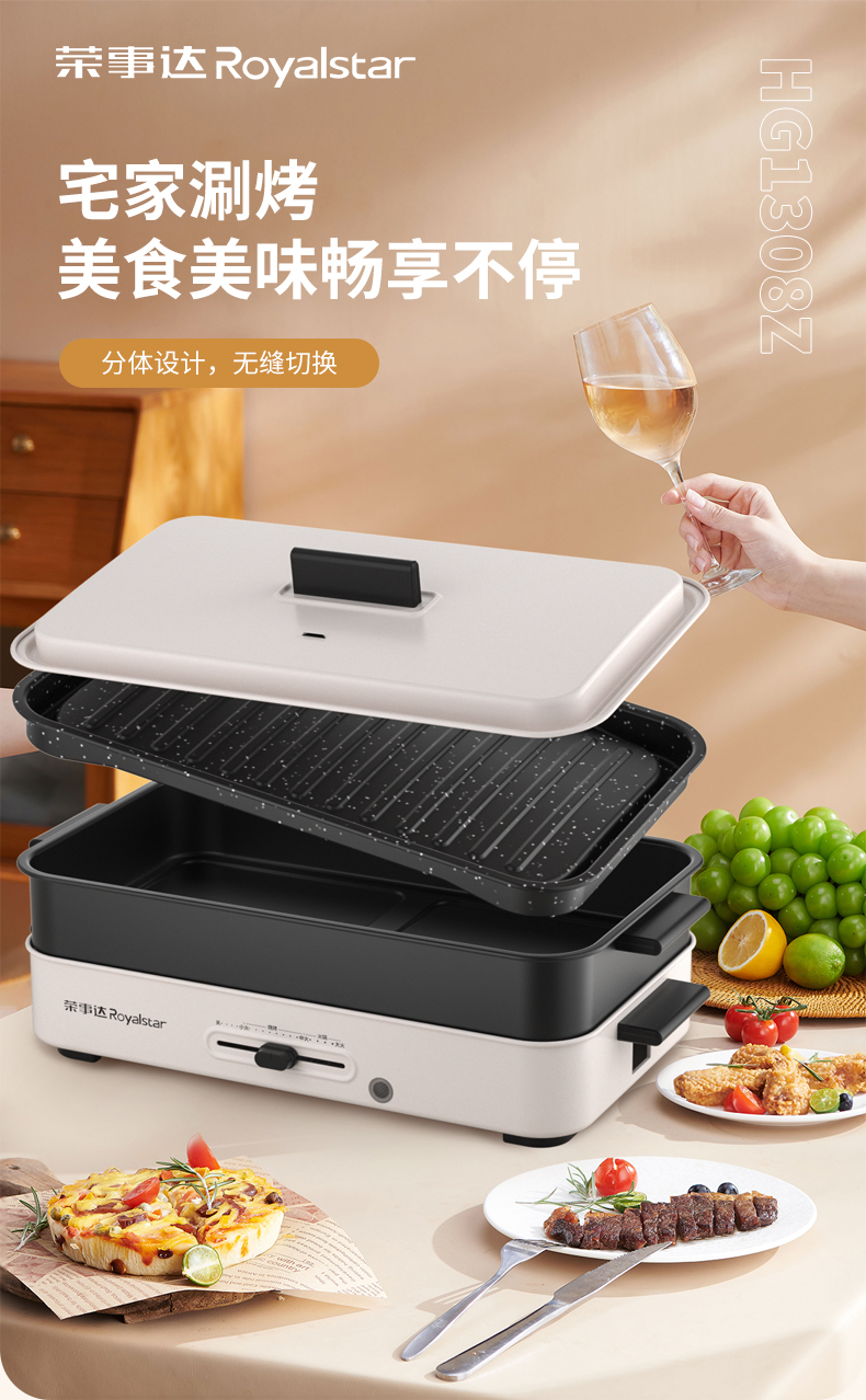 荣事达分体电热锅火锅一机多用煎烤不粘涂层防烫把手