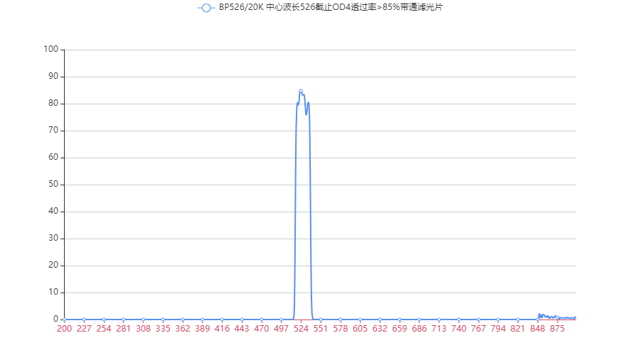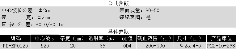 BP526/20K OD4@200-900 T>85% Φ25.4*6 带通滤光片 (带套圈)