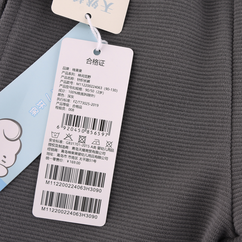 棉果果专柜同款春季新品男童质感全棉针织长裤M112200224063