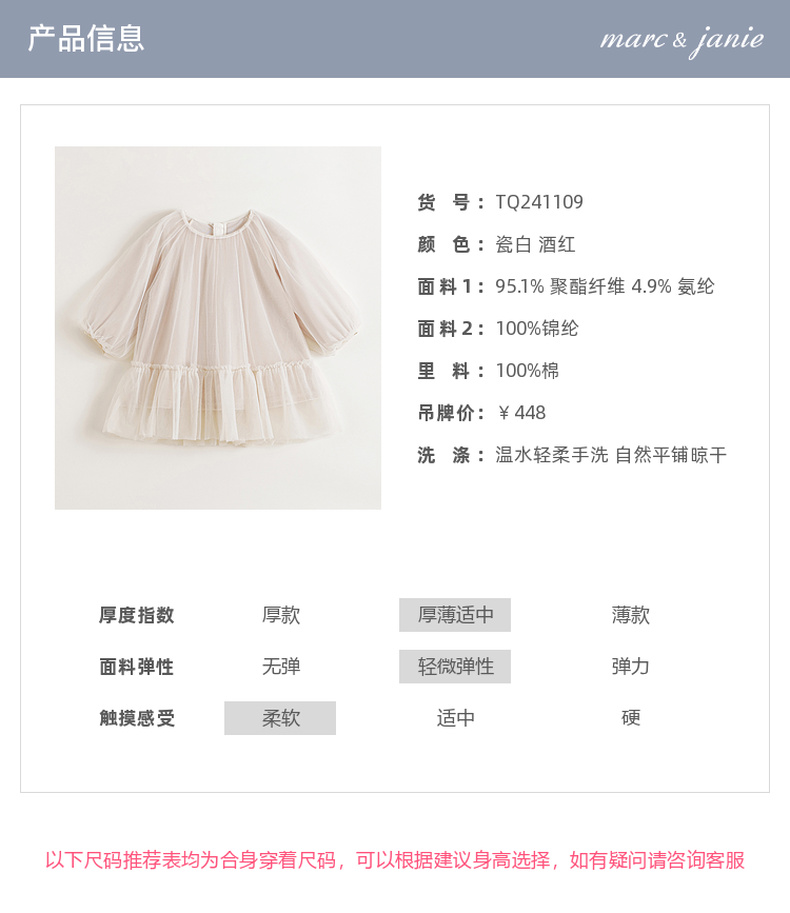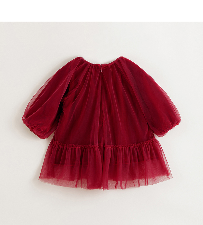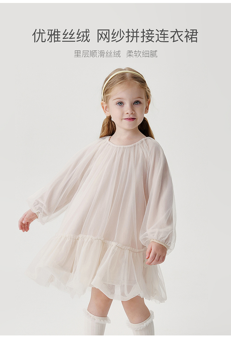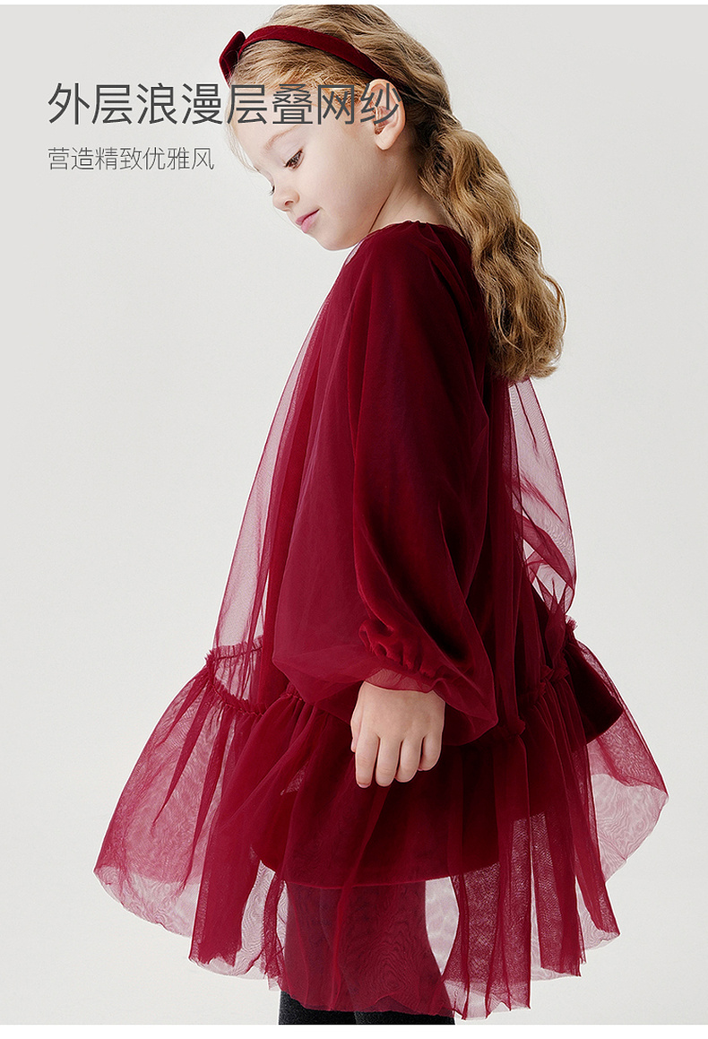 马克珍妮女童丝绒网纱拼接连衣裙 宝宝裙子2024年秋冬新款241109