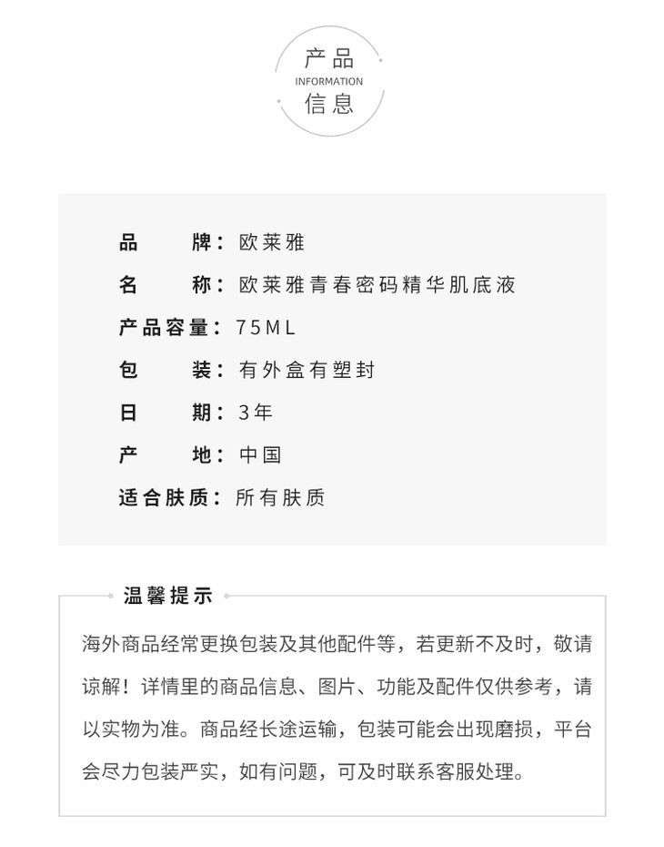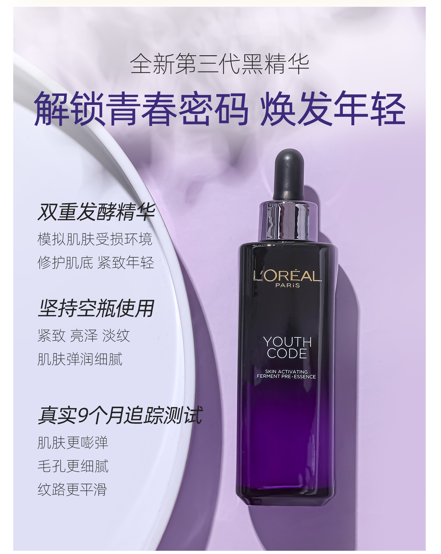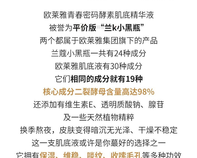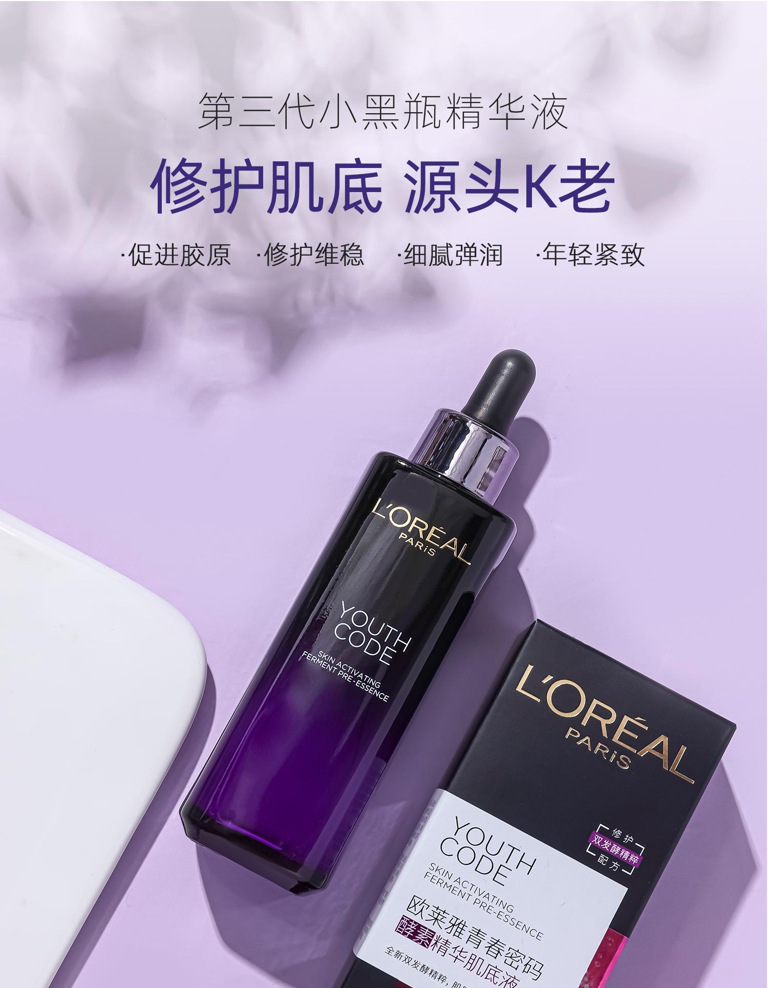欧莱雅小黑瓶精华液修护紧致抗皱抗初老保湿青春肌底液第三代75ml