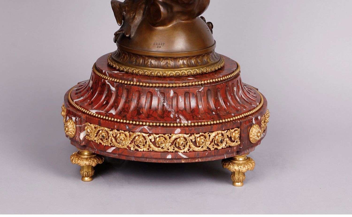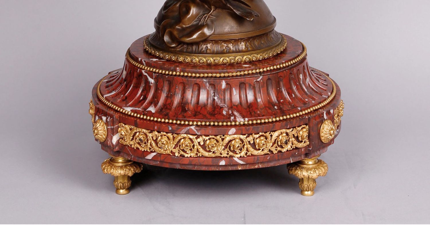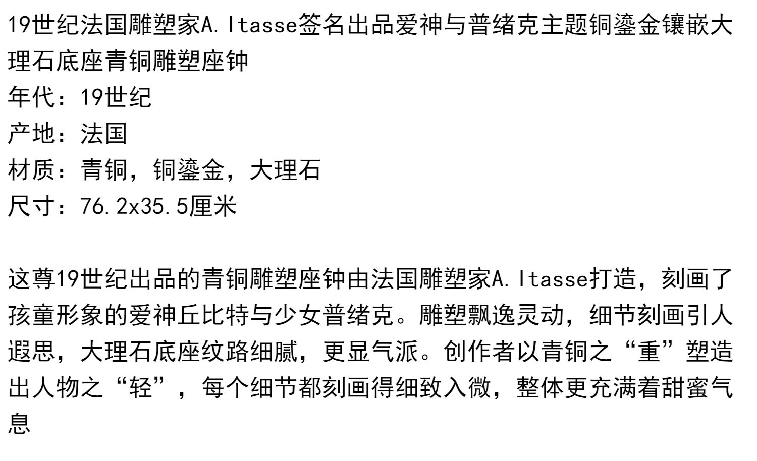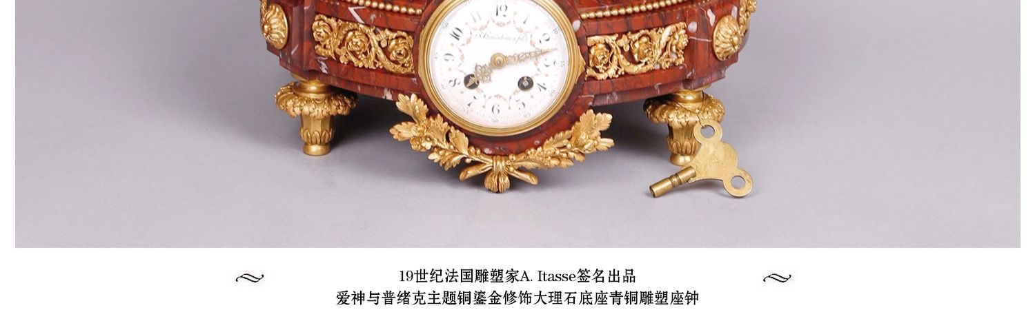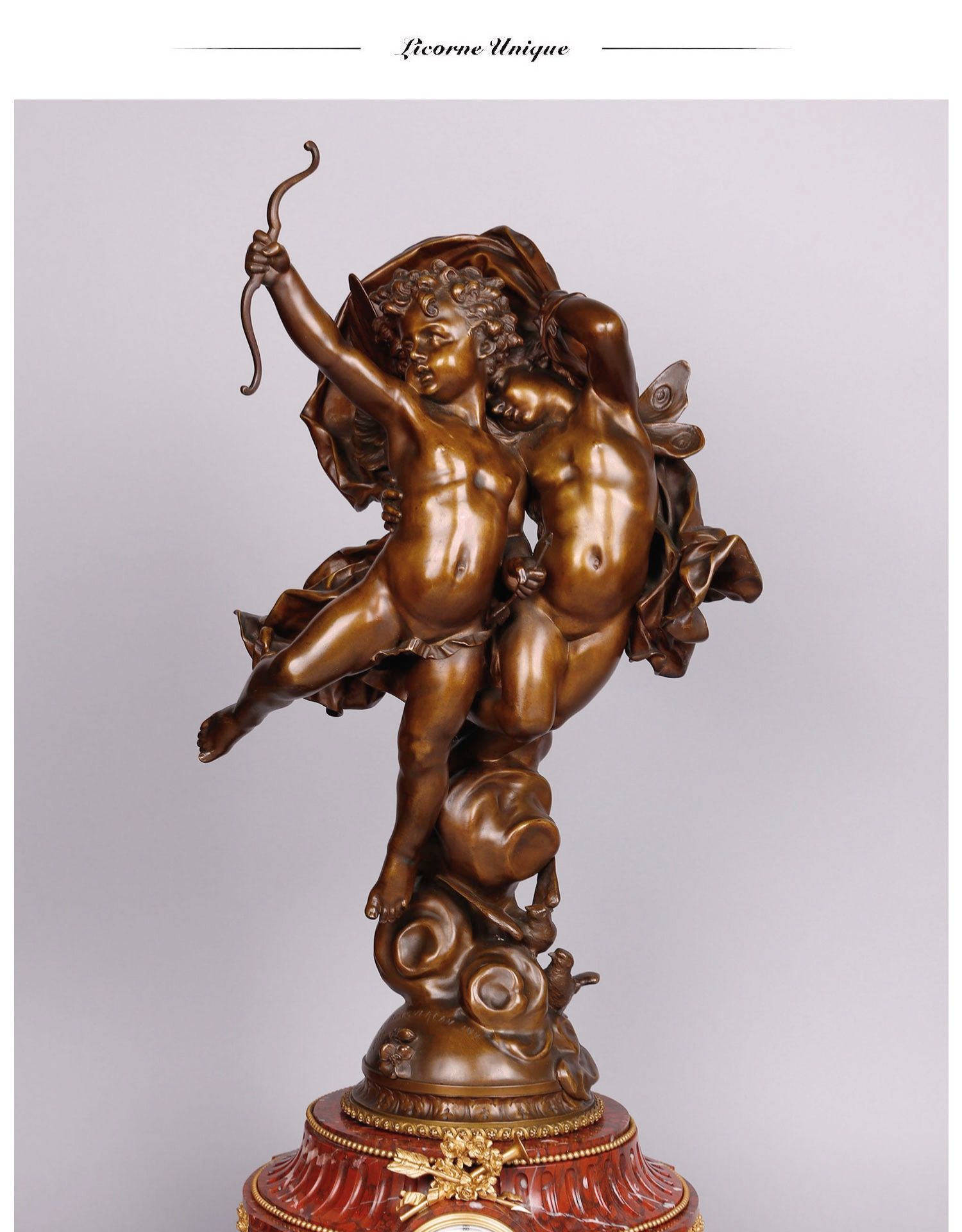 独角鹿西洋古董法国爱神铜鎏金镶嵌大理石底座青铜雕塑座钟摆件