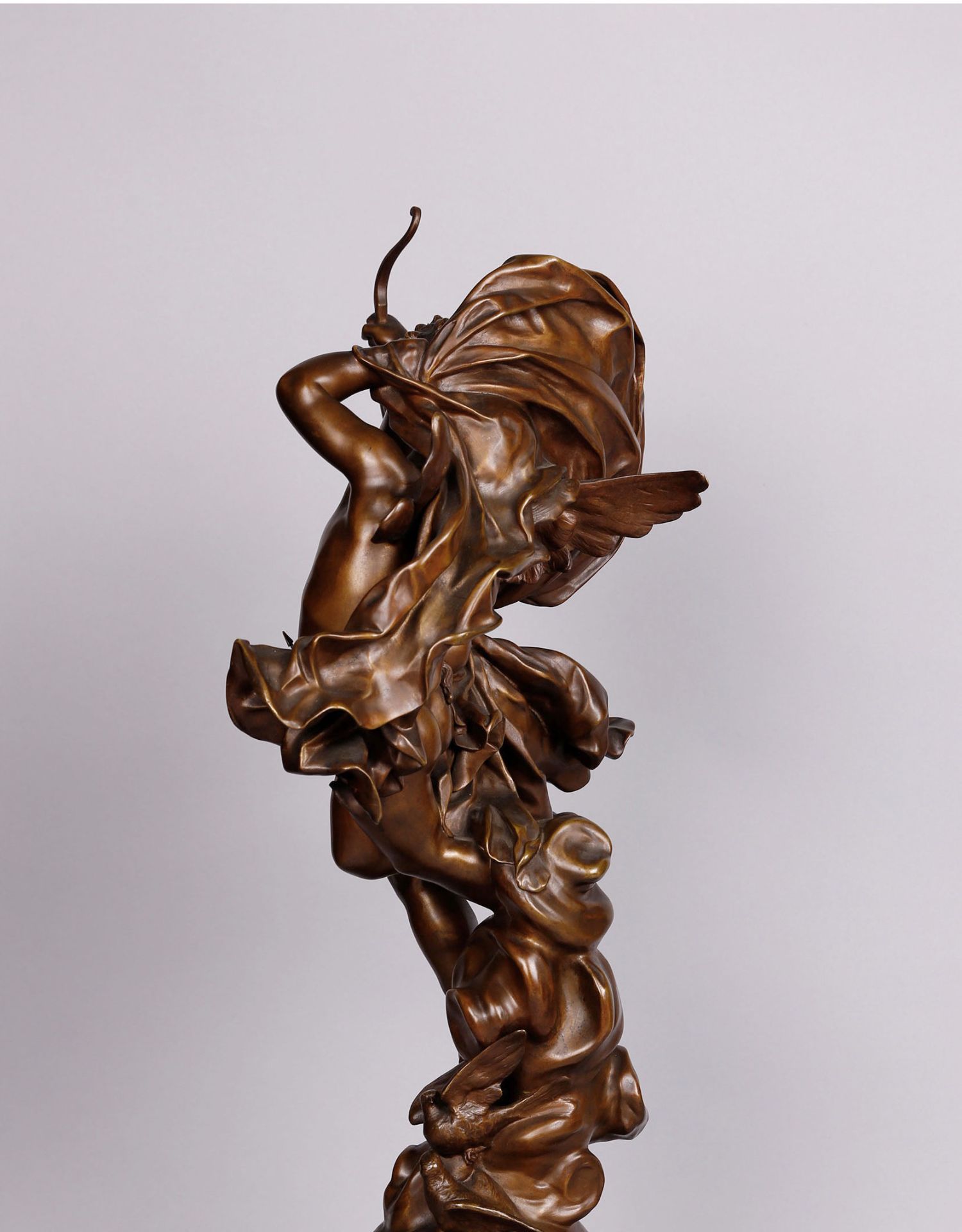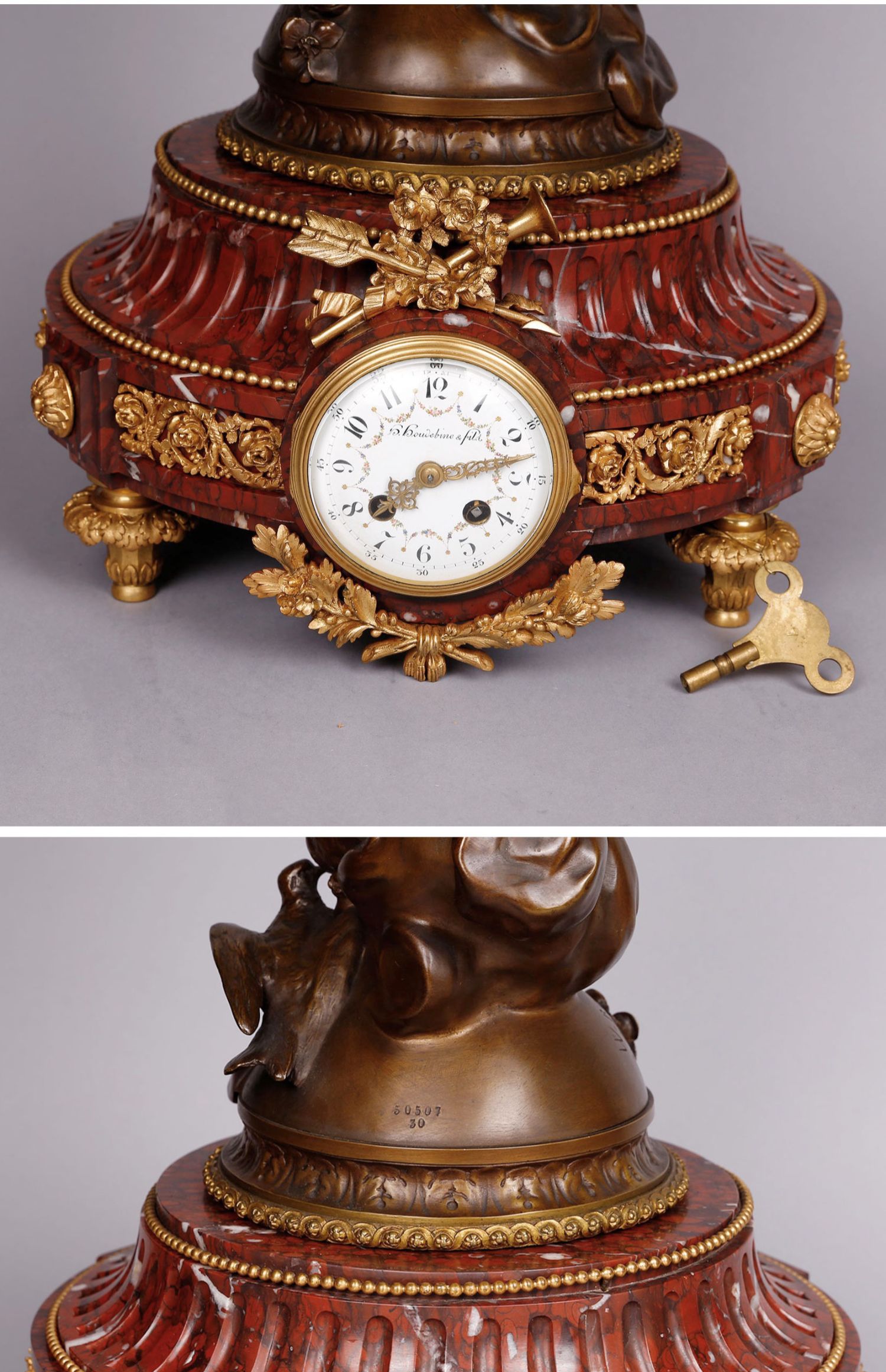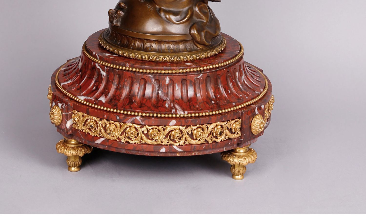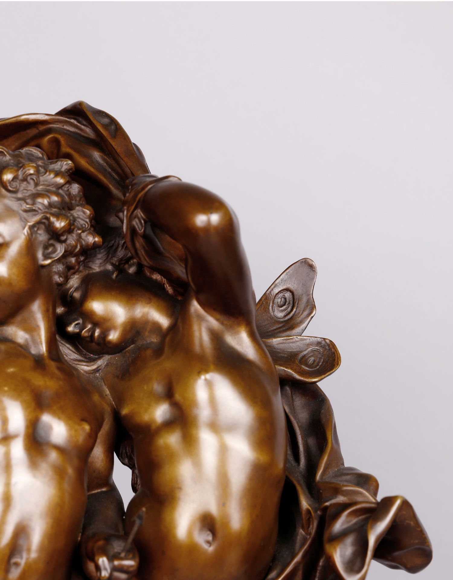 独角鹿西洋古董法国爱神铜鎏金镶嵌大理石底座青铜雕塑座钟摆件
