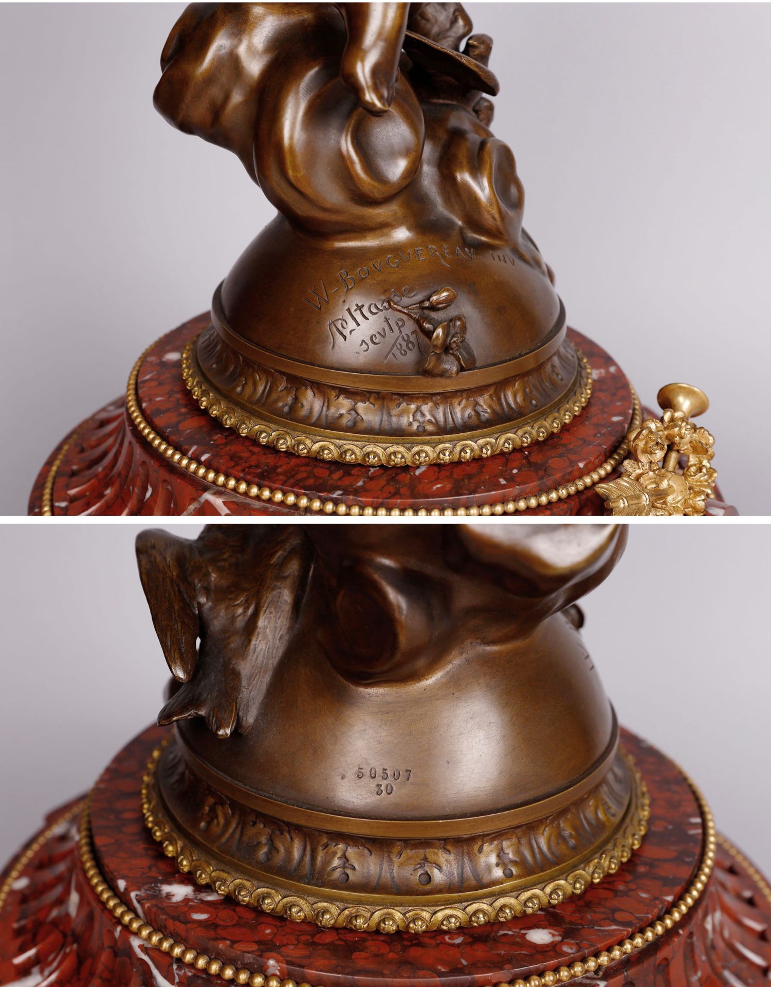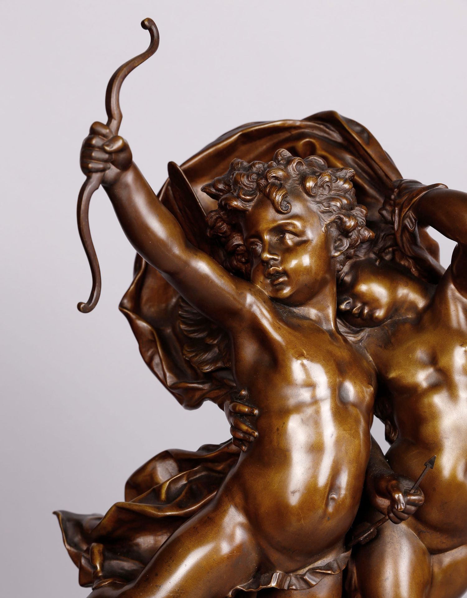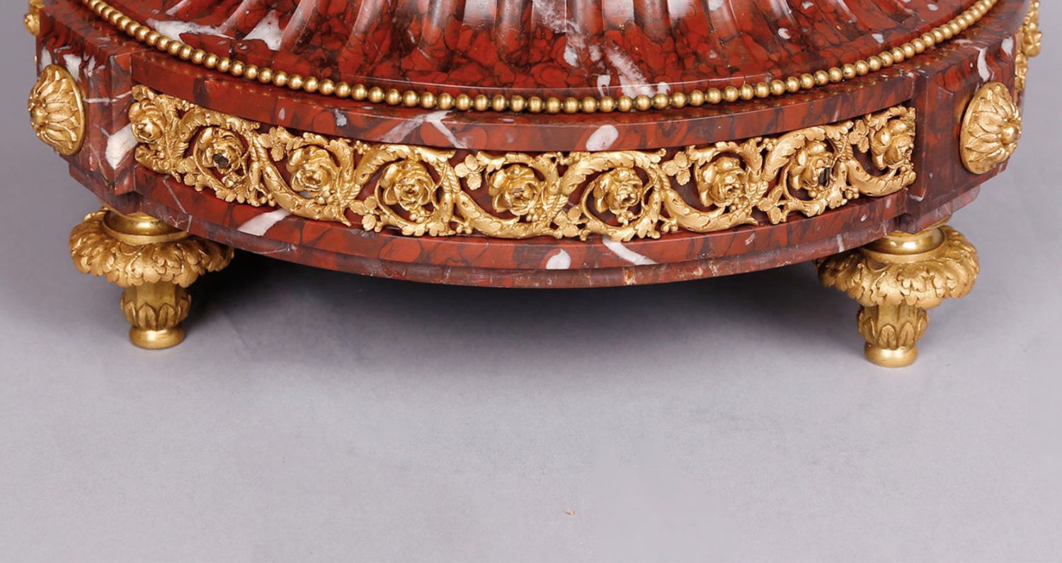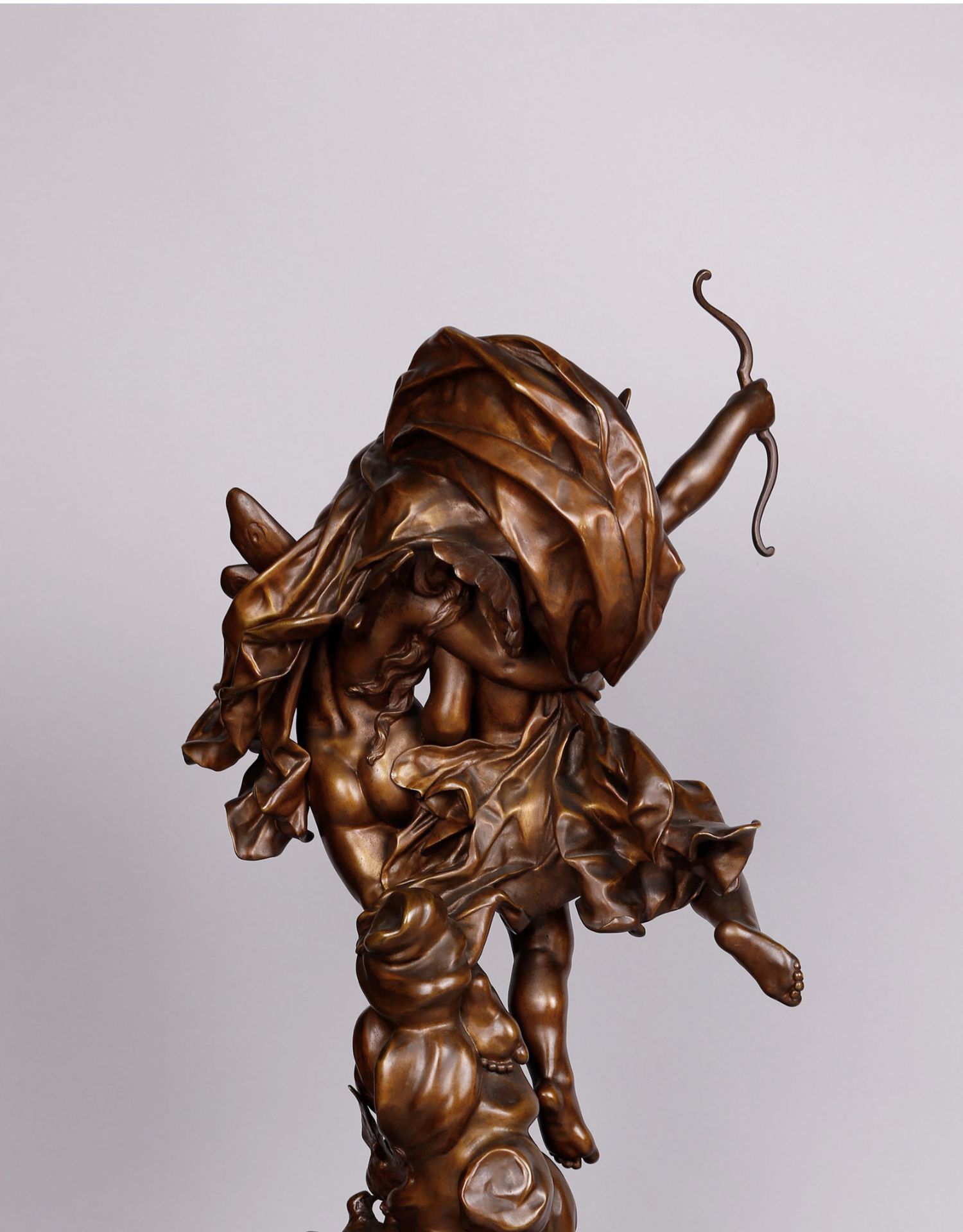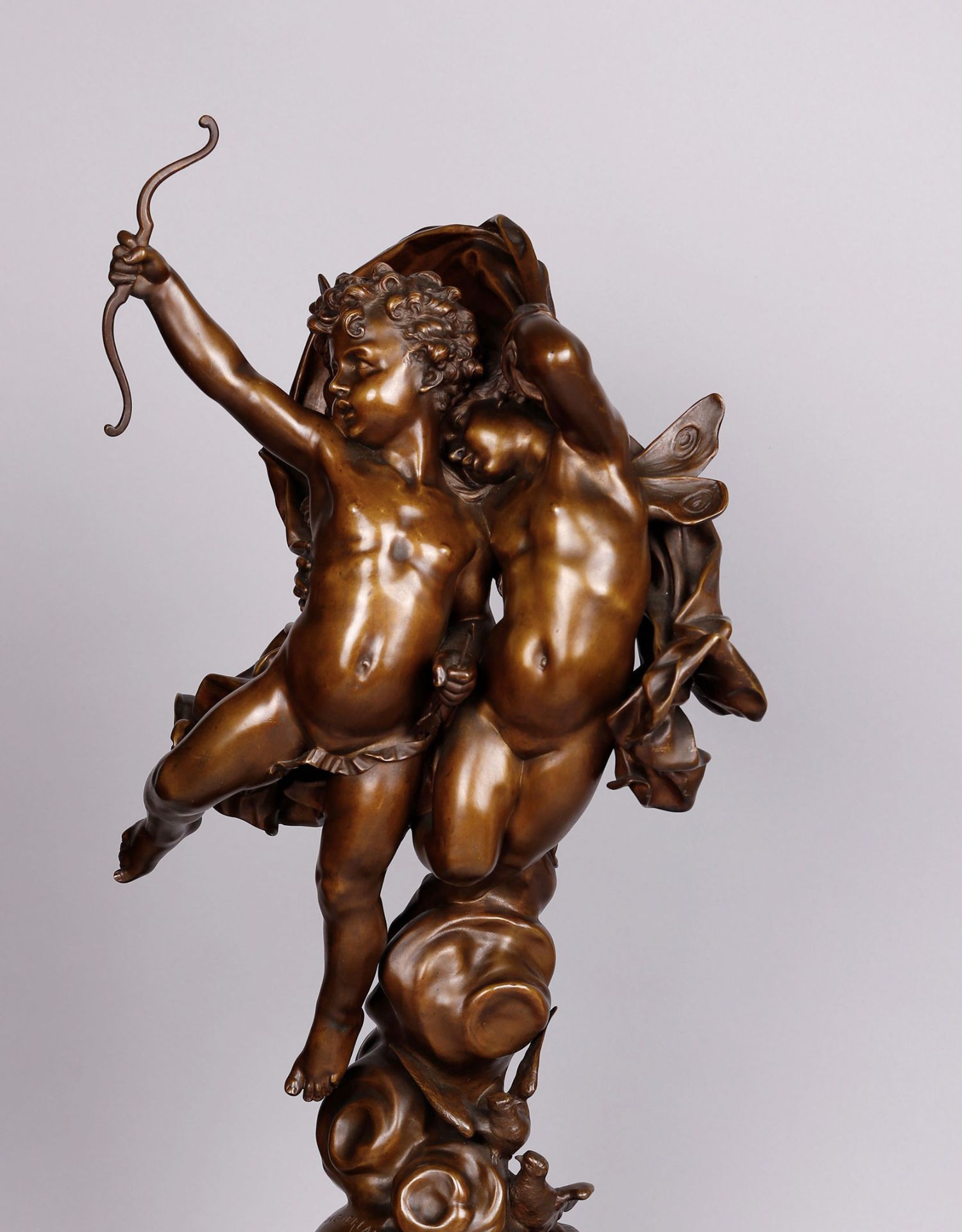 独角鹿西洋古董法国爱神铜鎏金镶嵌大理石底座青铜雕塑座钟摆件