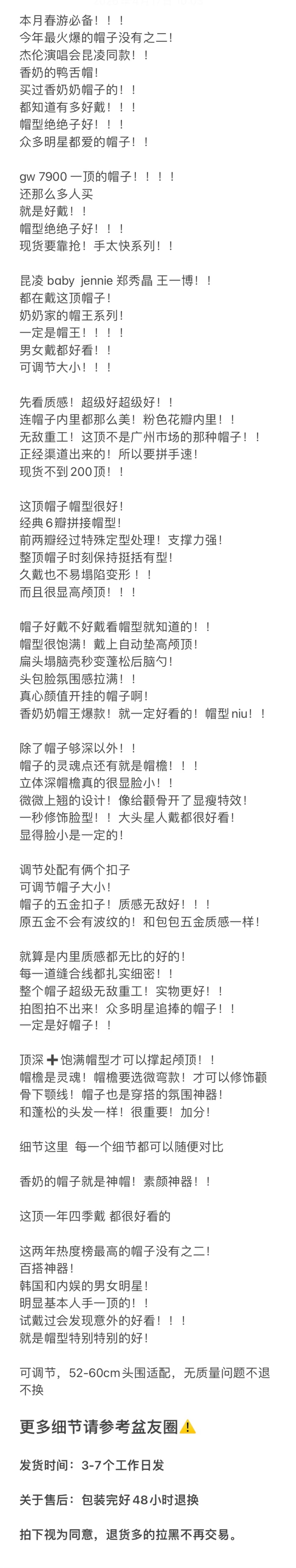 重磅! 人手款 奶奶棒球帽 男女同款 可调节头围 日常常百搭 经典鸭舌帽 防晒遮阳神器