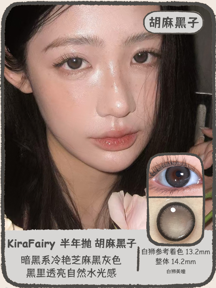 Kira Fairy半年抛 · 玻色因&胡麻黑子 |14.2mm白狮参考着色中等直径 韩产半年抛2片