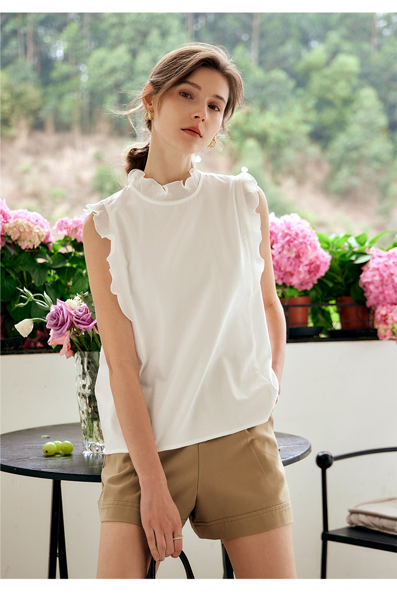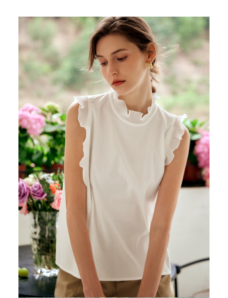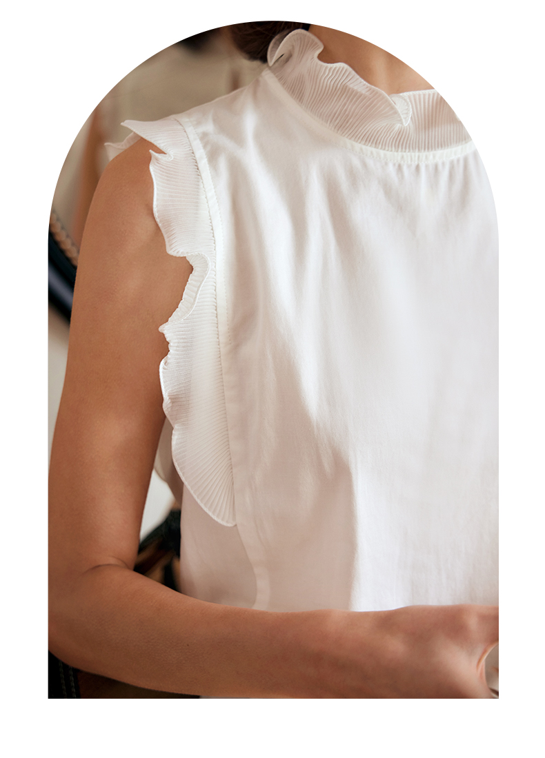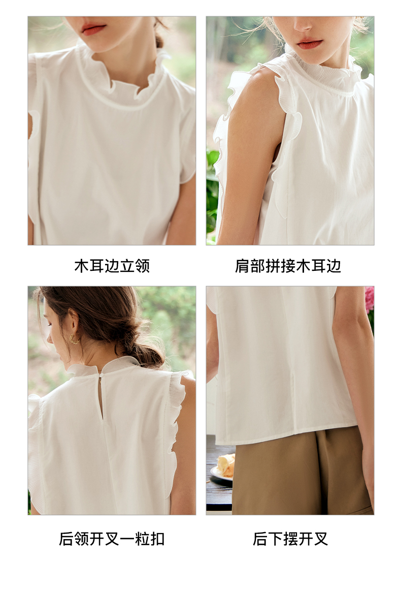 OLrain欧芮儿米白色雪纺衫女早春2024年新款气质立领木耳边上衣