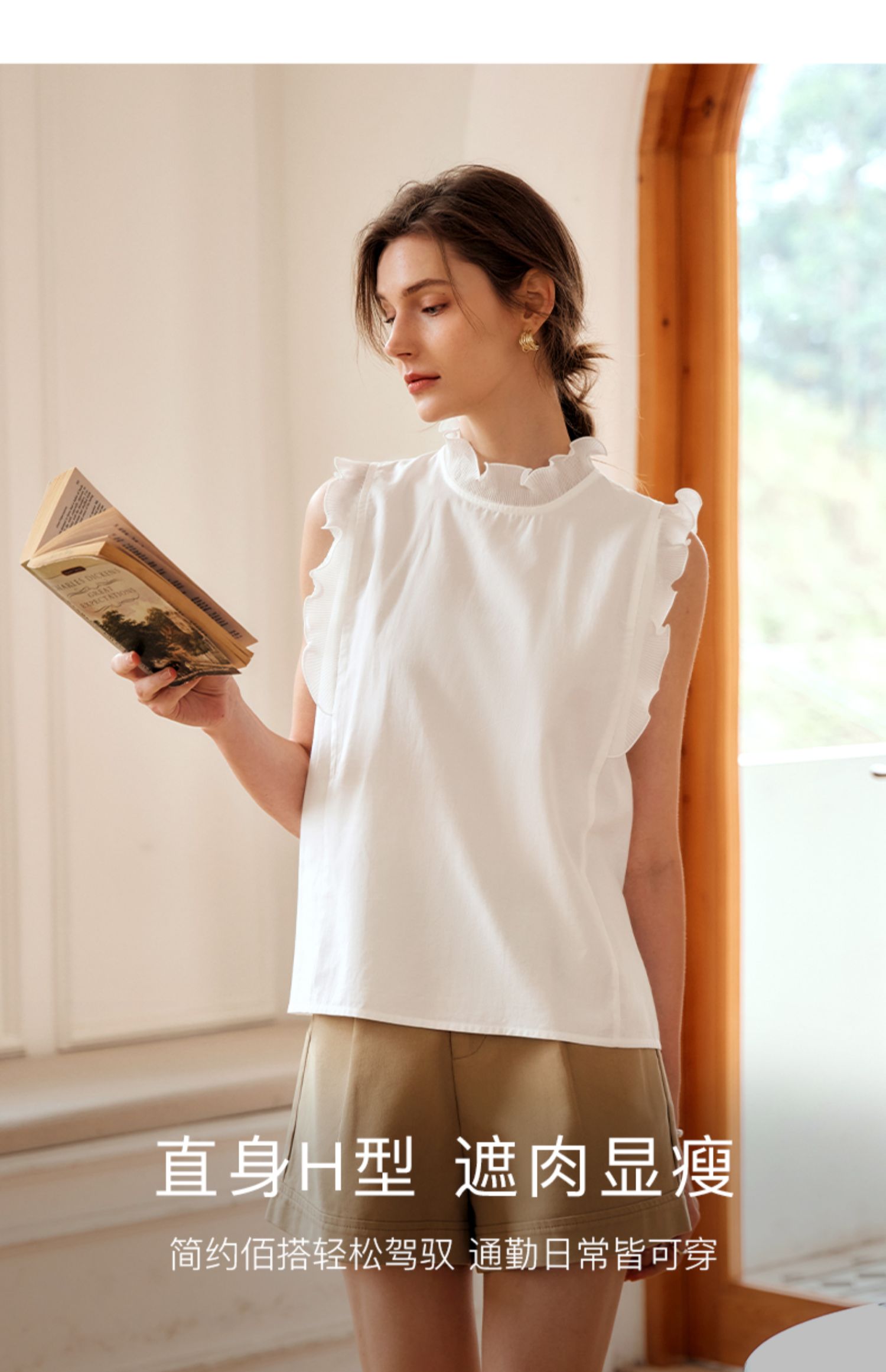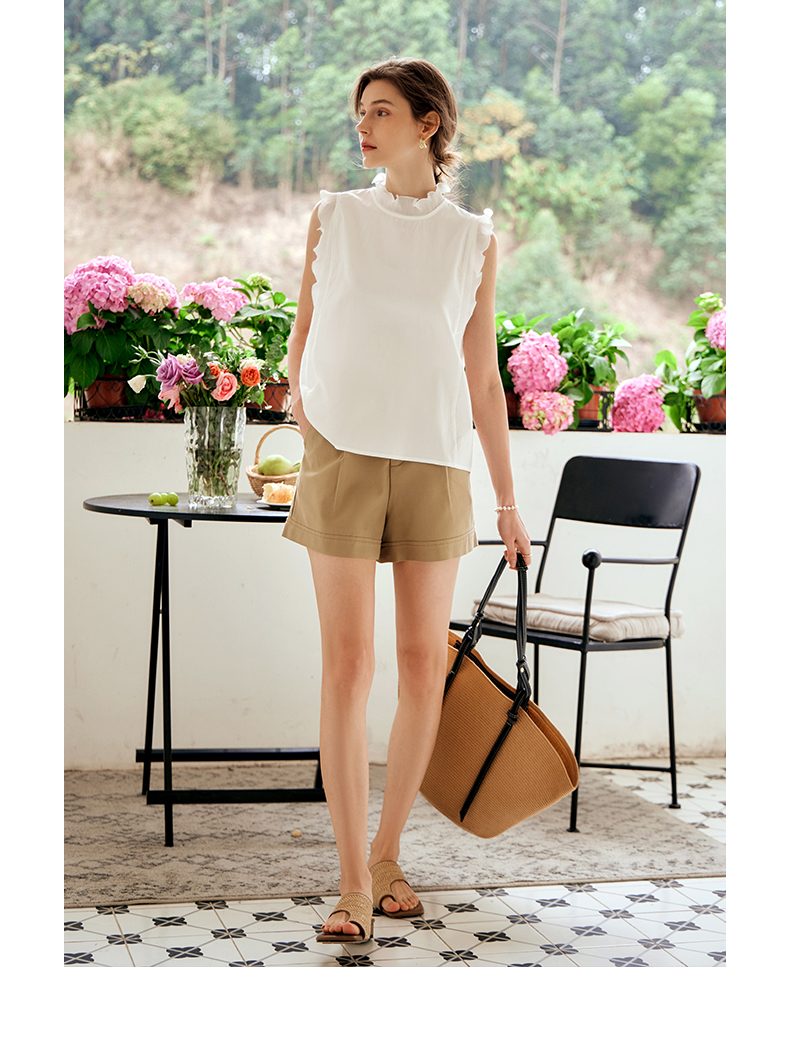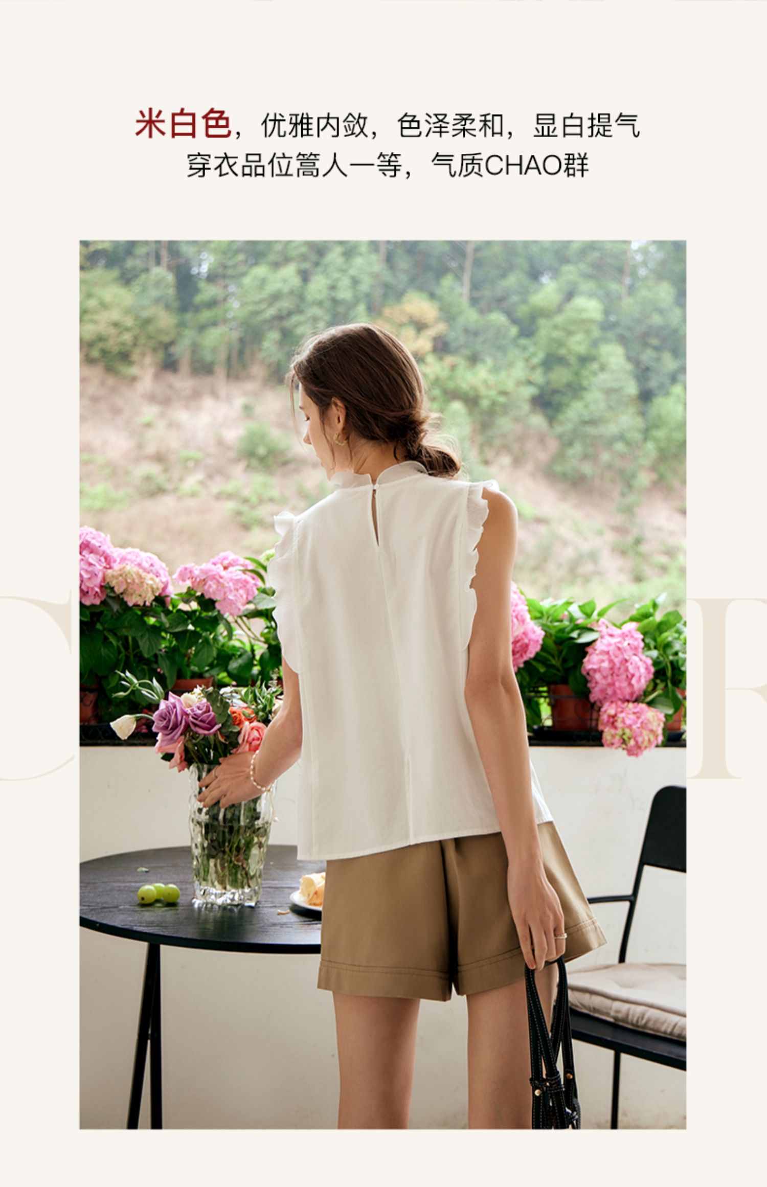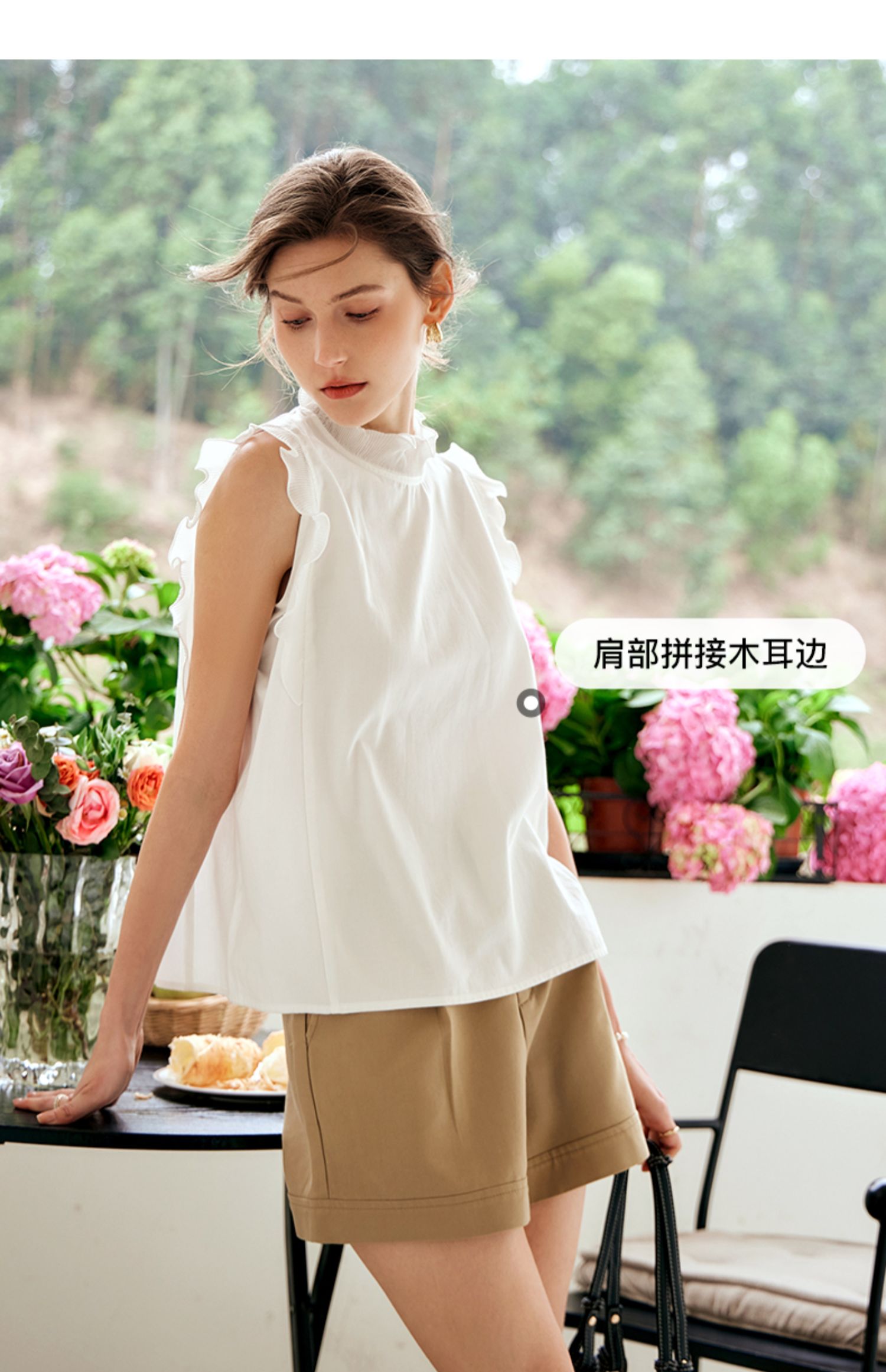 OLrain欧芮儿米白色雪纺衫女早春2024年新款气质立领木耳边上衣