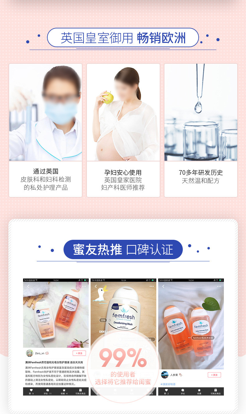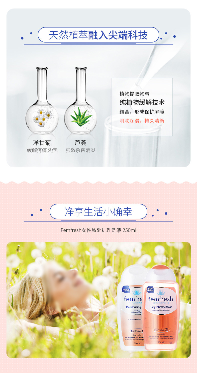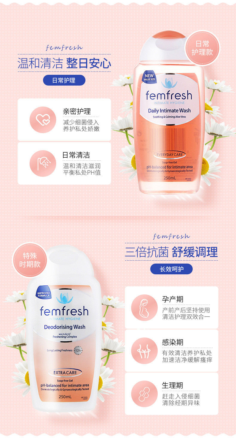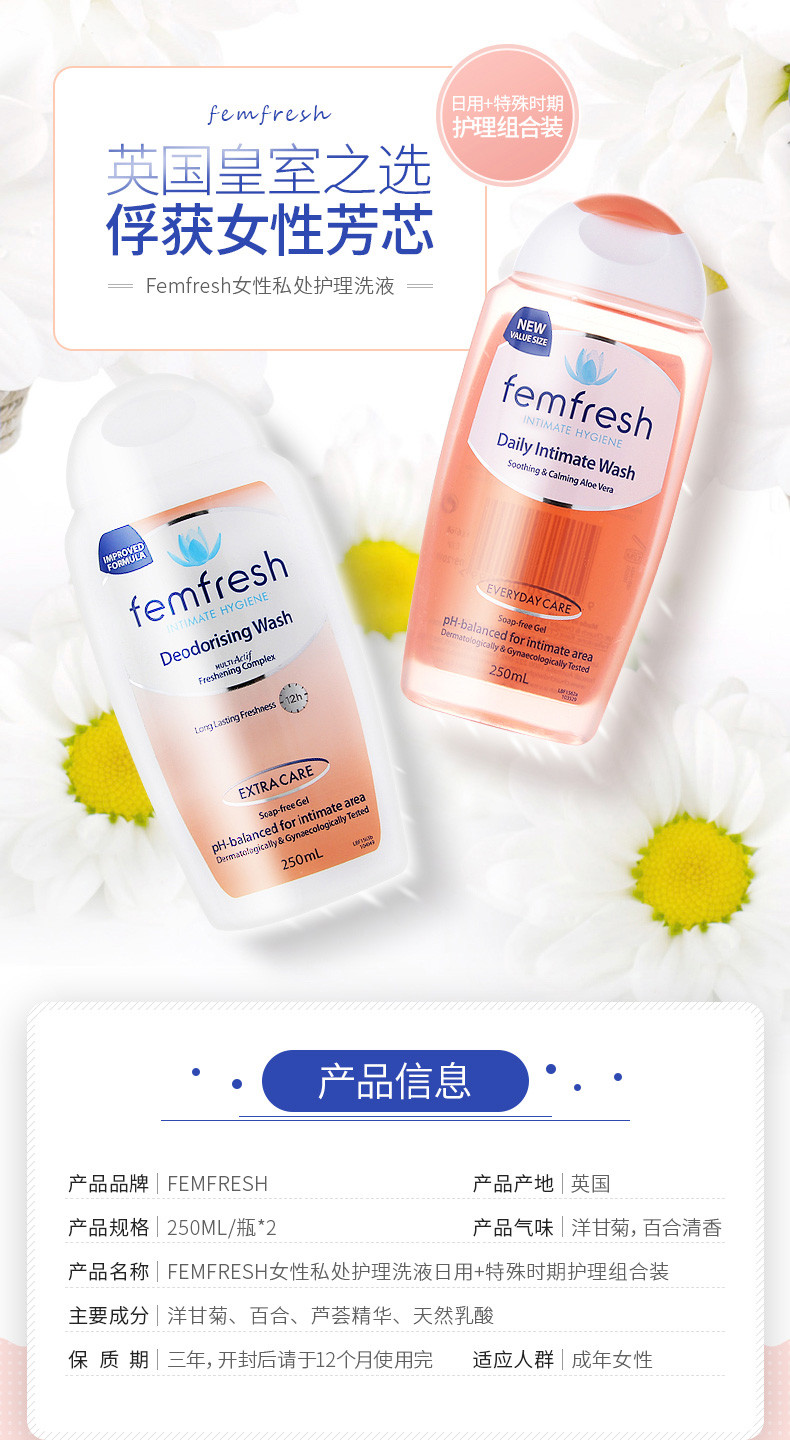 FEMFRESH/芳芯 女性私处护理洗液 洋甘菊味250ML+百合味250MLJPY带授权招加盟代理