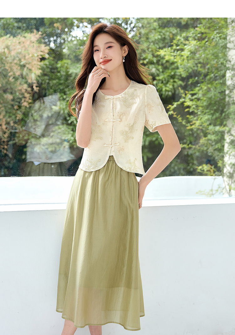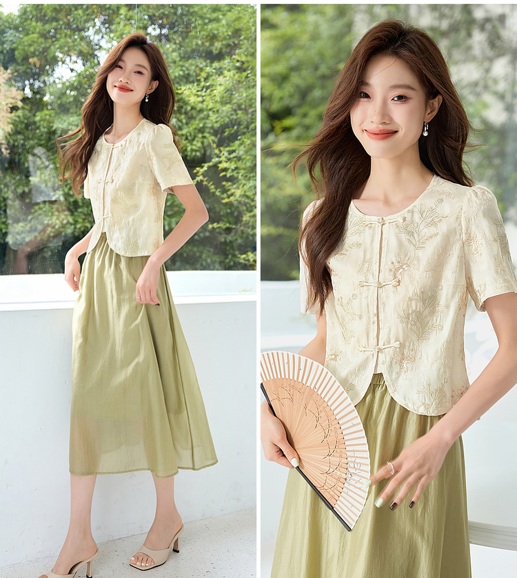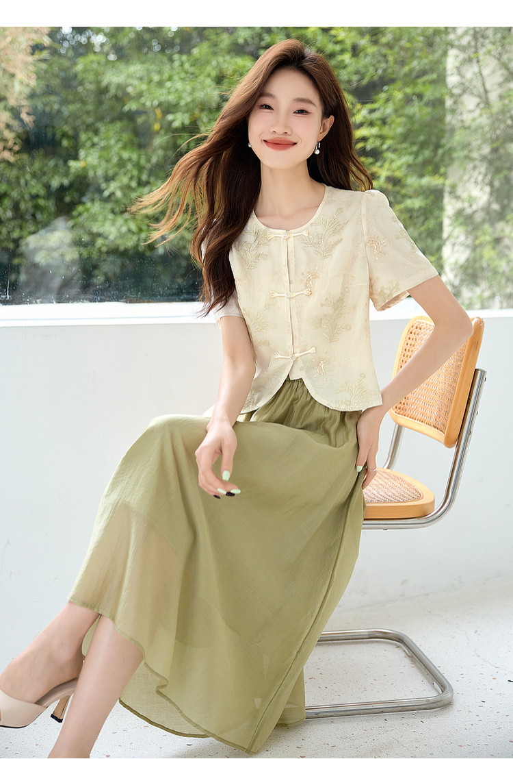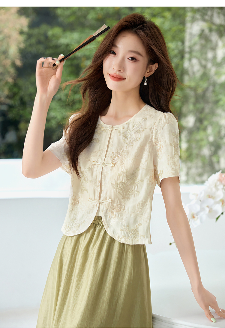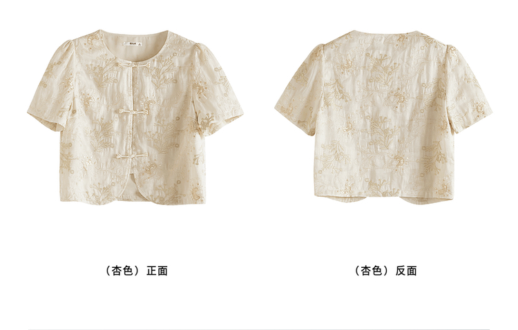 【专属特价】熙世界新中式国风金线绣花盘扣衬衫夏季短款小个子气质减龄上衣