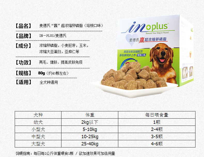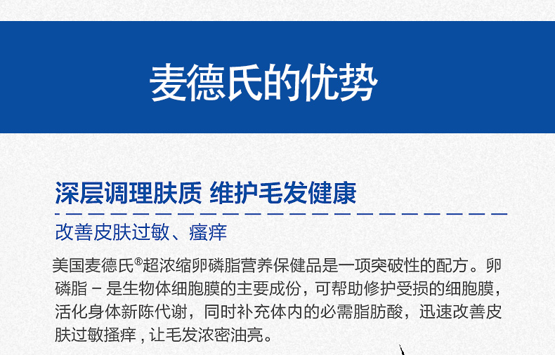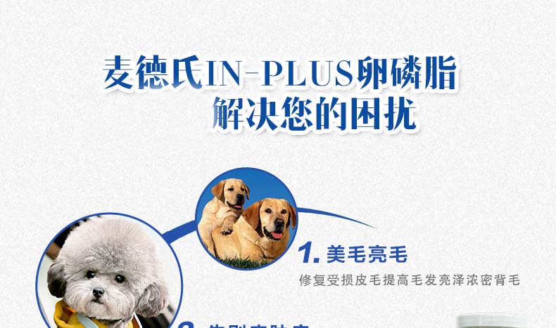 麦德氏卵磷脂宠物鱼油成犬幼犬爆毛粉美毛软磷脂65g