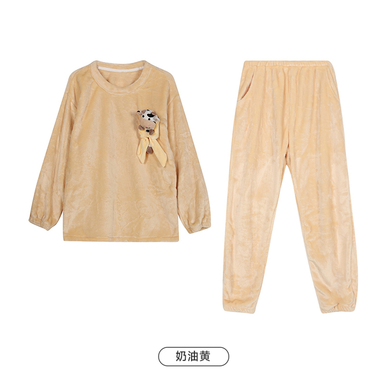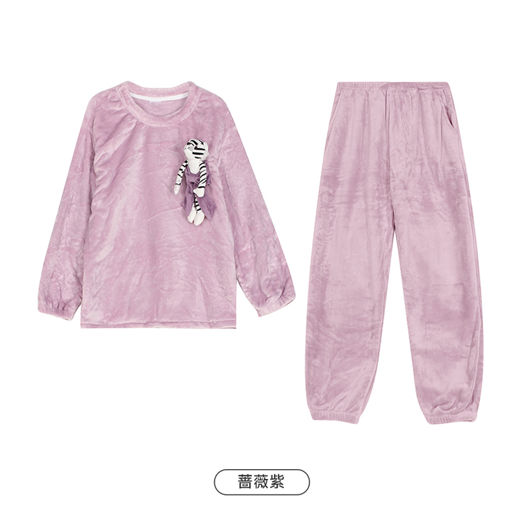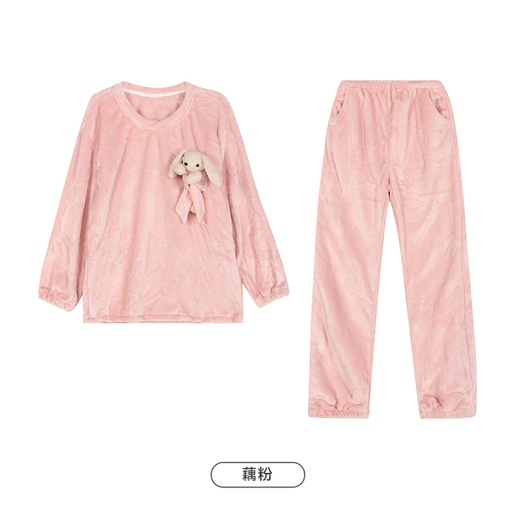 都市丽人睡衣双面法兰绒睡衣女士家居服长袖长裤法兰绒套装LHH2R4
