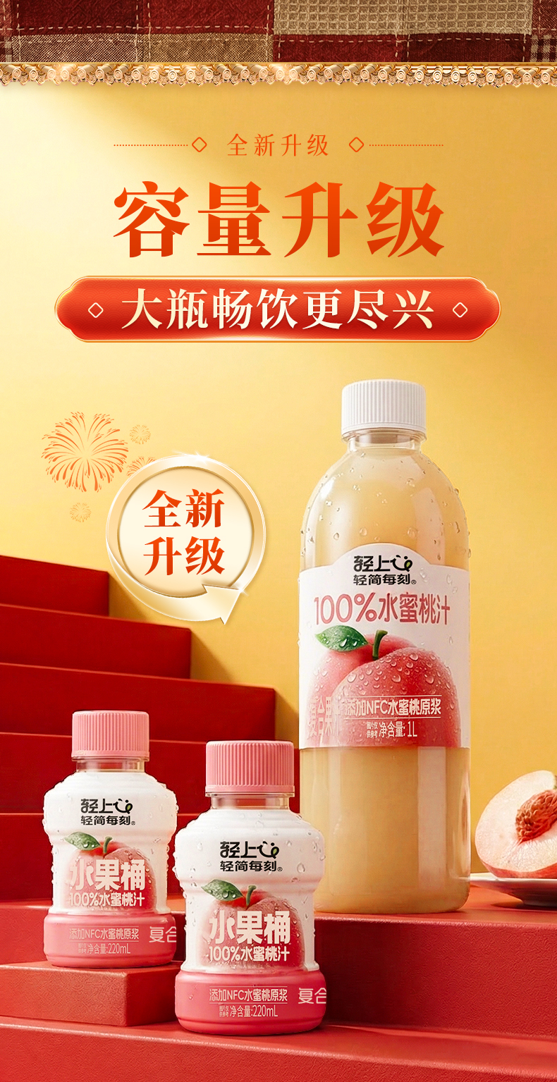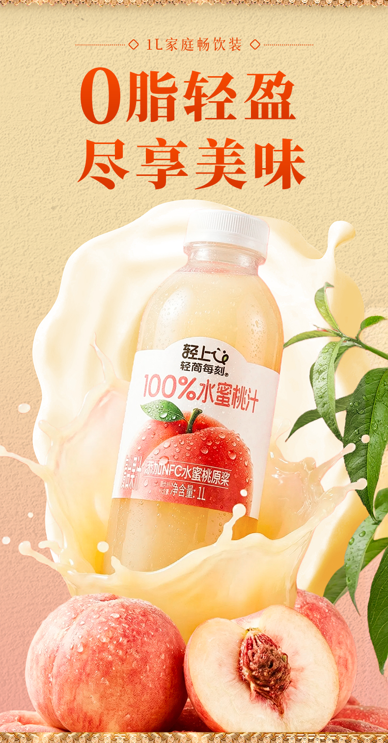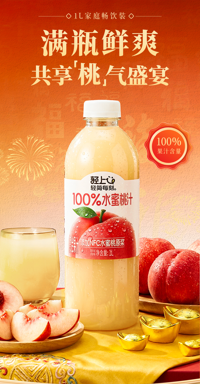 轻上 多口味NFC果汁1L*2瓶 果汁葡萄汁芒果汁苹果汁 纯净配方安心喝 5天内发货