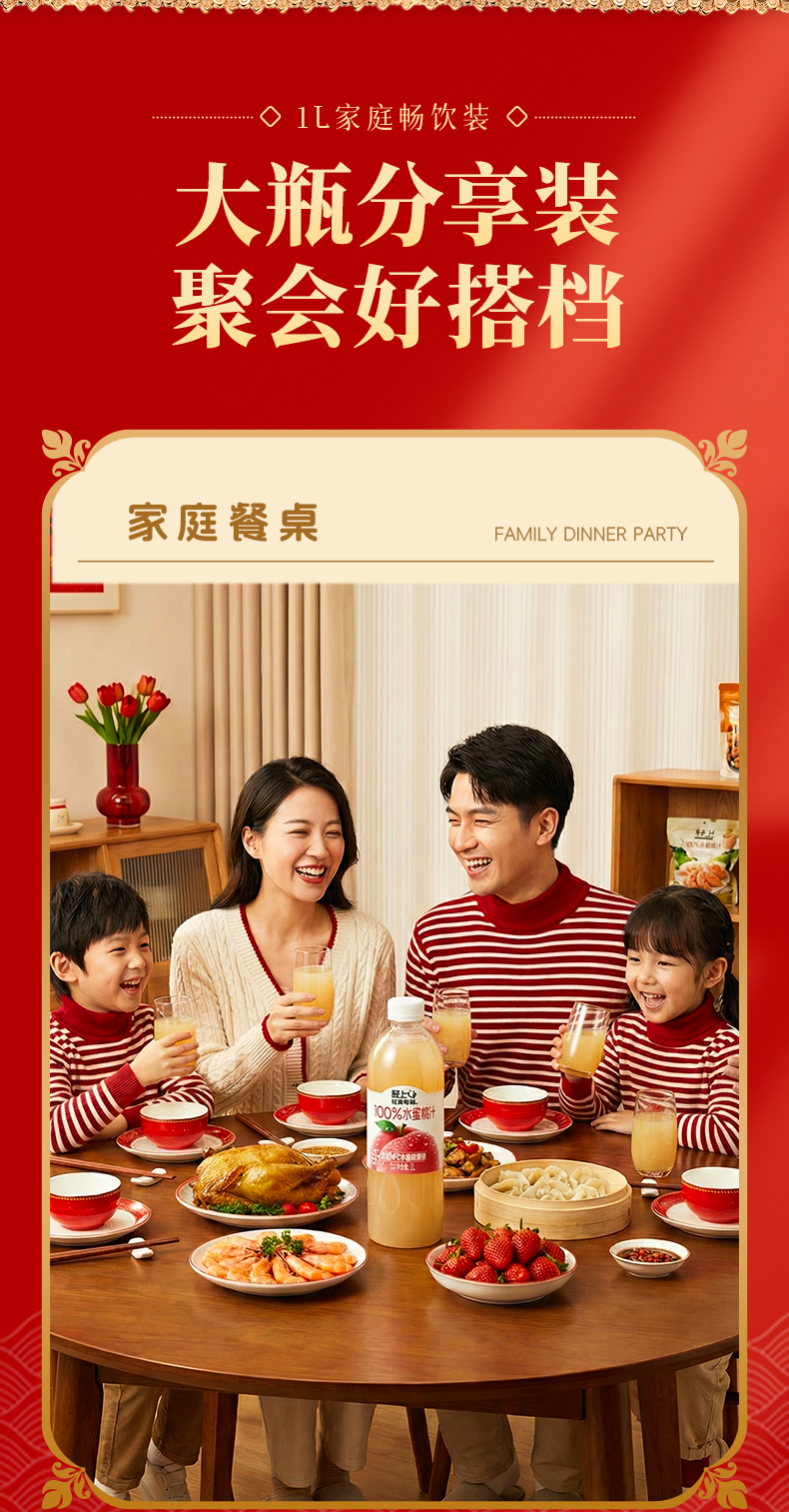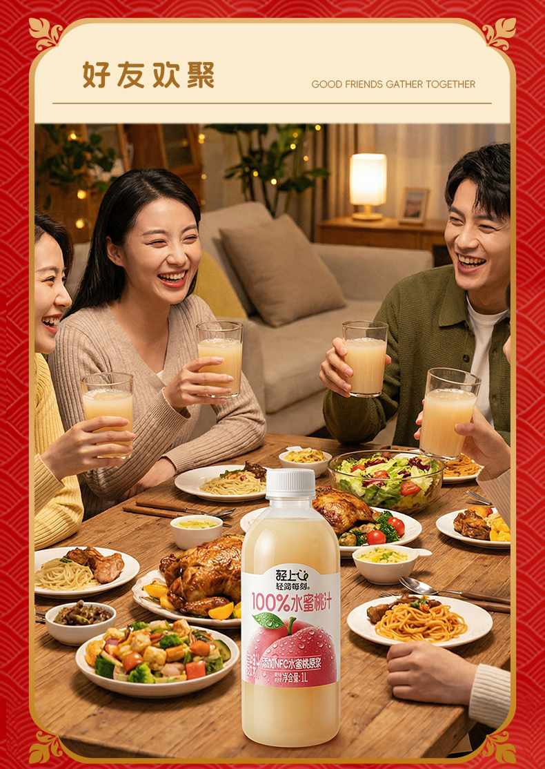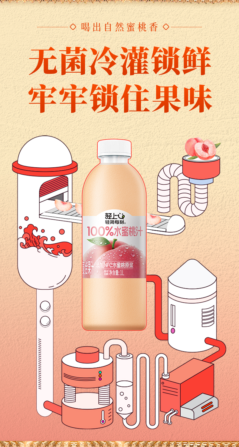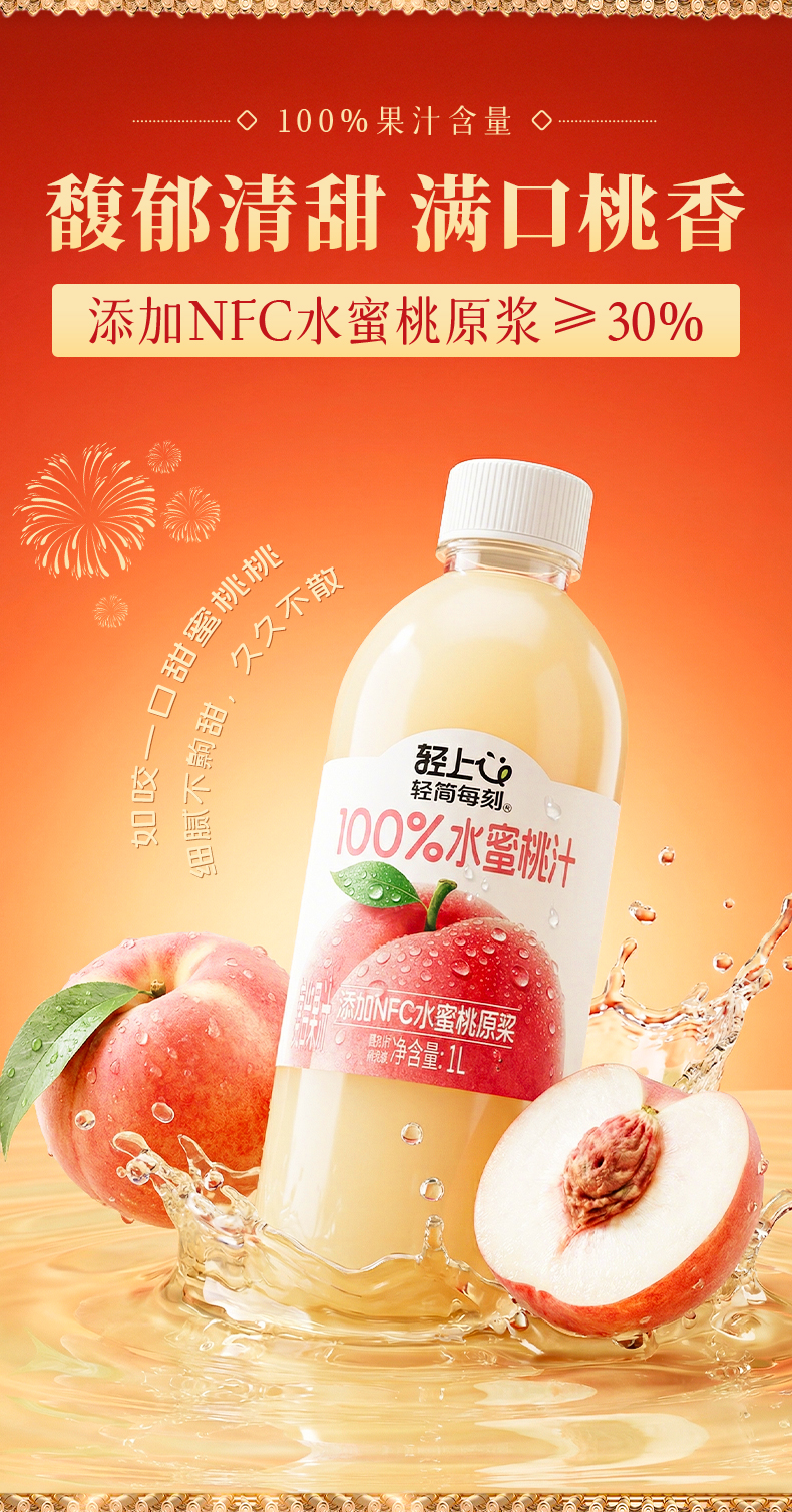 轻上 多口味NFC果汁1L*2瓶 果汁葡萄汁芒果汁苹果汁 纯净配方安心喝 5天内发货