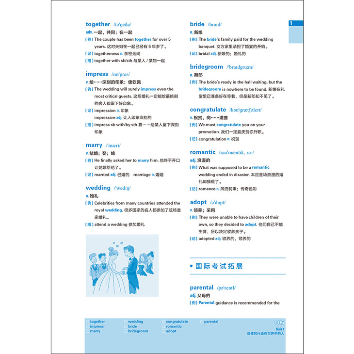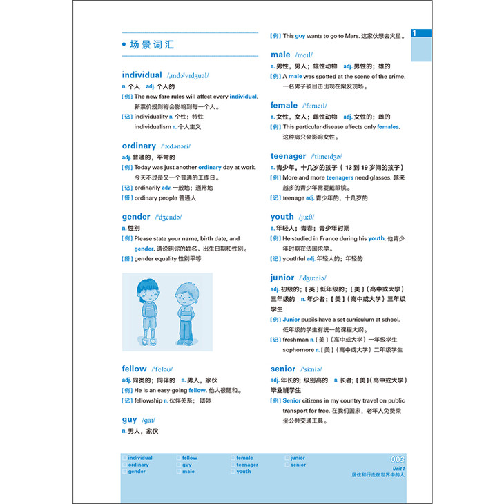 每课开始设有英语小贴士栏目,用简洁易懂的语言从词根、词缀和词源角度分析单词的构成,并讲述与单词有关的文化故事,还提供趣味记忆法,让学生掌握记单词的窍门,爱上记单词。书中配有生动的彩色插图,提供丰富的词语搭配知识。用了这本书,记单词更加轻松。