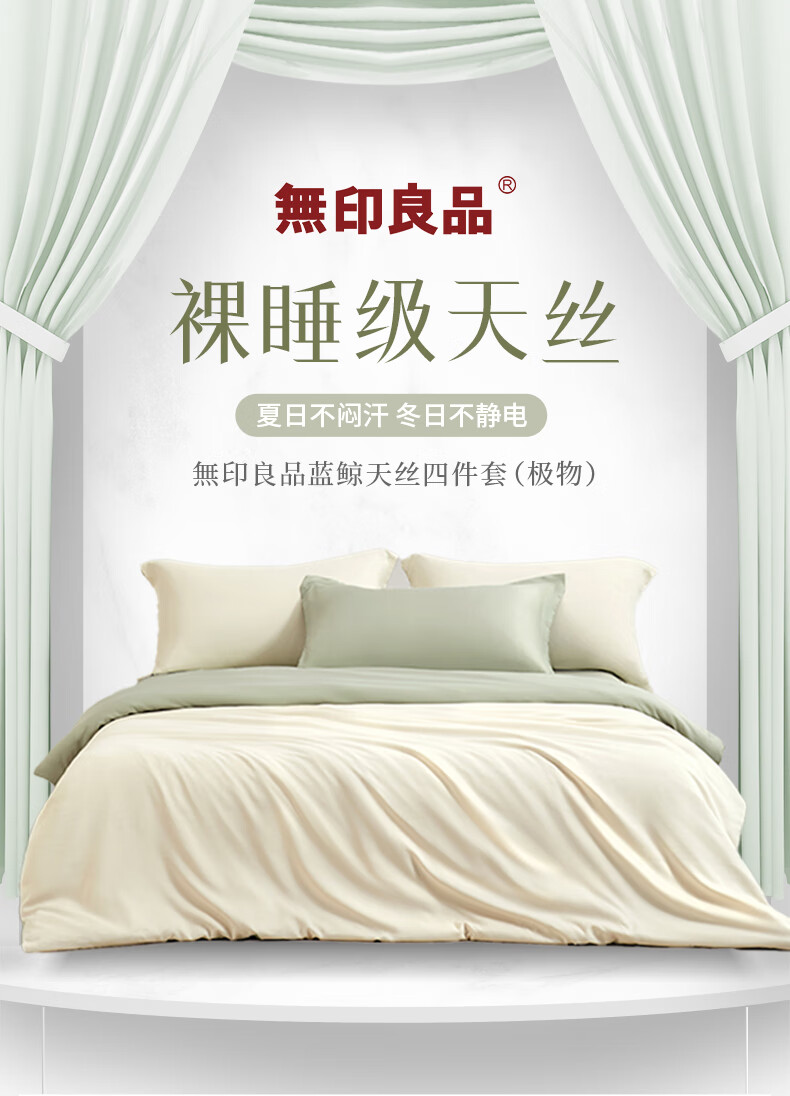 【分仓直发包邮】無印良品蓝鲸天丝四件套米绿MJ-T2024-0207
