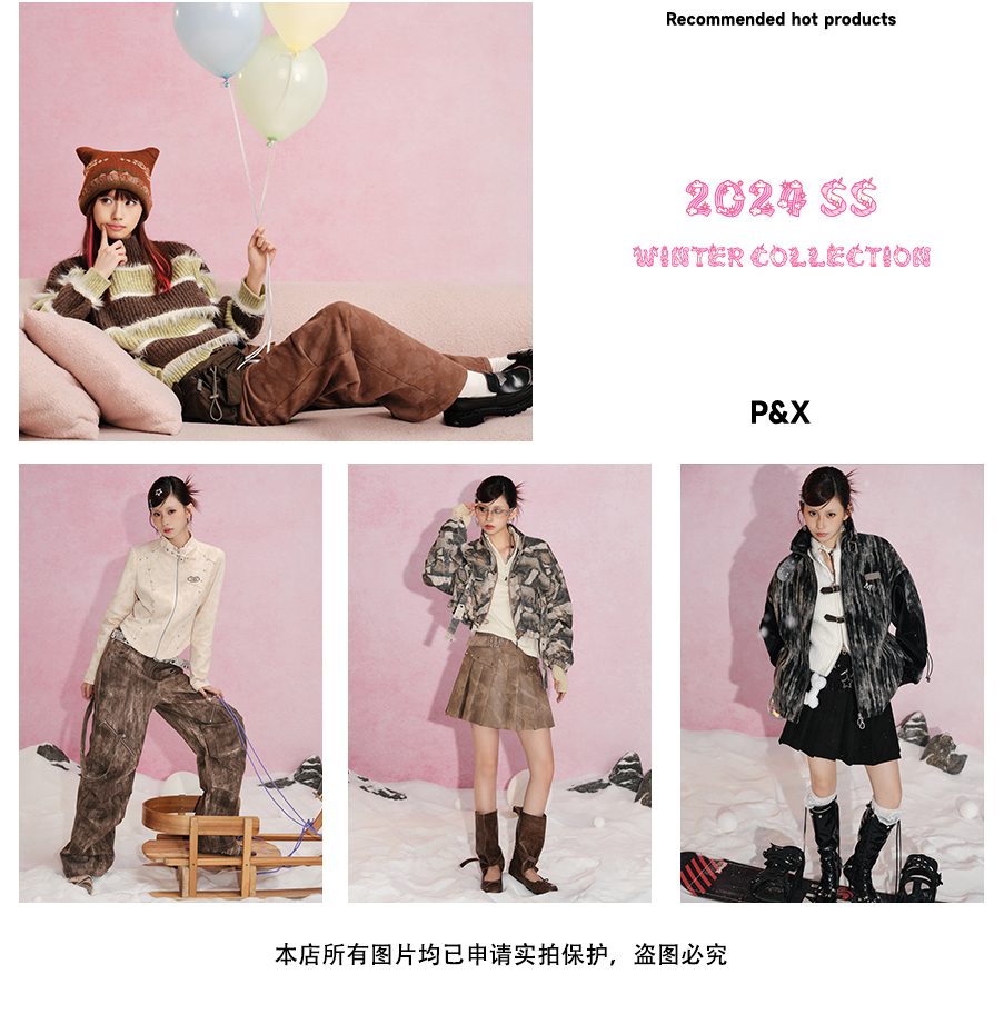 P&X设计师女装春季新款半拉链设计短款毛衣825118174 杏色