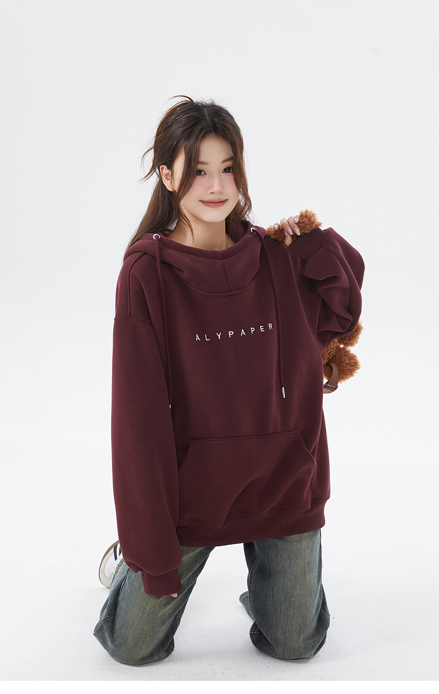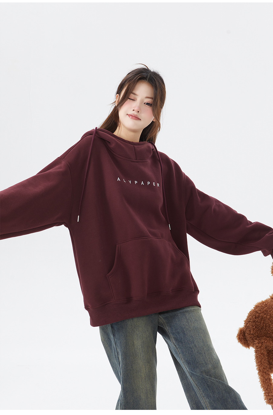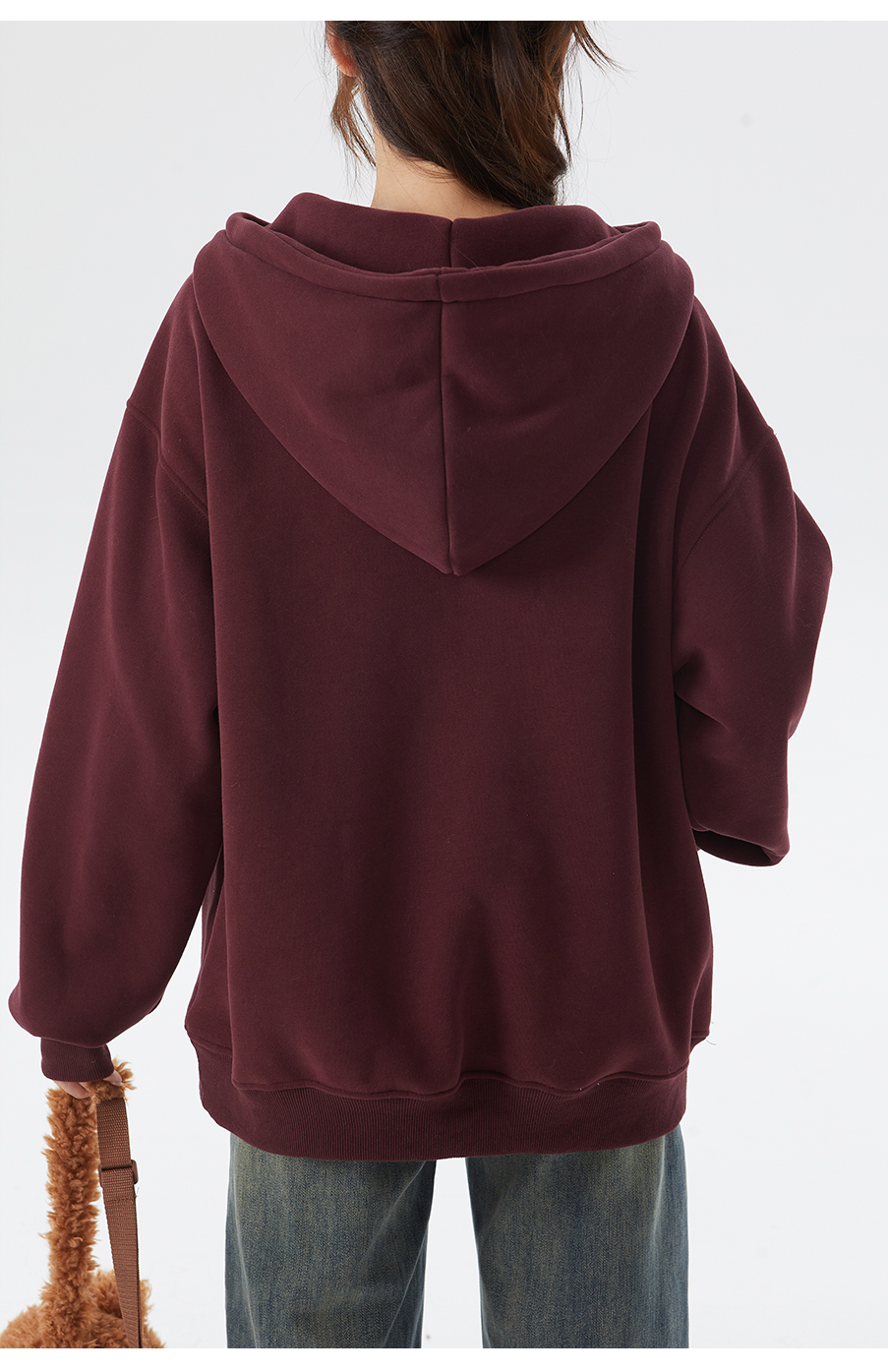 P&X设计师女装冬季长袖宽松连帽加绒短款卫衣 824417166 枣红