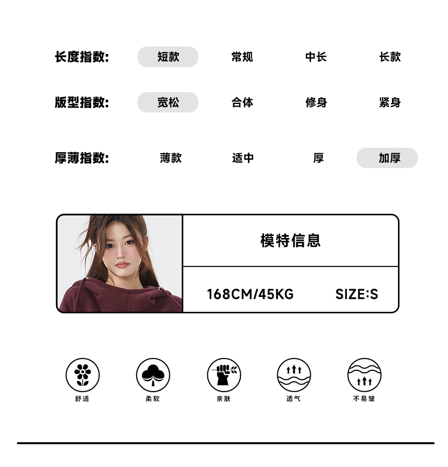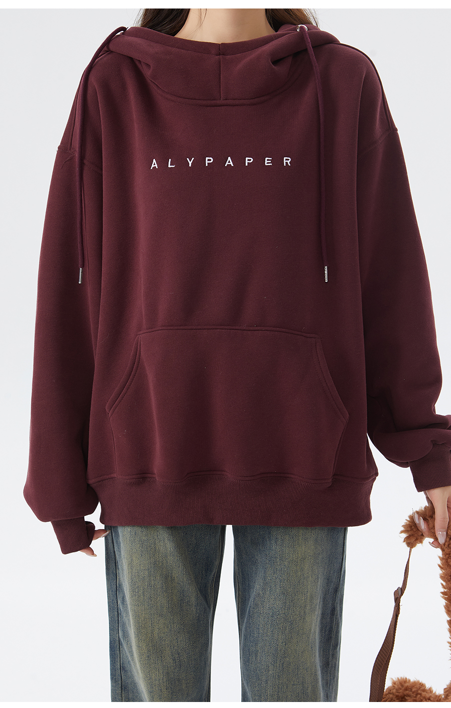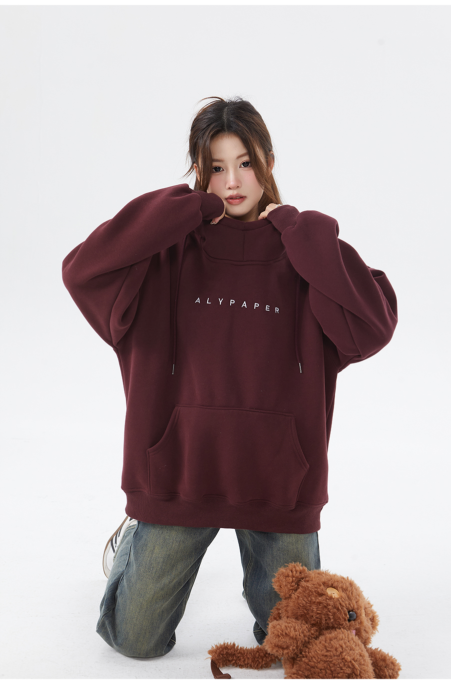 P&X设计师女装冬季长袖宽松连帽加绒短款卫衣 824417166 枣红