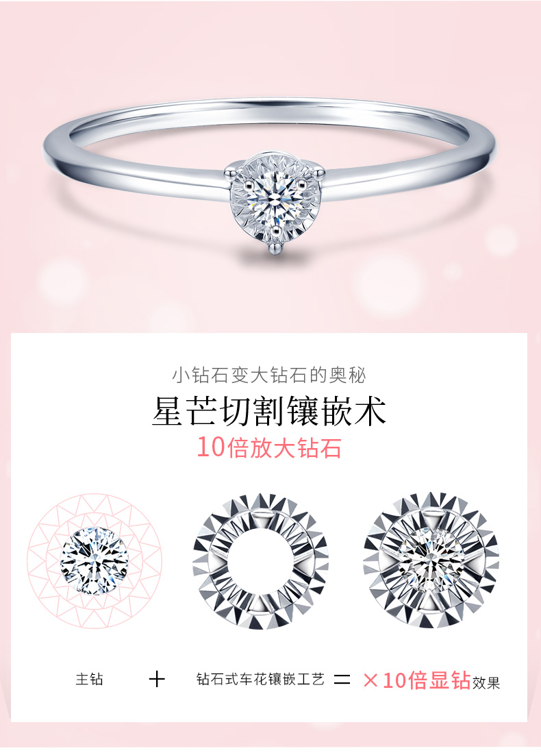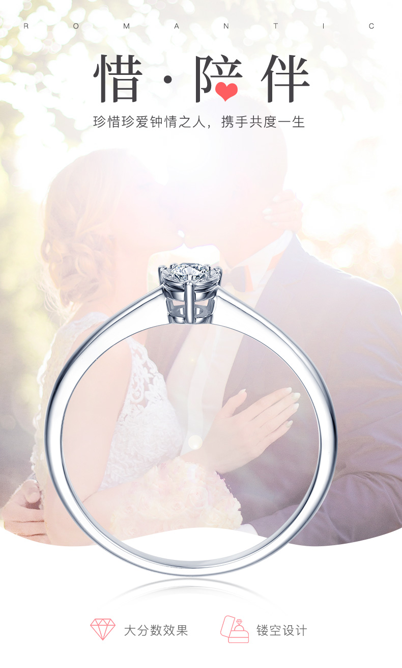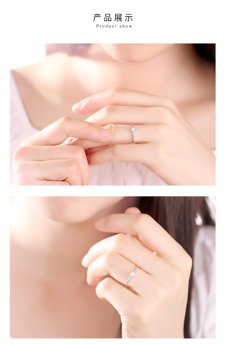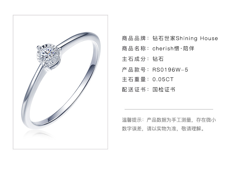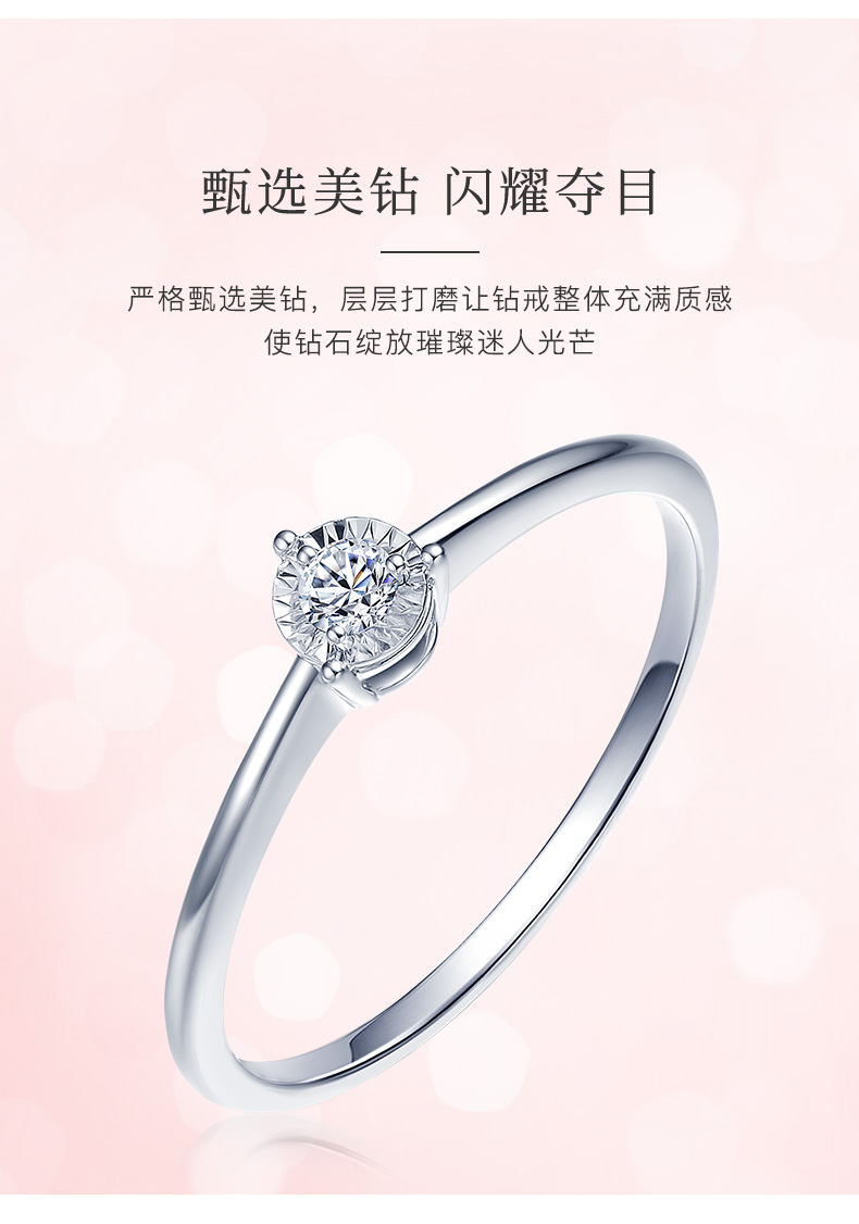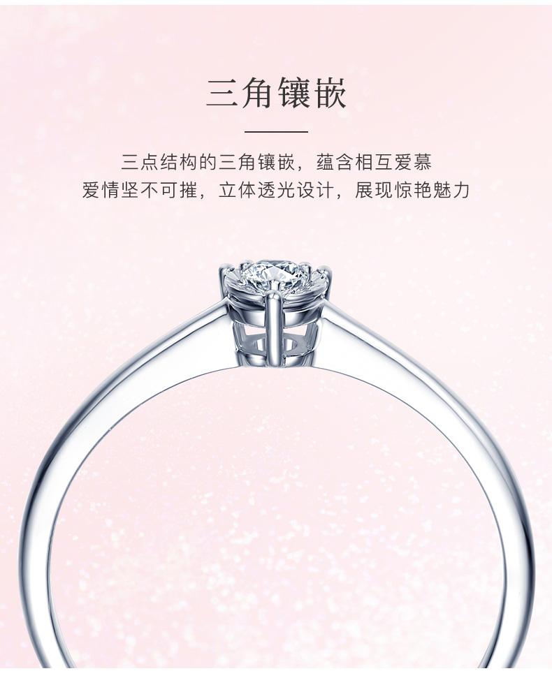 【甄选钻饰】【专享】钻石世家 Cherish系列 18K金钻石戒指 女士钻戒简约三爪可叠戴可尾戒