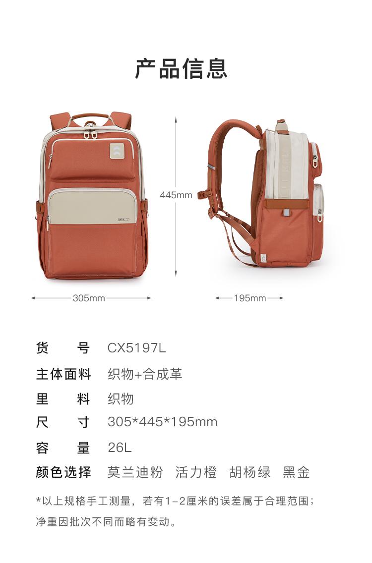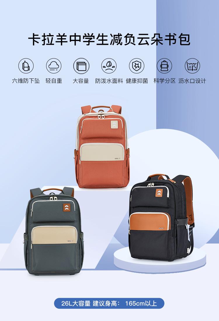 【初高中1.65米以上】卡拉羊26L大容量中学生减负云朵双肩包常青藤CX5197L
