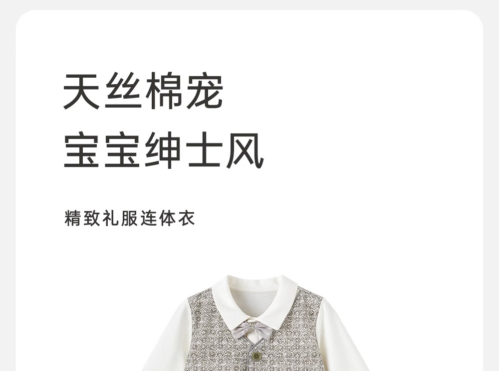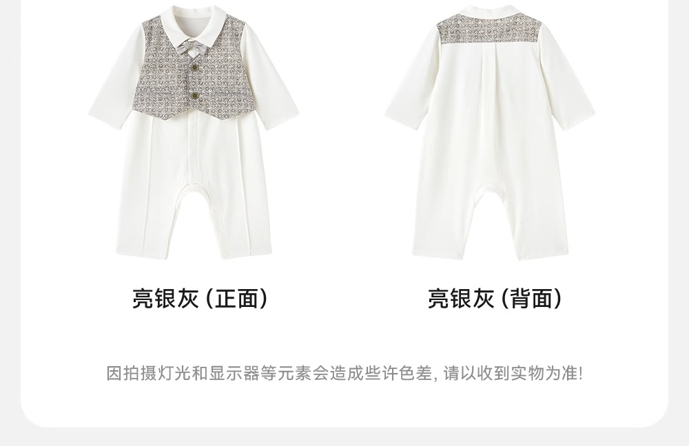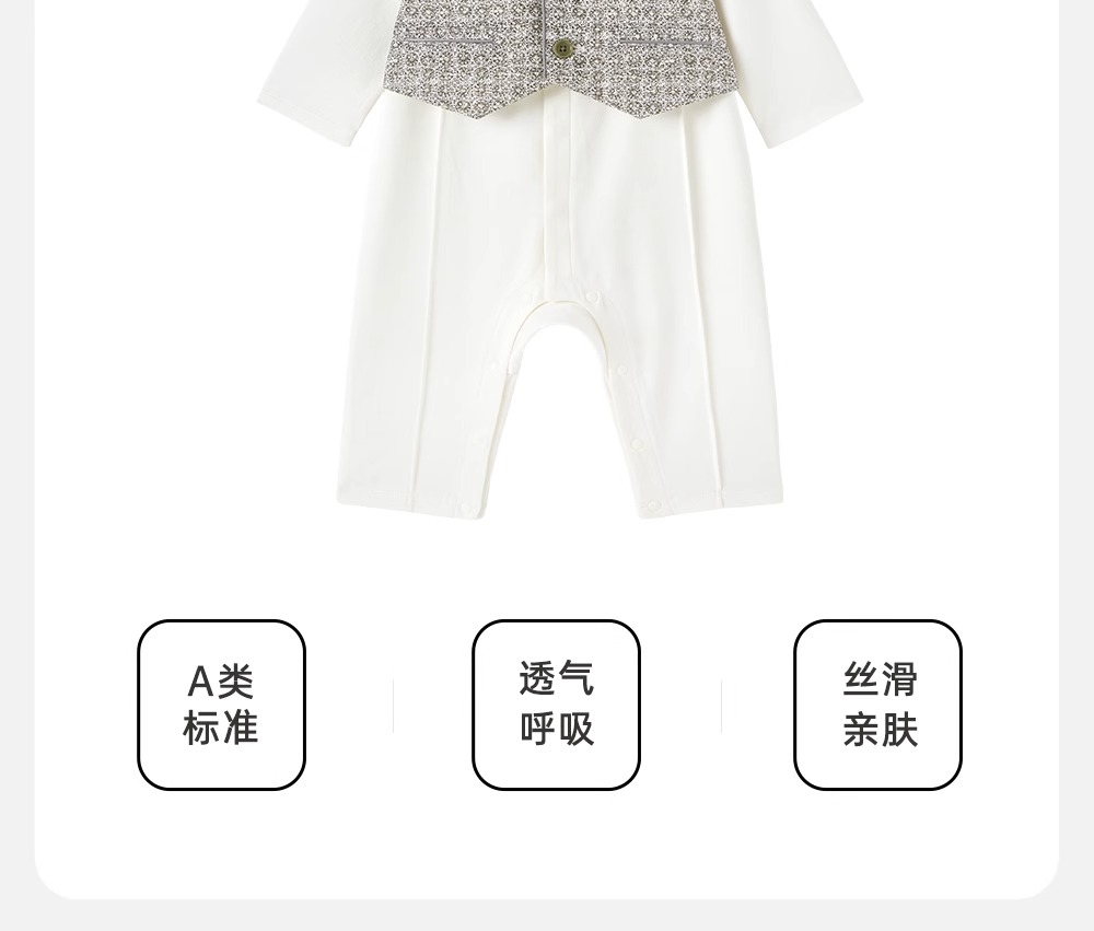 【高定系列】英氏婴儿连体衣春夏长袖桑蚕丝礼服连体衣男宝宝衣服YRHAJ1R036A