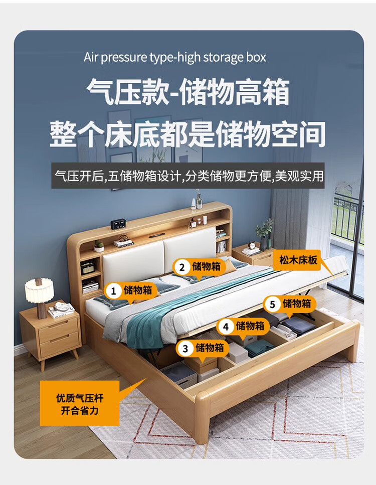 北欧风实木床软靠668#原木色/胡桃色可选(齐)