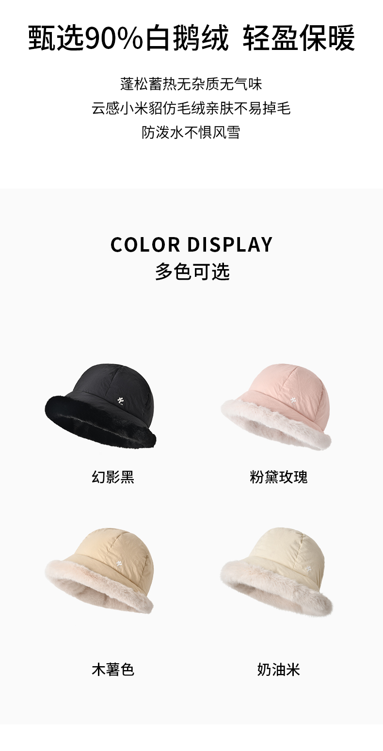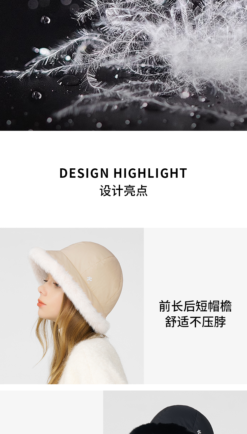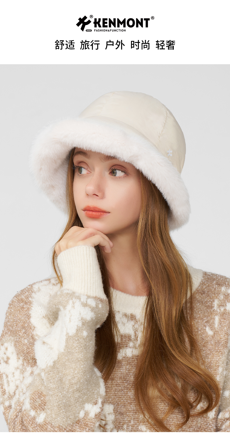 卡蒙冬款轻量化无感轻盈防泼水白鹅绒毛边盆帽KM-5282