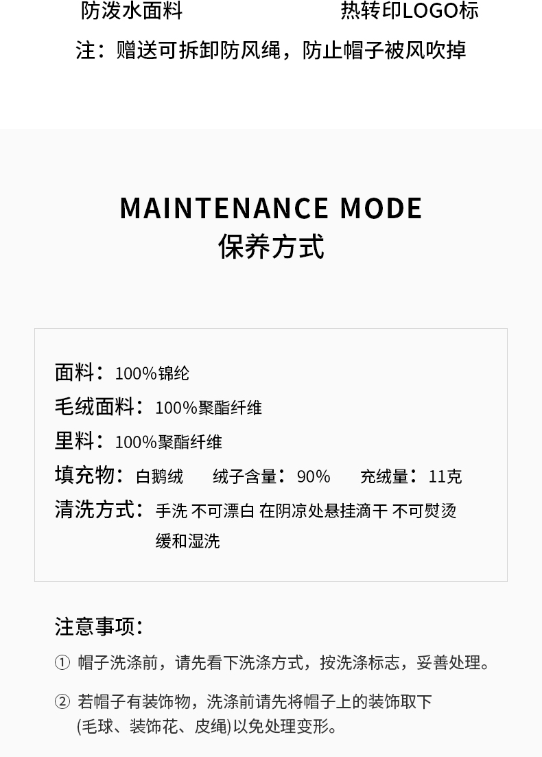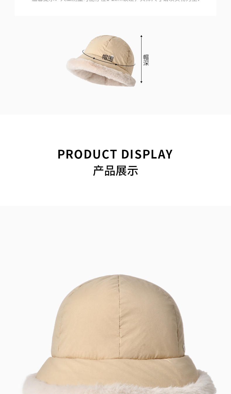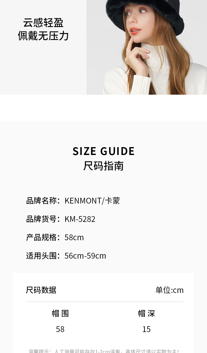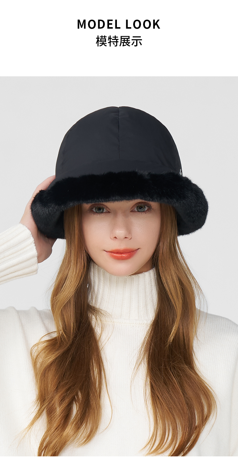 卡蒙冬款轻量化无感轻盈防泼水白鹅绒毛边盆帽KM-5282