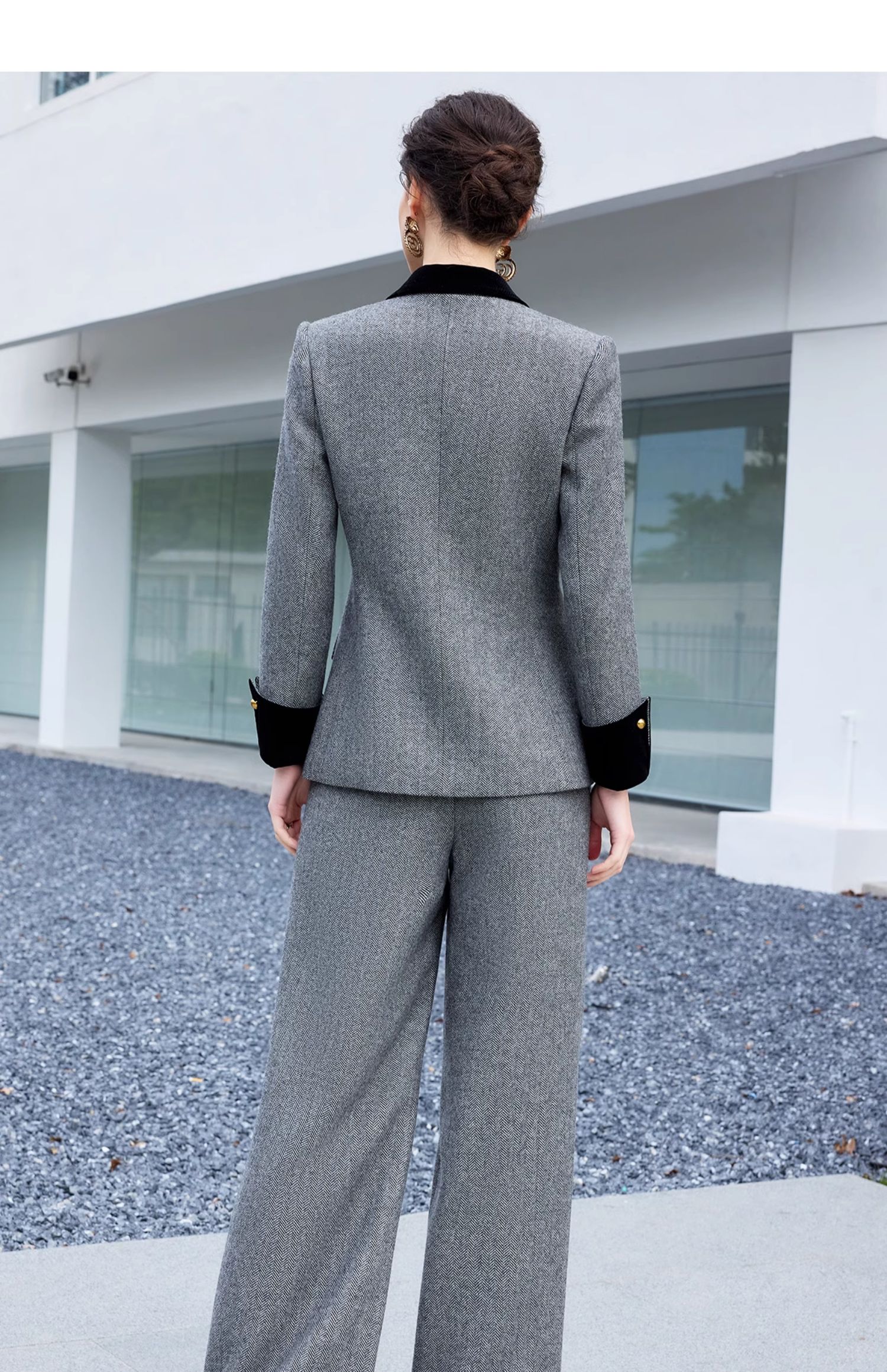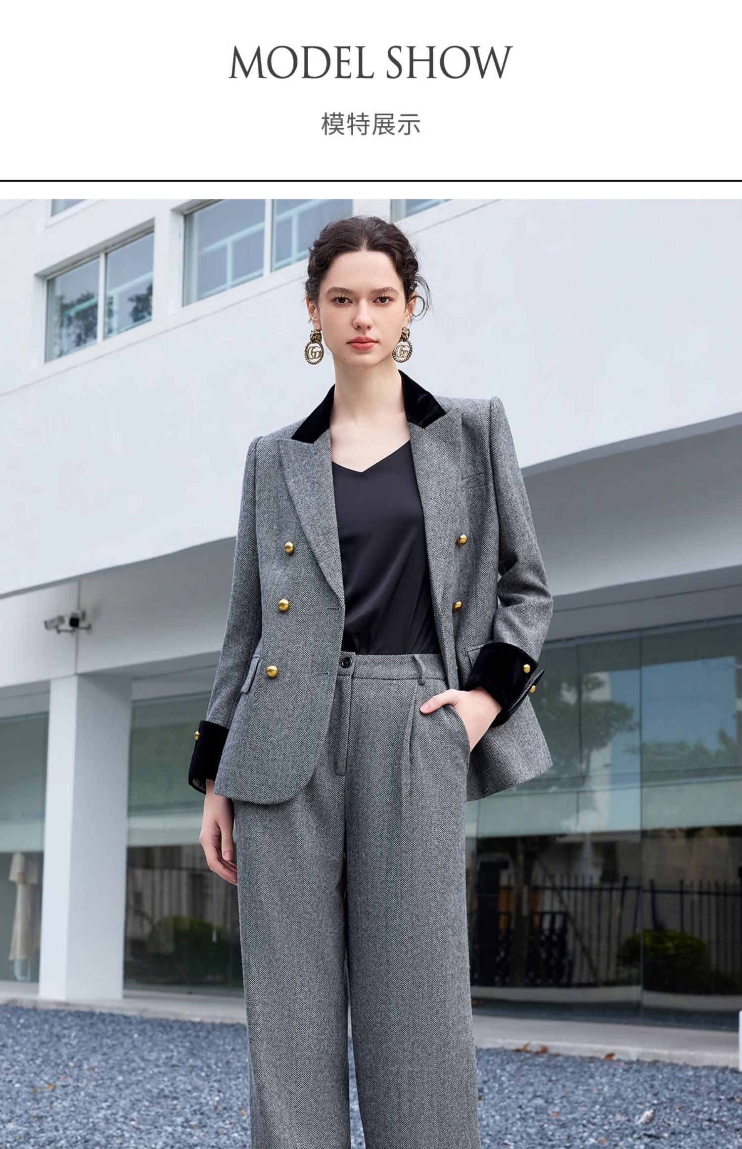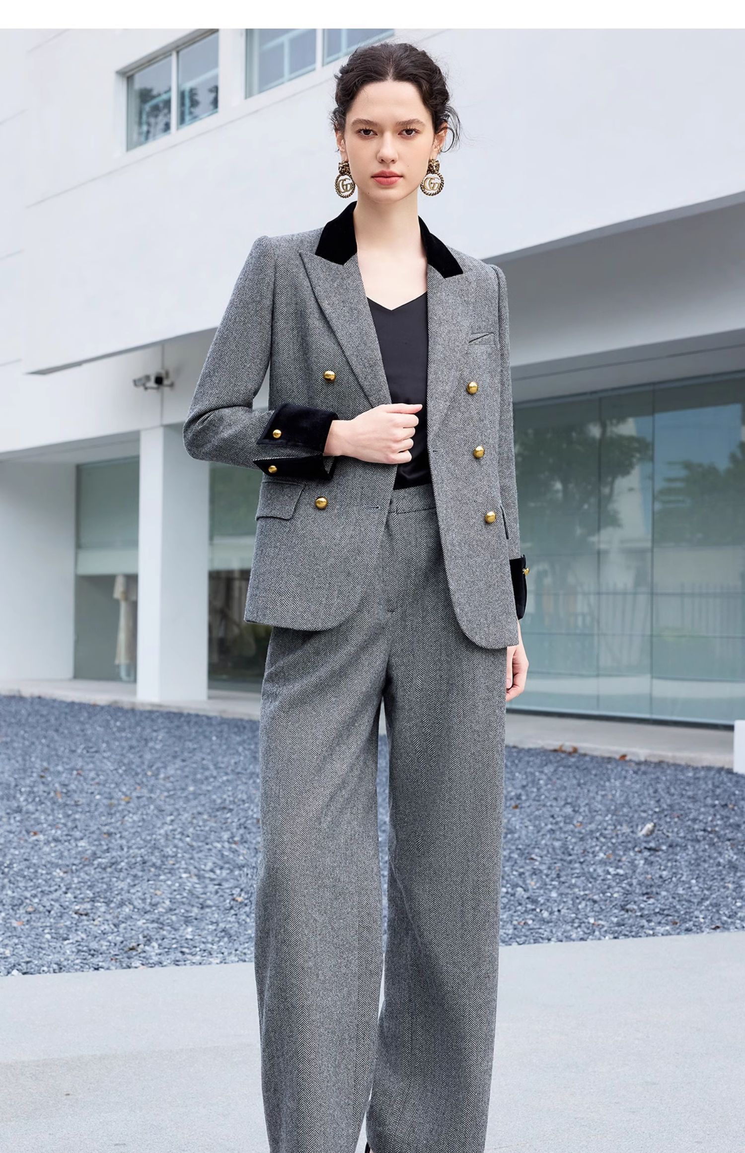 IWY/高端羊毛西装套装女韩版休闲职业装套装秋冬新款阔腿裤正装CP2181