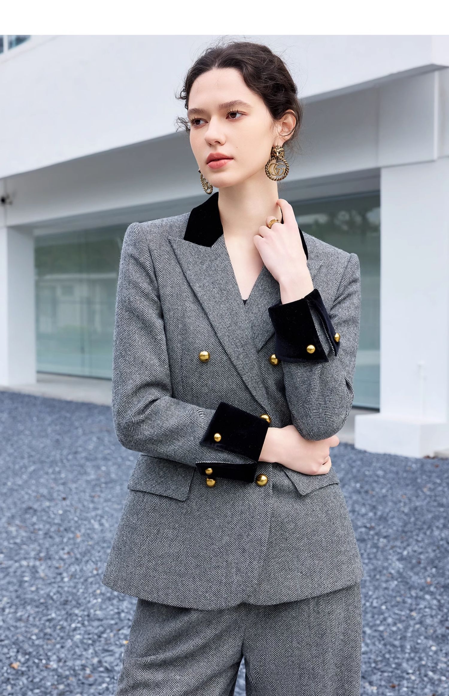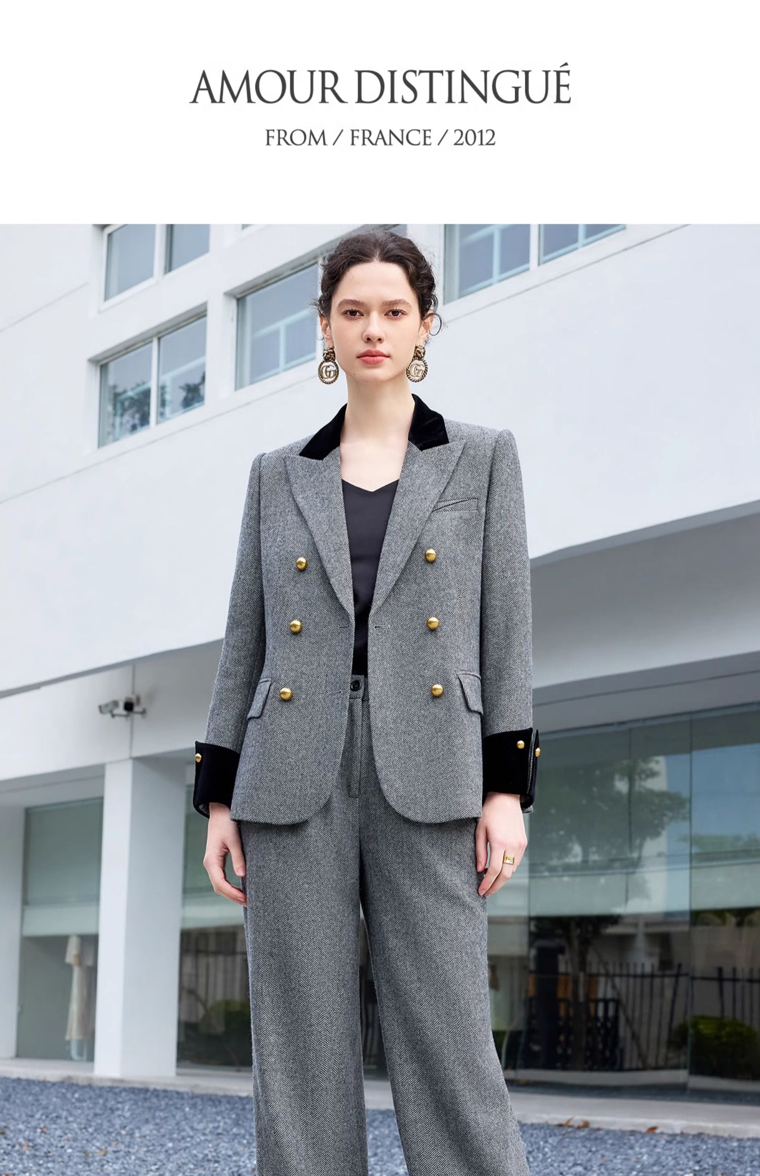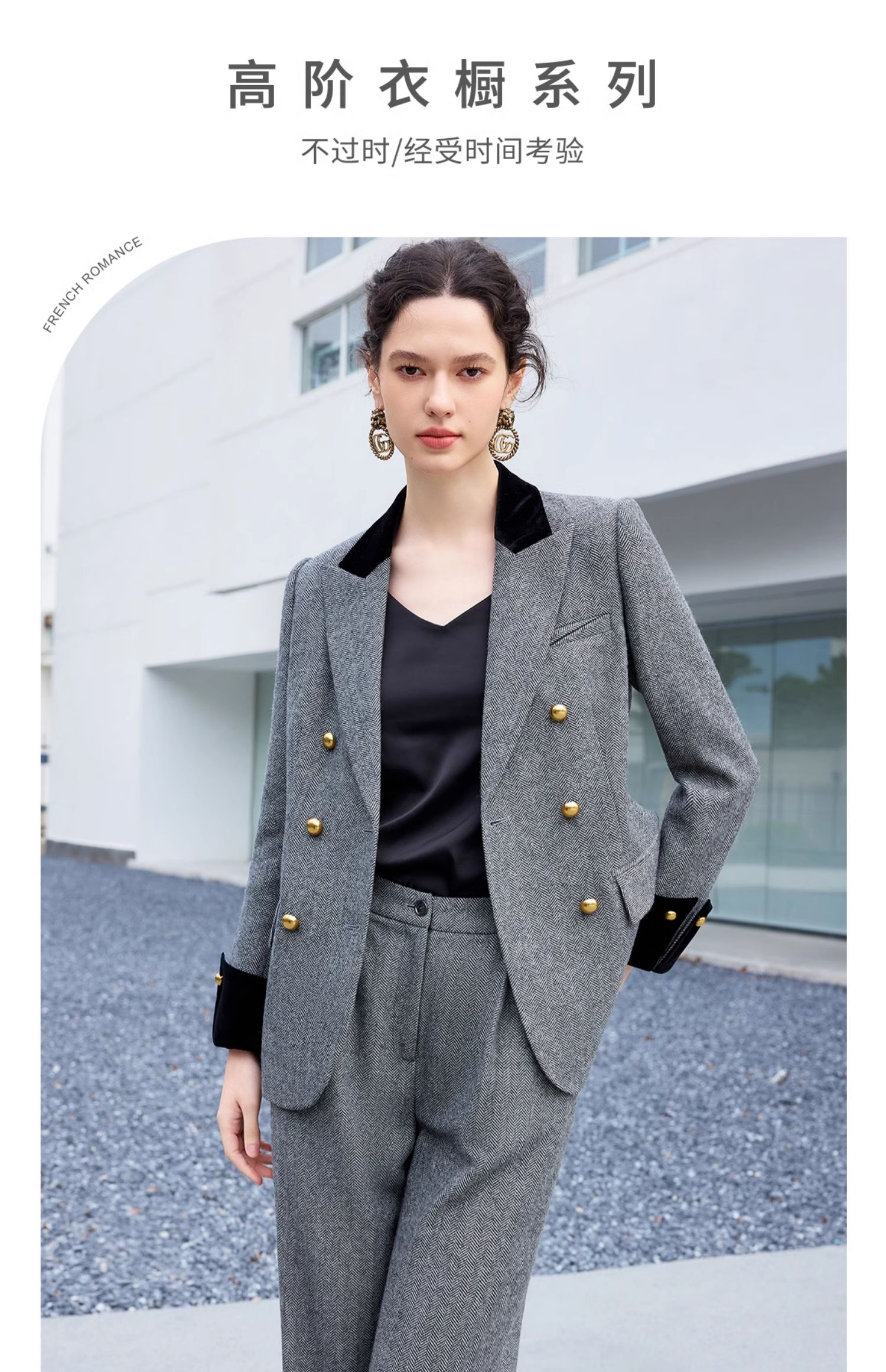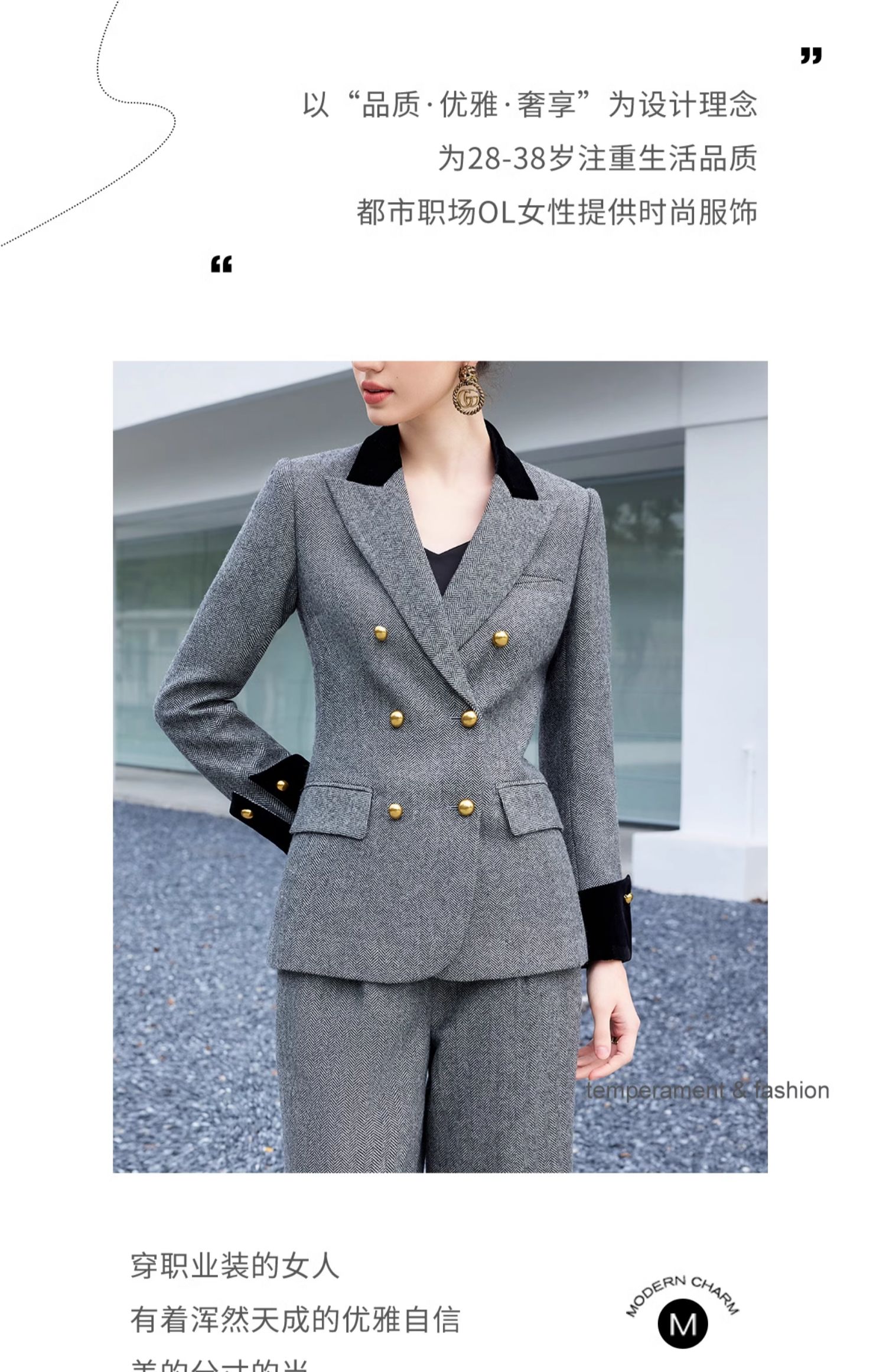 IWY/高端羊毛西装套装女韩版休闲职业装套装秋冬新款阔腿裤正装CP2181