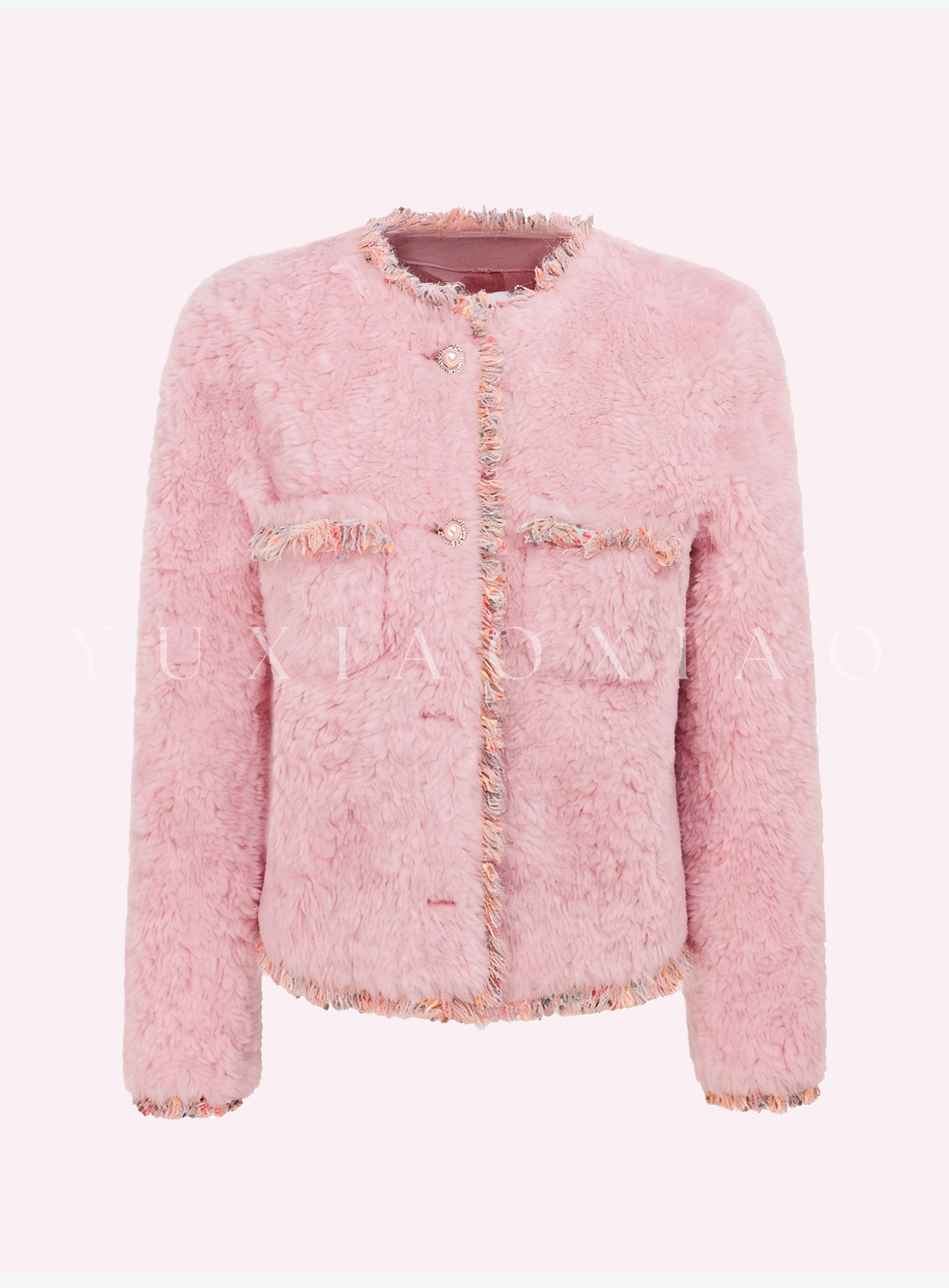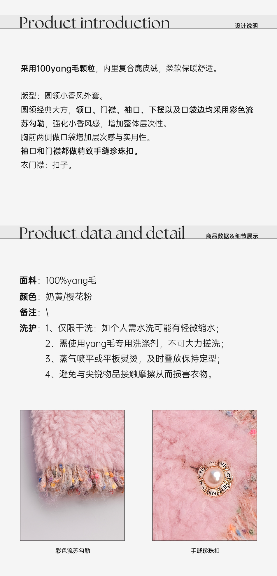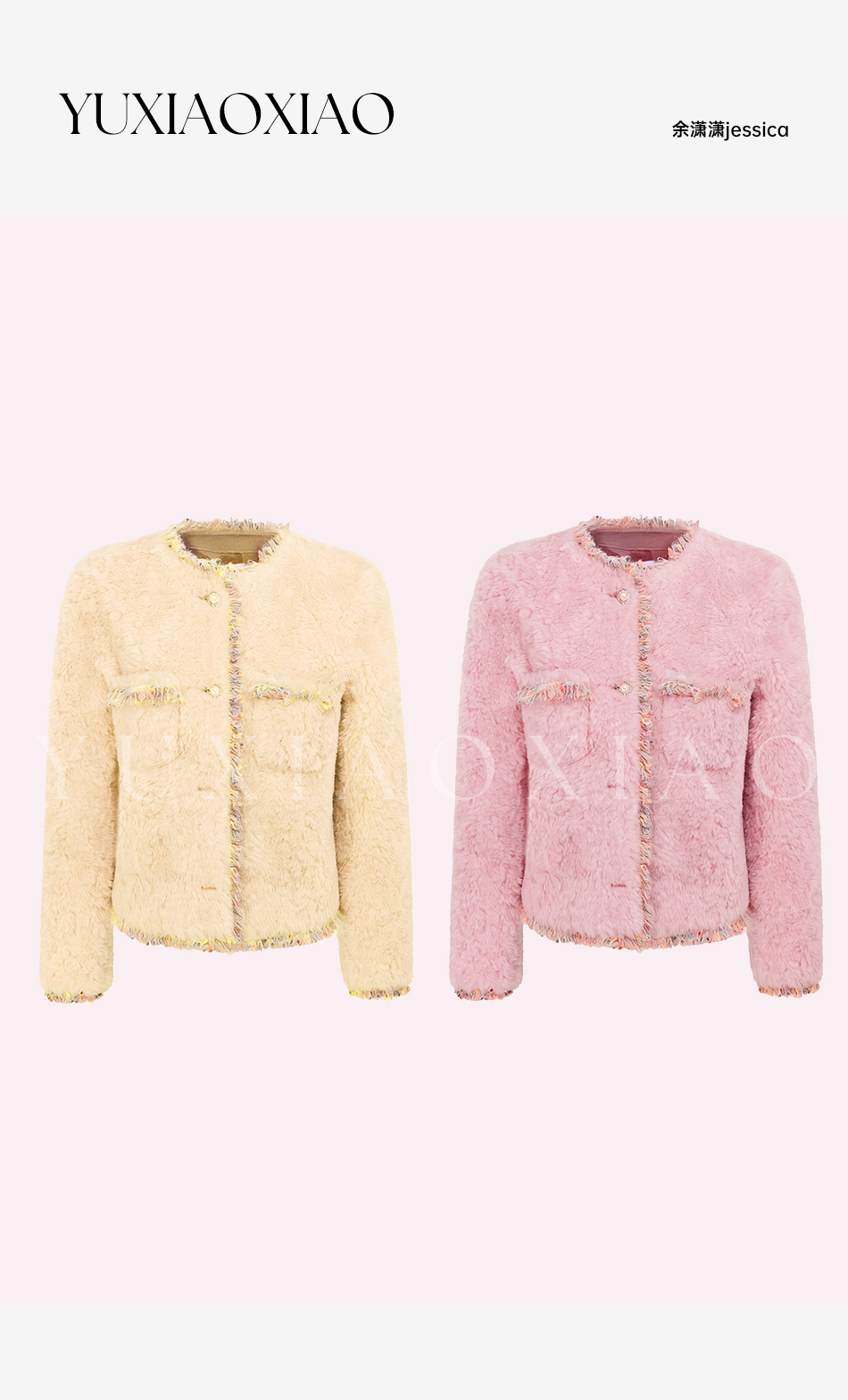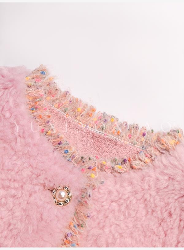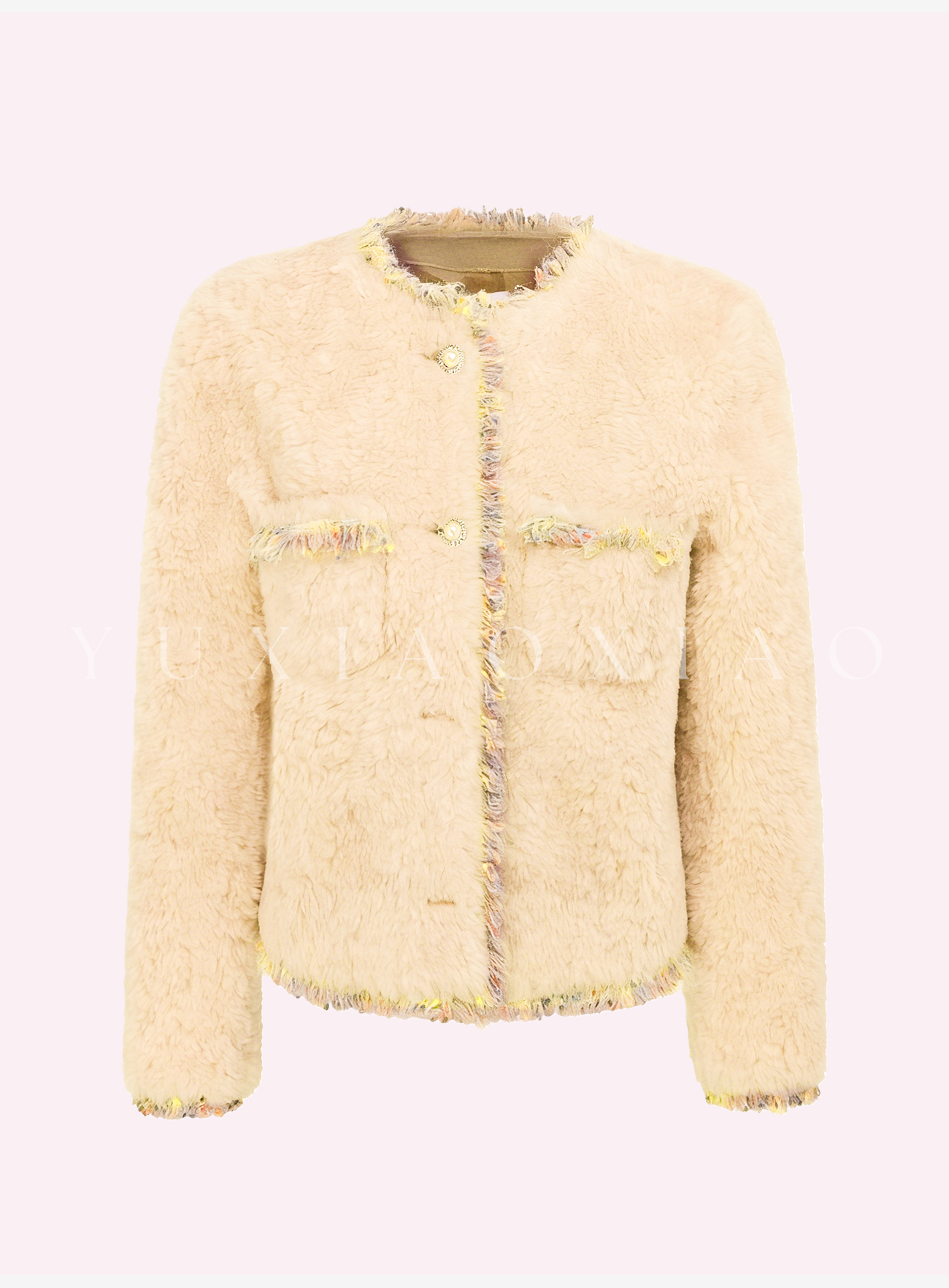 余潇潇【糖彩嘉年华】100羊毛颗粒彩色流苏边珍珠扣圆领小香风外套