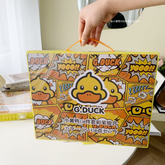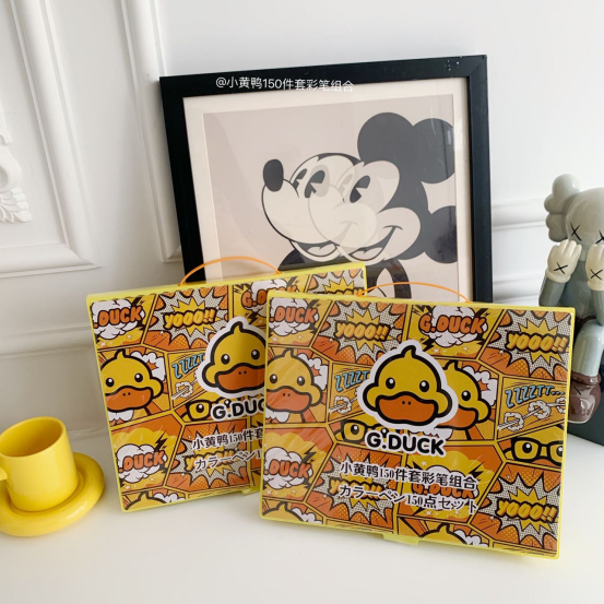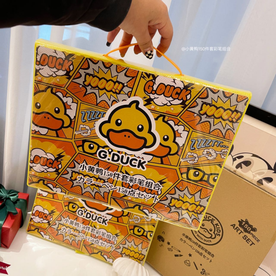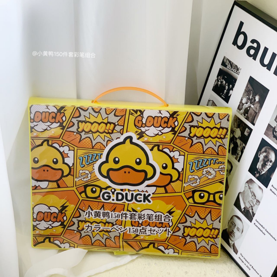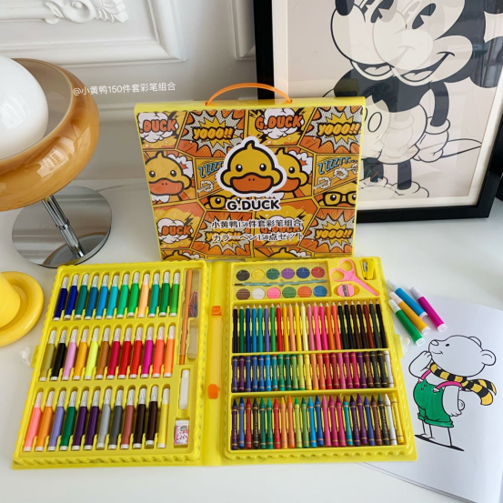 ▪小黄鸭150件套画笔 ▪无法抗拒的喜欢 全网优势独家上新,现货发售 送人太有面子了,全新升级手提款包装 双面卡通绘画画笔中的爱马仕非他莫属 孩子们都无法抗拒的喜欢