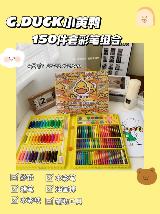 💕【G.DUCK小黄鸭150件套彩笔组合】💪作为开学礼物也是很合适的,🌟给孩子买一套 🥰免得老是看电视,玩手机‼️‼️‼️“培养孩子的想象力和创造力”绘画可以激发孩子的艺术潜能