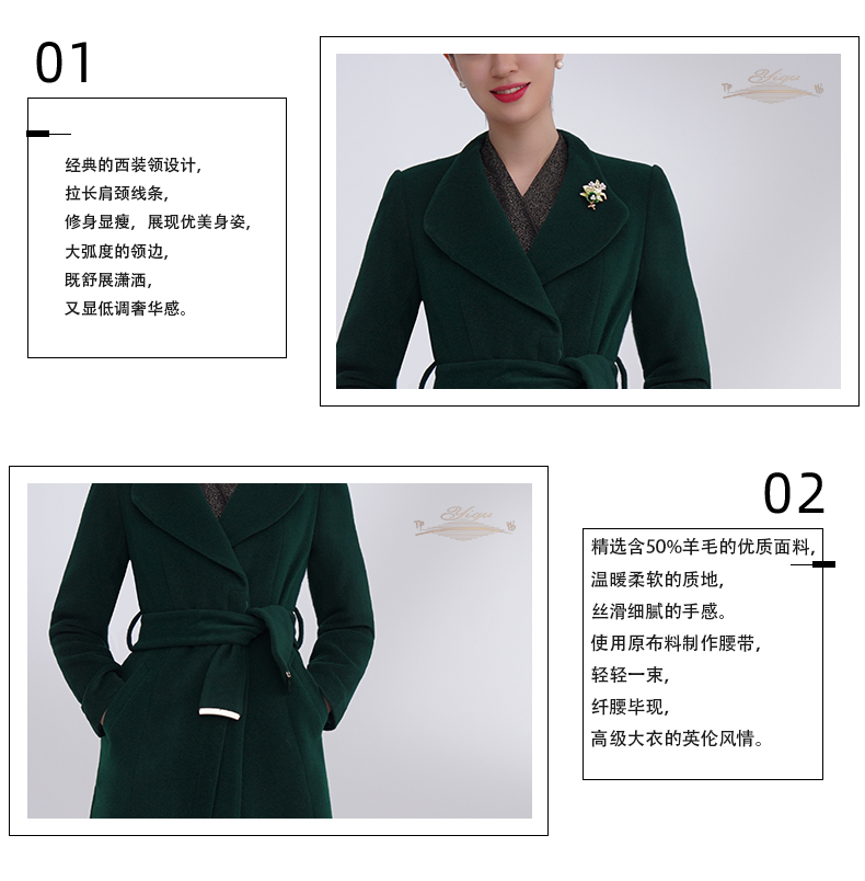 【特惠】YIQU |“轻舞飞扬”大衣(墨绿·含50%羊毛)