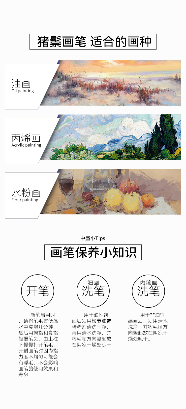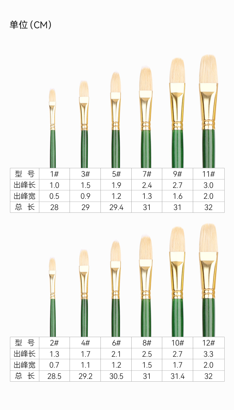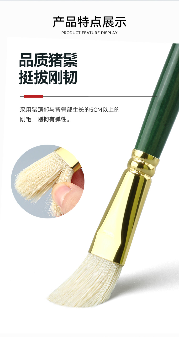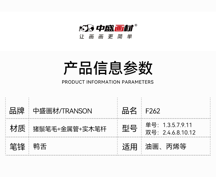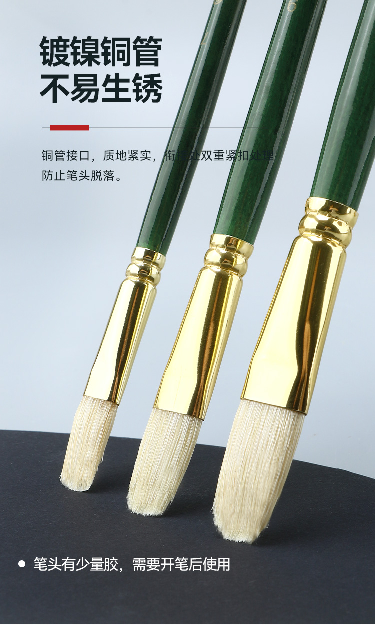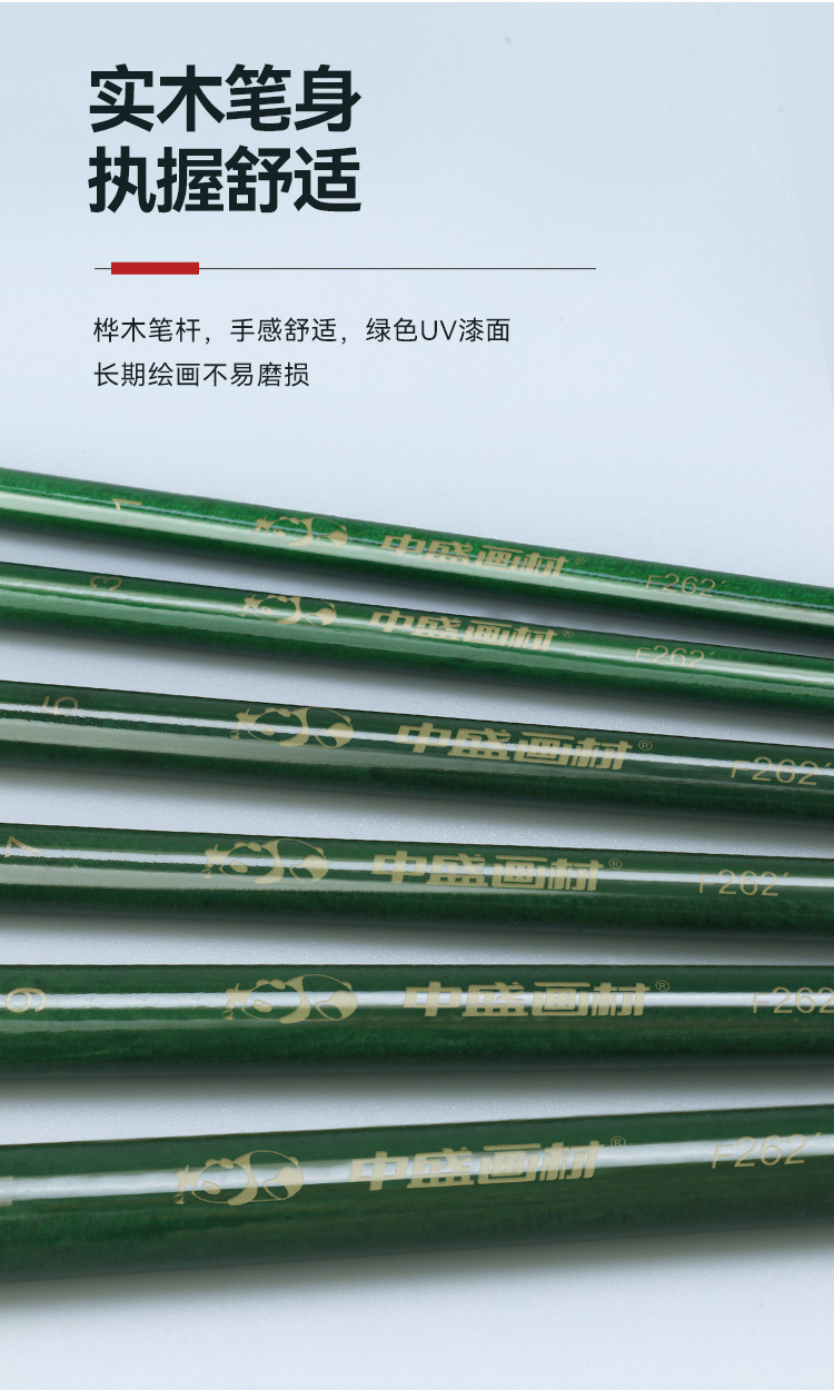 中盛画材重庆猪鬃油画笔F262单支长杆水粉笔水彩笔丙烯笔