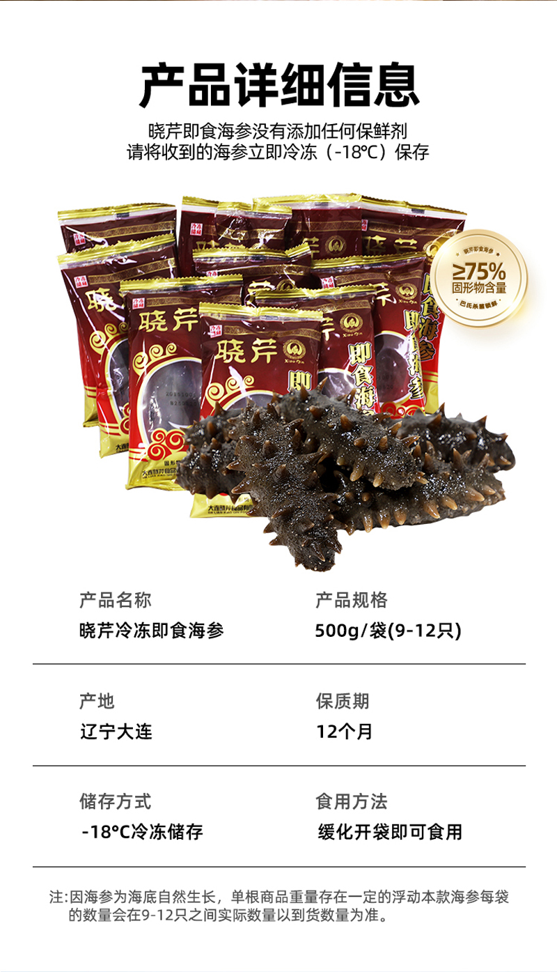 [晓芹]冷冻即食海参 9-12头/500g/袋 【开袋即食|顺丰包邮】