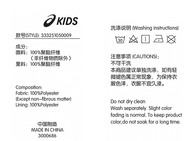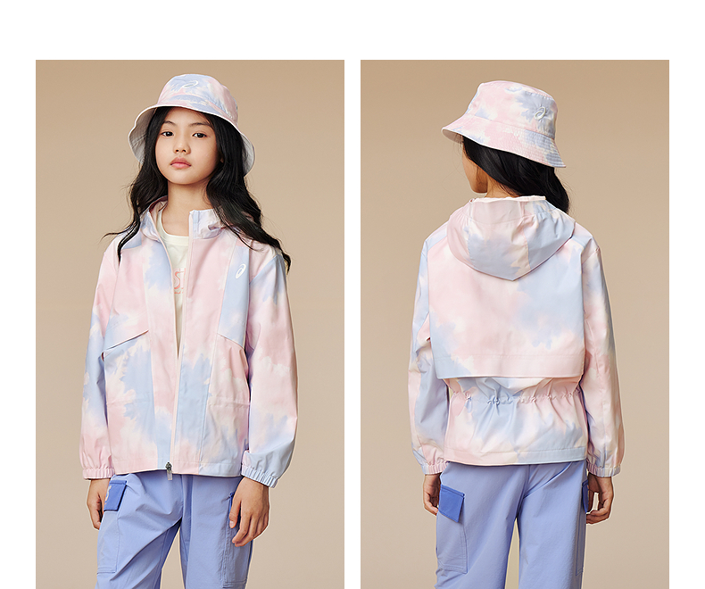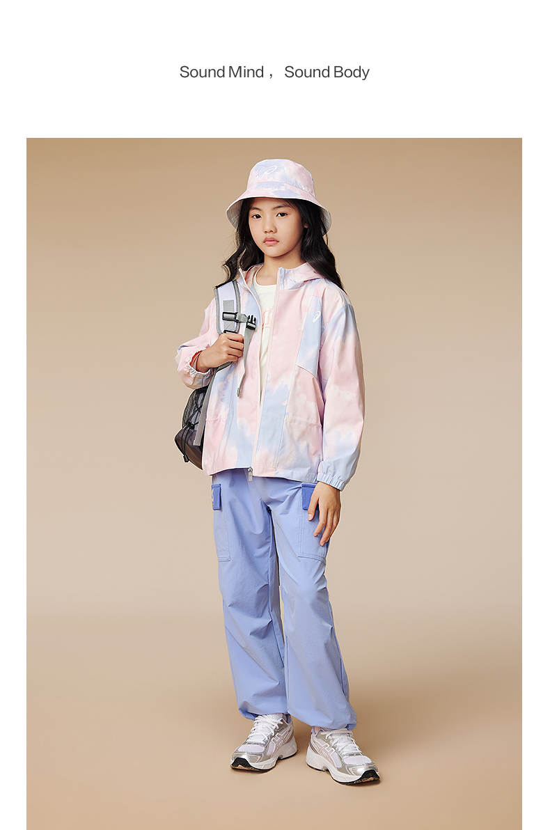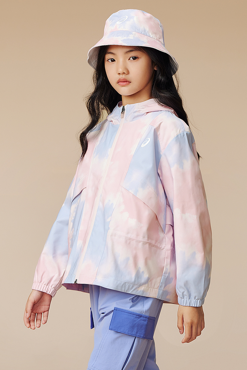 ASICS/亚瑟士儿童2025年秋季女童三防梭织便服防风透湿时尚满印