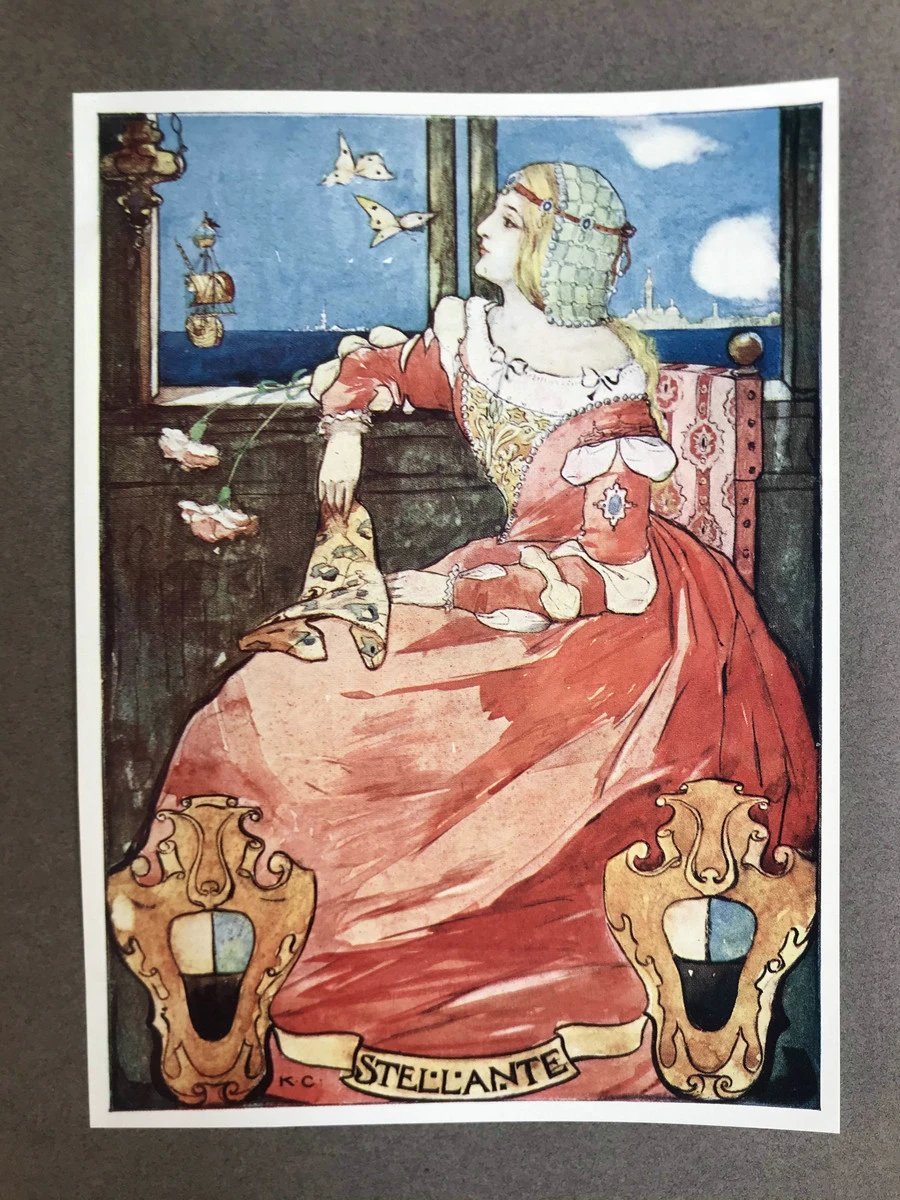 约20世纪早期 意大利传奇与故事集 凯瑟琳·卡梅伦12幅彩色手工贴图 布脊精装18开