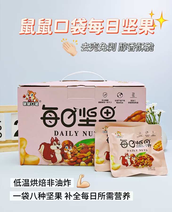 📌N种场景解锁:每日坚果,随时随地“香”一下! 🔻小孩爱吃的健康零食:这款每日坚果去壳免剥好抓握,无添加更营养,解馋又补能 🔻追剧必备的嘴闲救星:谁追剧的时候能没有零食?酥脆入味不齁甜,低卡无负担,炫再多也不怕胖 🔻办公休闲的能量补给:下午3点,午后犯困来一袋,一口唤醒活力,效率秒提升 🔻早餐搭档的营养升级:配粥搭牛奶都合适,补蛋白添维生素,早餐更均衡