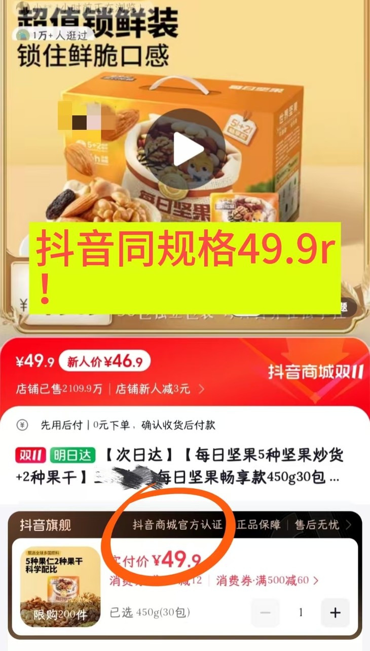 线上随便看看一款每日坚果🛒 30袋的价格至少要五六十吧?有的甚至上百💸 今天在咱们快团团,这款8种坚果科学配比、低温烘焙无添加、去壳免剥的每日坚果🥳 一箱30袋,售价只要💰29.9❗ 算下来一袋才不到💰1块钱❗❗ 就能吃到8种高品质坚果,还是去壳免剥的 不管是给孩子当零食,还是自己追剧办公吃,都太划算了❗