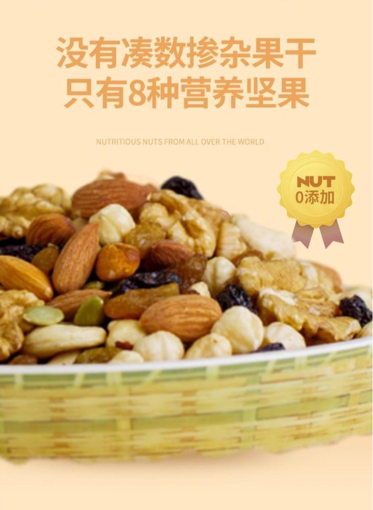 以前吃的那些每日坚果 要么果仁干瘪,要么果干占一半😓 这款是真的没有凑数掺杂果干,只有8种营养坚果✅ 每一颗都颗颗饱满,肉厚有分量💪 嚼完之后回味甘甜,齿颊留香,连手指都要嗦干净👆!
